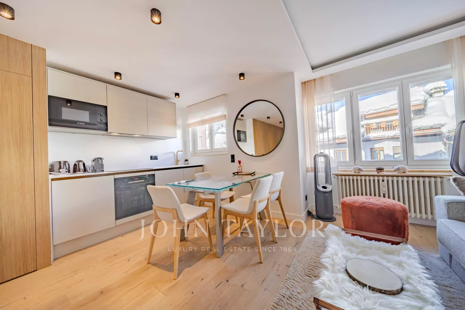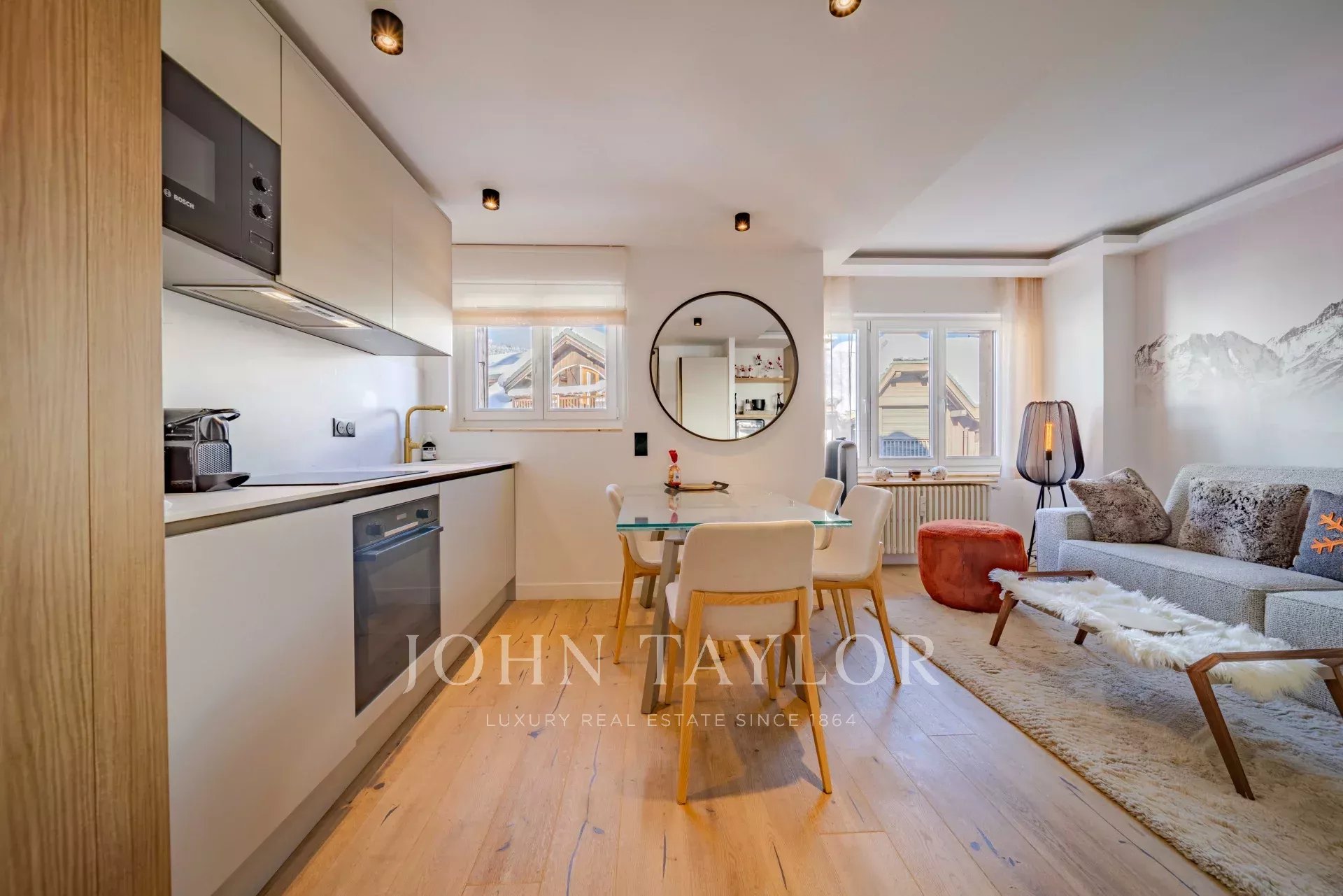 Two-room apartment with sleeping alcove, with a surface area of 40.60 m² (Loi-Carrez), ideally located in the centre of Megève.