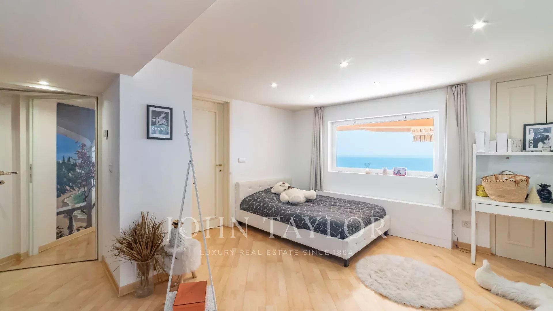 It comprises a cathedral living room and a panoramic sea-view dining room with ethanol fireplace, a separate sea-view kitchen, a games room or study, a sea-view master suite with dressing room and bathroom. Upstairs, a sea-view bedroom with bathroom and two other sea-view bedrooms with dressing rooms and a shower room.