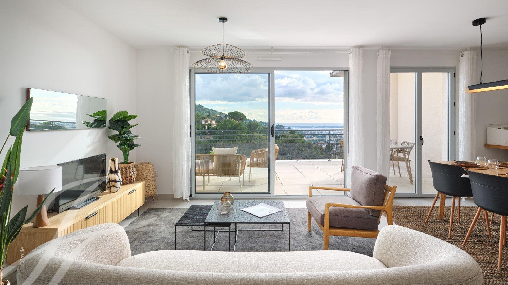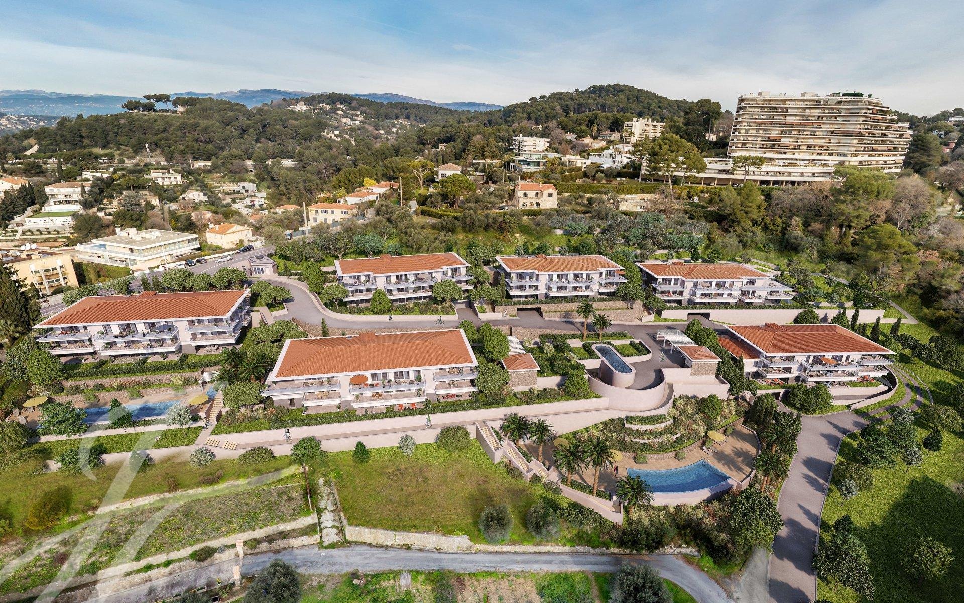 Ideally located on a real belvedere with panoramic views over the bay of Cannes, the Lerins islands and the Esterel mountains, in the heart of lush vegetation with an authentic preserved olive grove, will be erected a very high standing and exclusive gated estate.