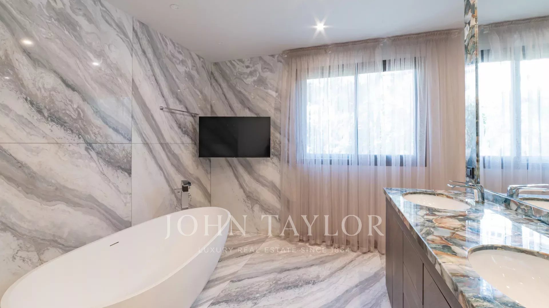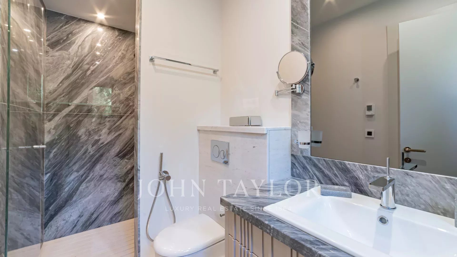 This apartment is composed of : a vast entrance hall, a living-dining room of 70 sq.m, a kitchen with adjacent storeroom, a laundry, one master suite, three further en suite bedrooms, guest toilet and a wide terrace.