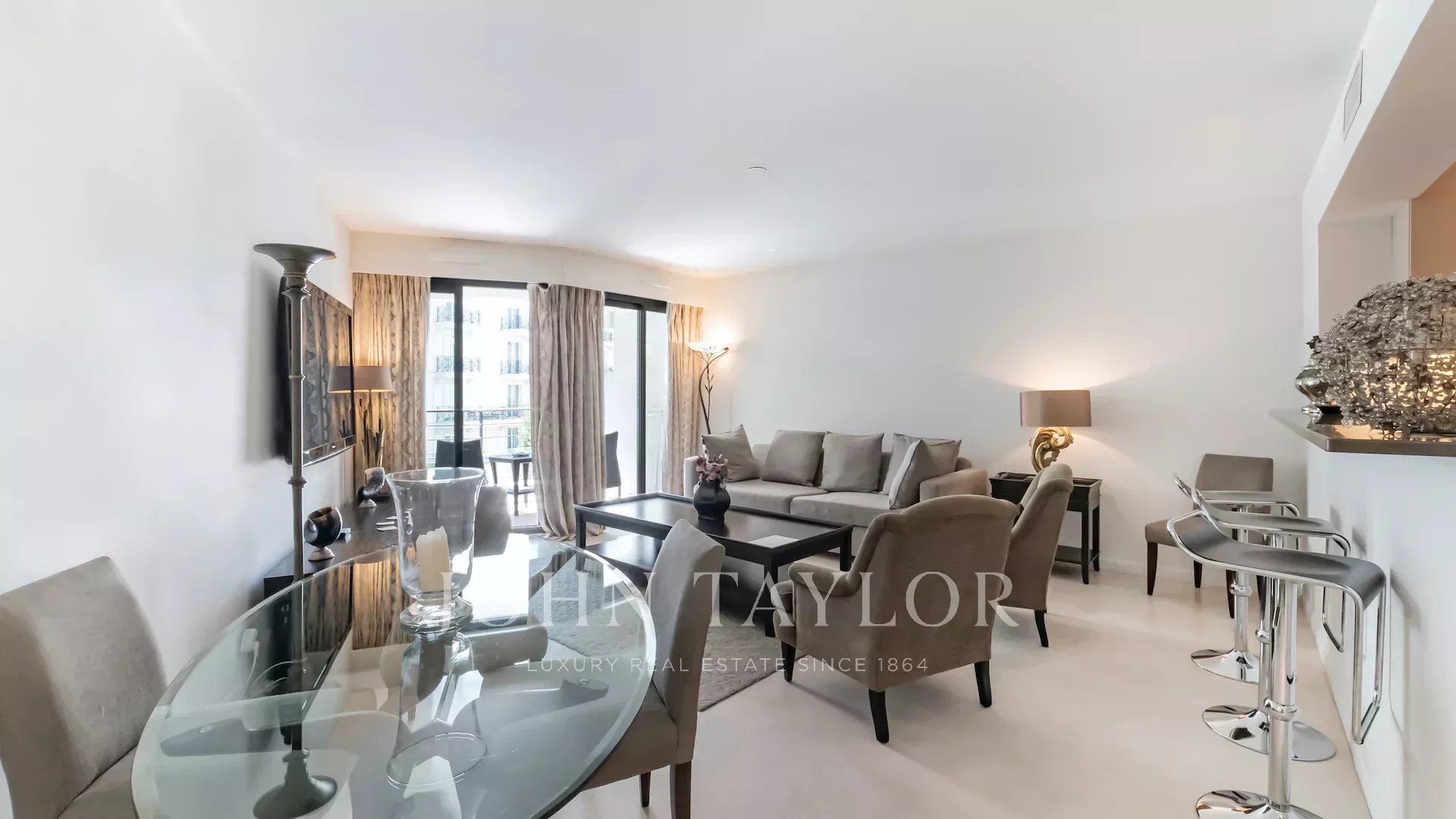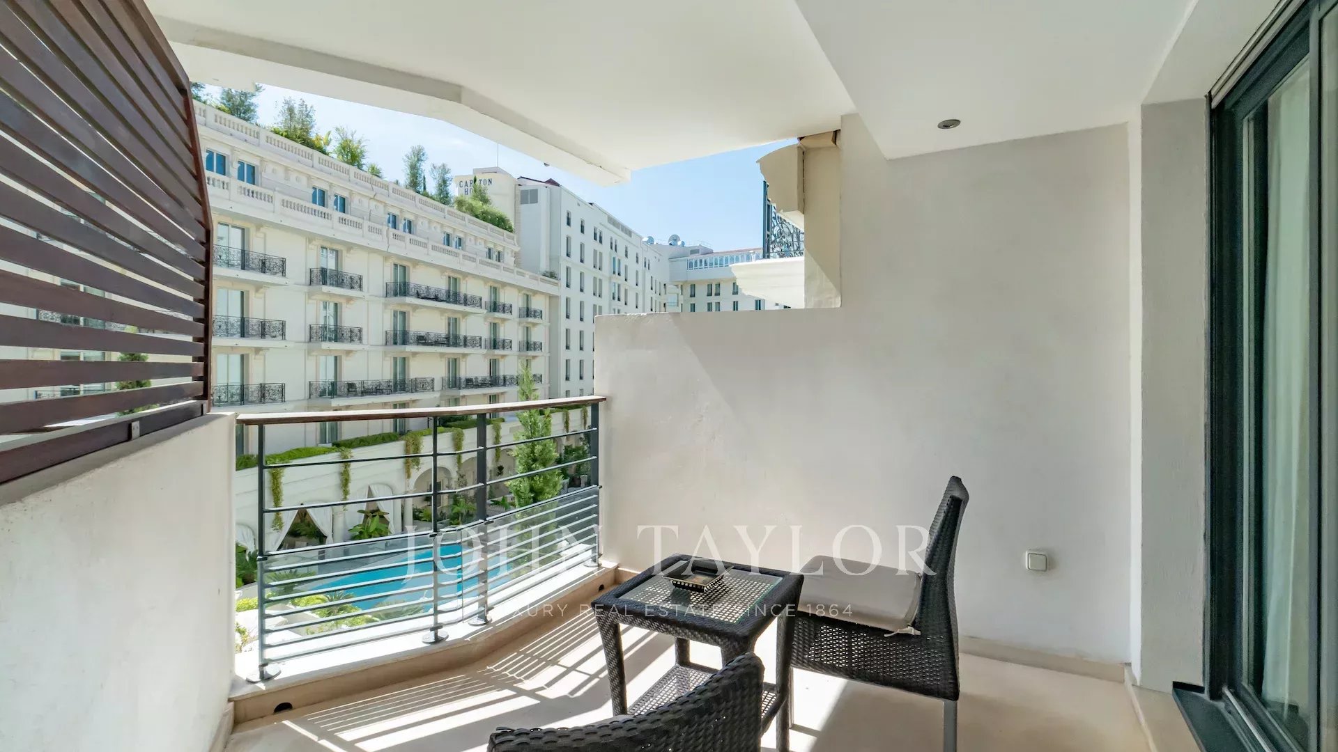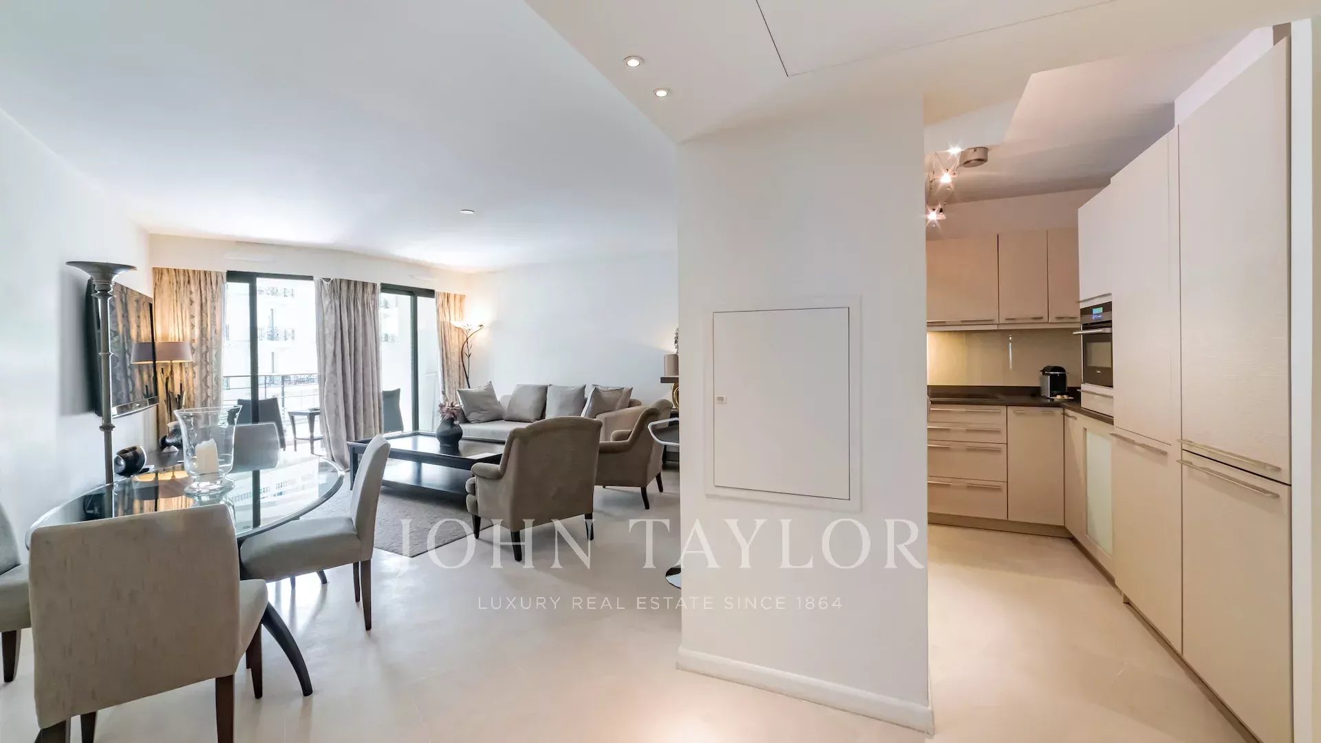 Just a few meters from the Croisette, in a luxury residence with janitor, this superb walk-through apartment boasts two terraces and an ideal layout.