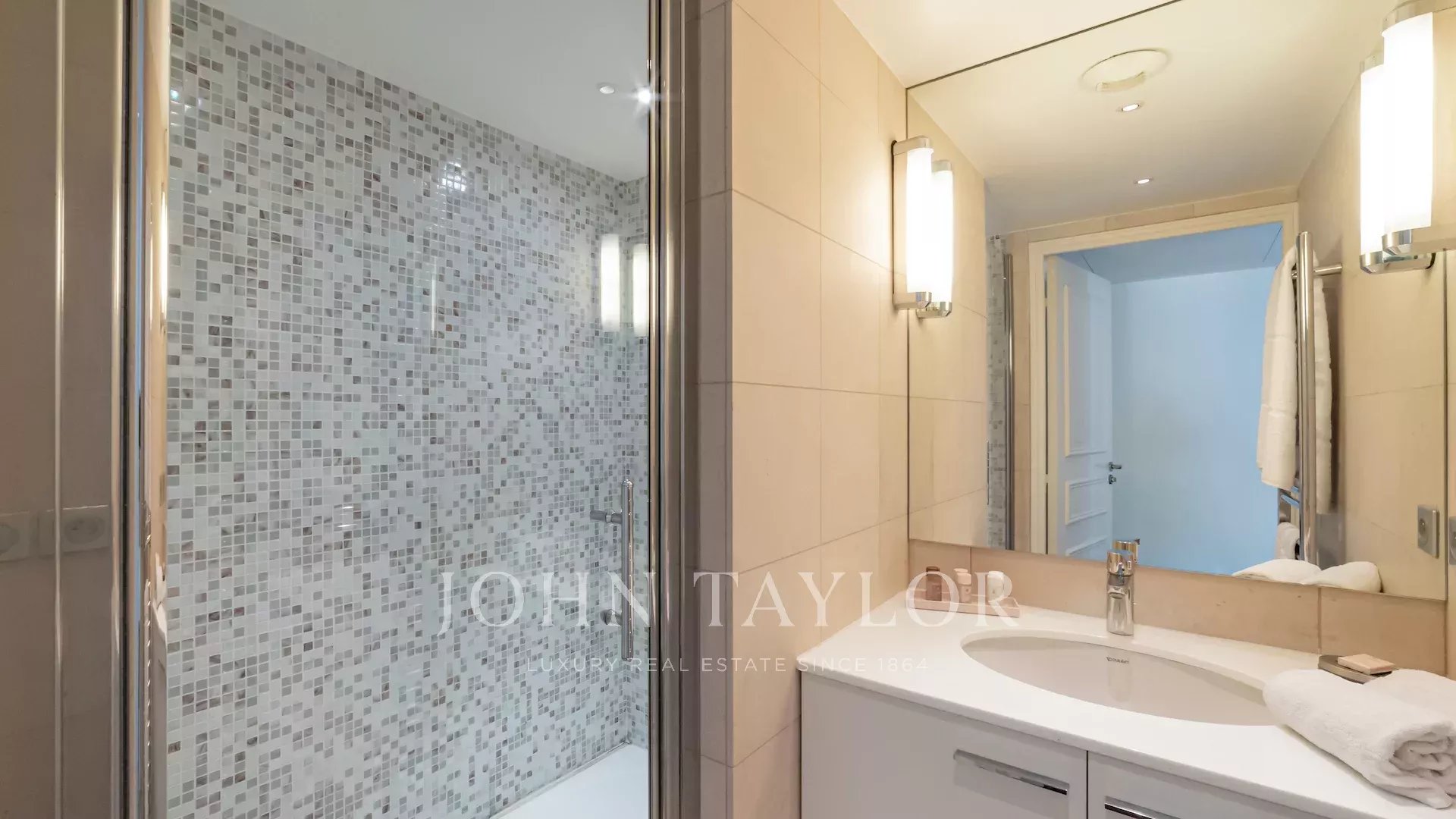 Located on the 3rd floor, it boasts 89 m² of living space. It comprises an entrance hall, living room, fitted kitchen and two bedrooms with en-suite bathrooms.