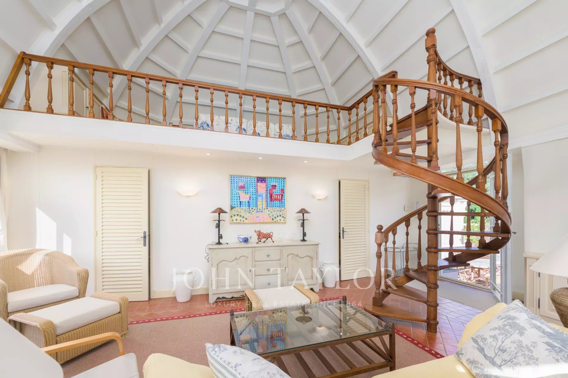 Guest apartment: located under the tower's cupola, this independent 60 m² space is perfect for welcoming your loved ones in a unique and charming setting. Two terraces totalling 60 m², one with an exceptional view of the sea and the Bay of Cannes.