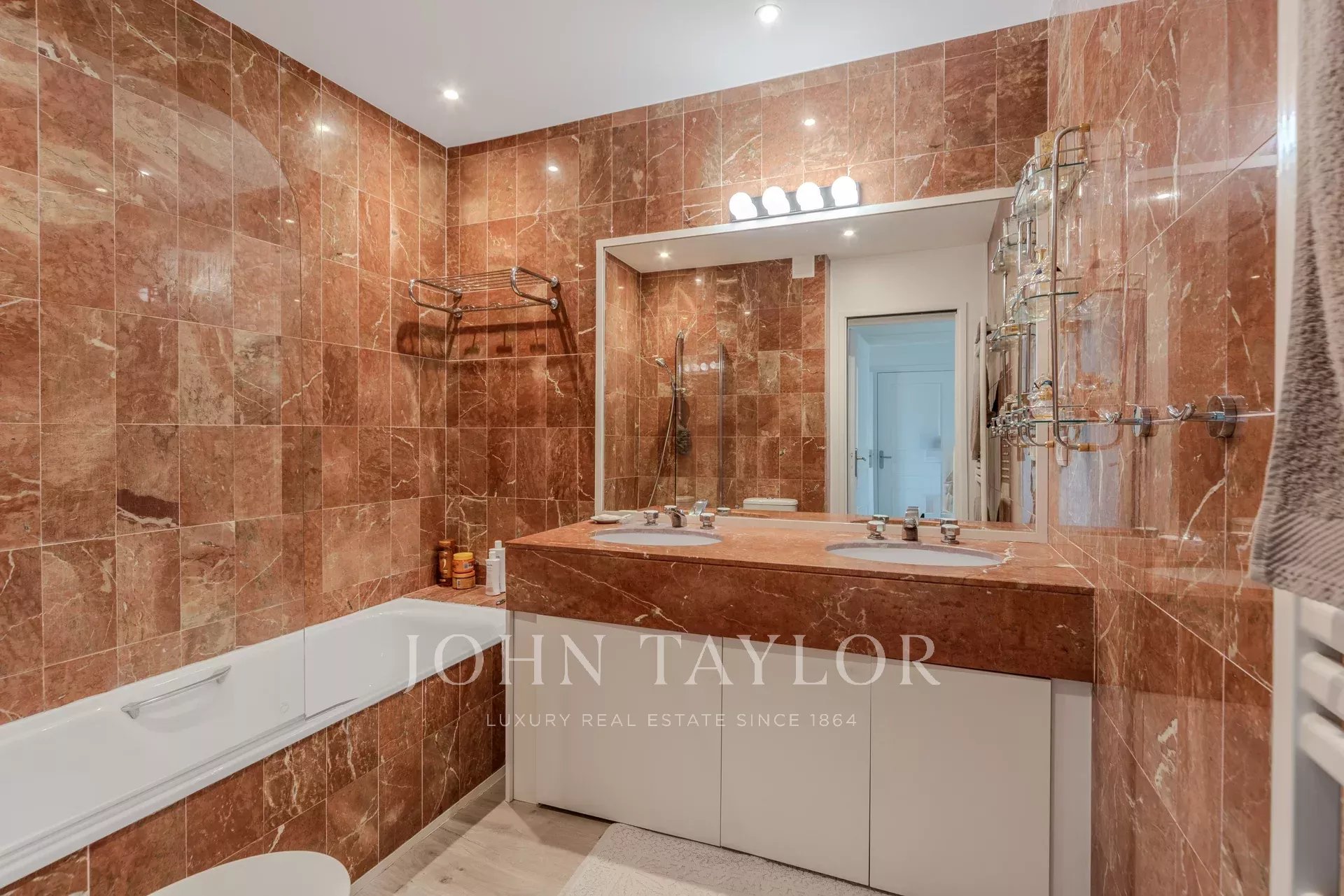 The apartment comprises an entrance hall with study area, a spacious living room with dining area and fully-equipped open-plan kitchen, and two bedrooms with dressing rooms. There's also a bathroom with toilet, a separate shower room and guest toilet. To the rear, a second spacious terrace of 14.10 m², with no overlooked views.