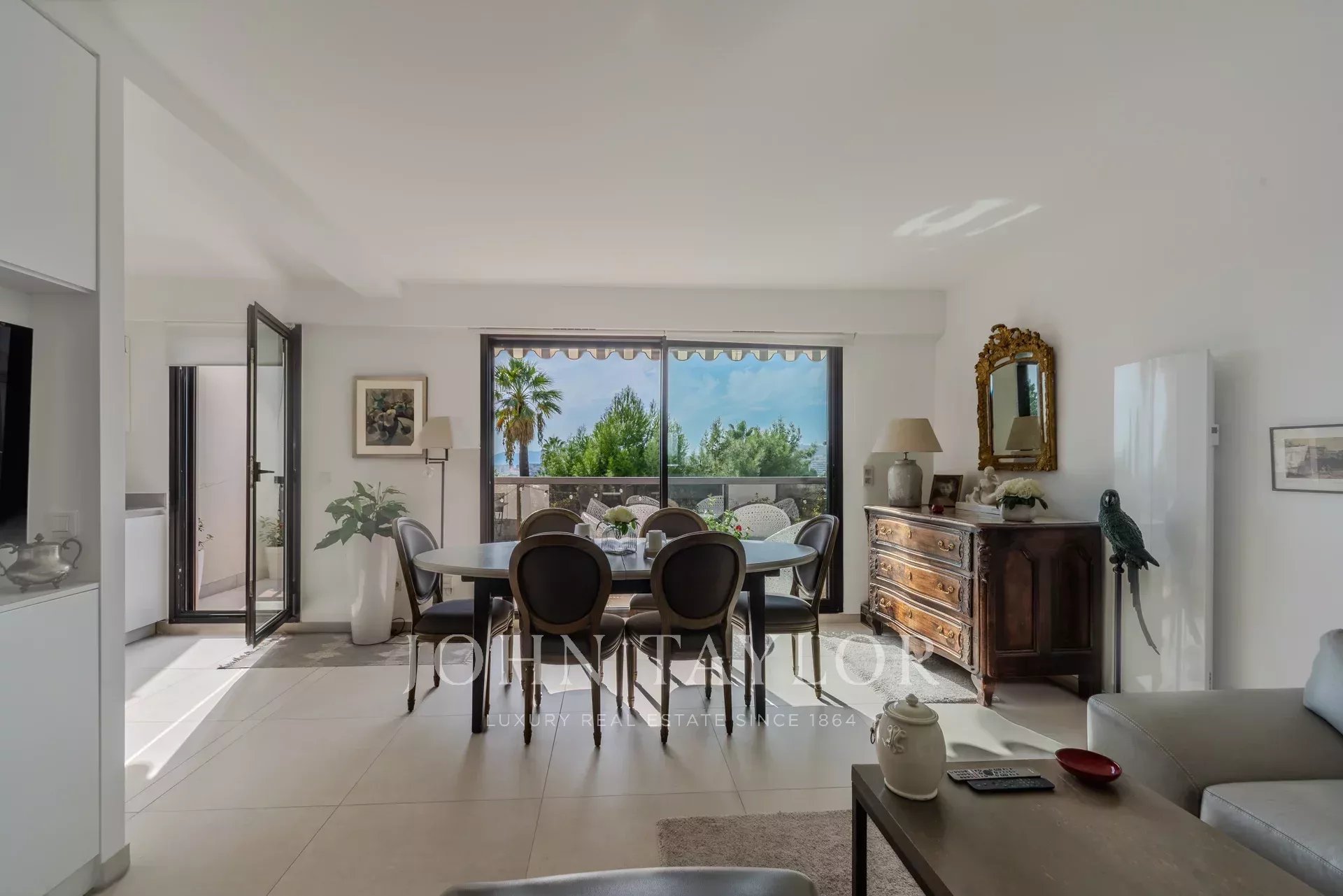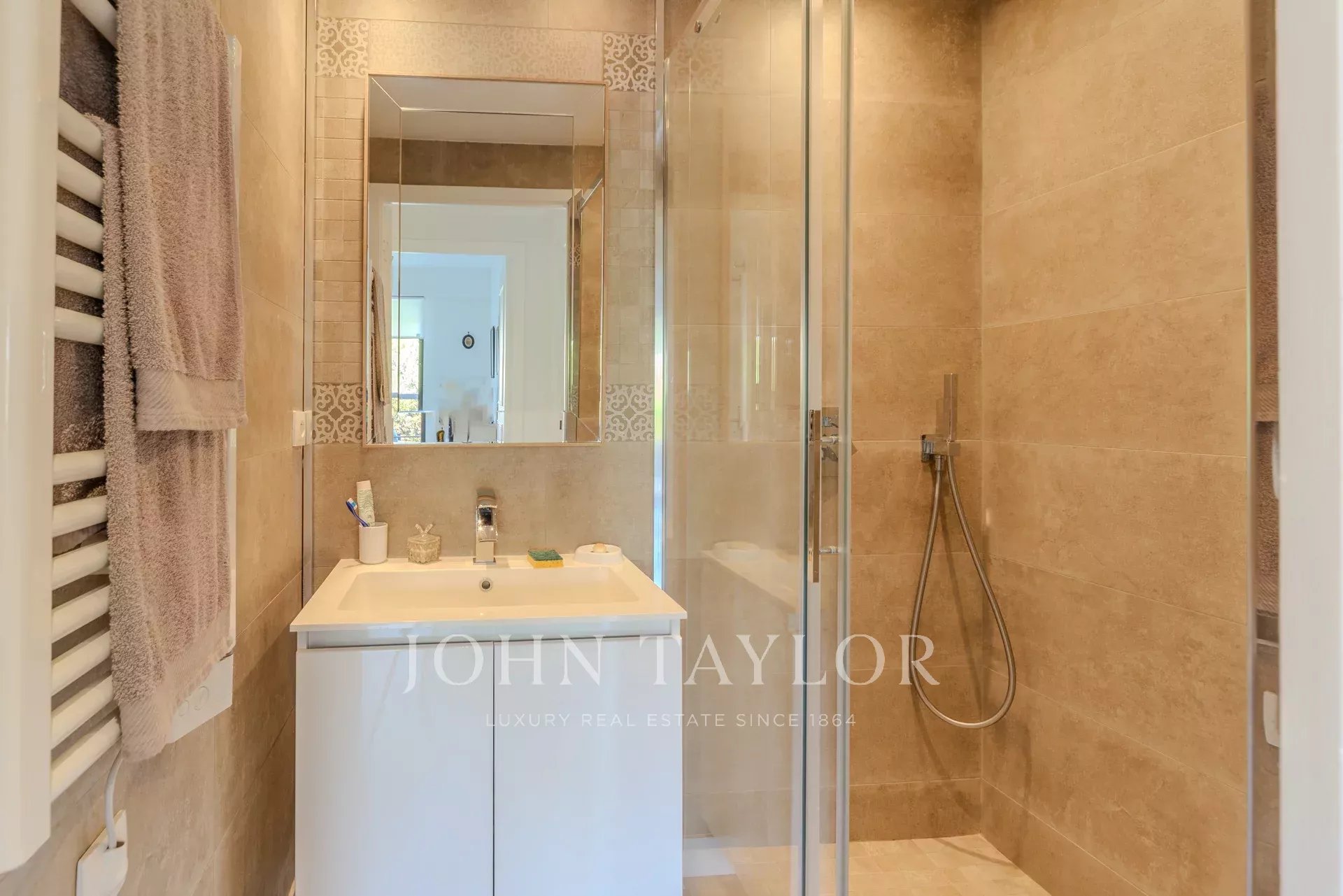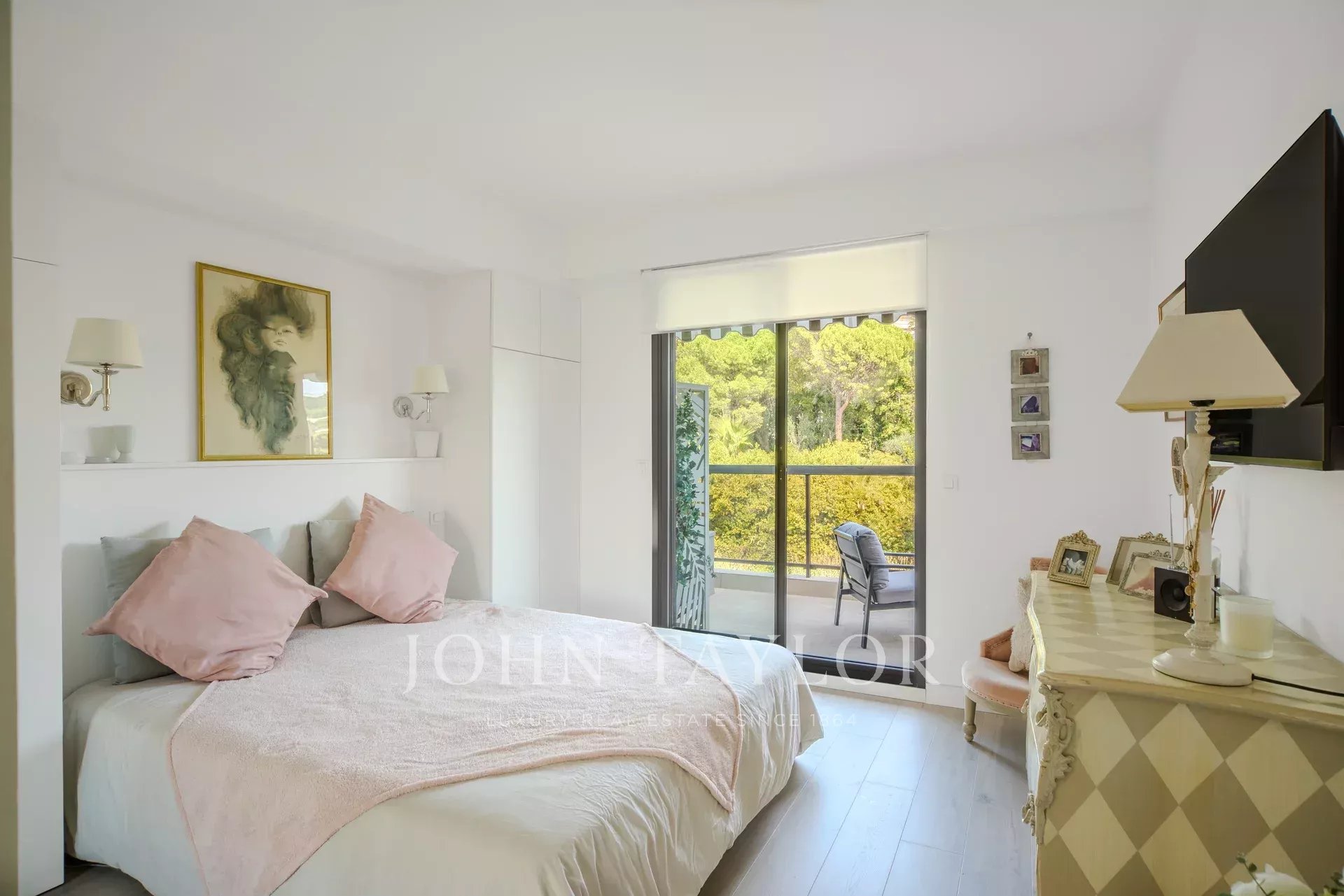 Crossing, air-conditioned, bathed in light and in absolute calm, it opens onto a first terrace of 14.51 m² facing south-west, offering an exceptional view of the greenery, a superb sea view and the relief of the Estérel.
