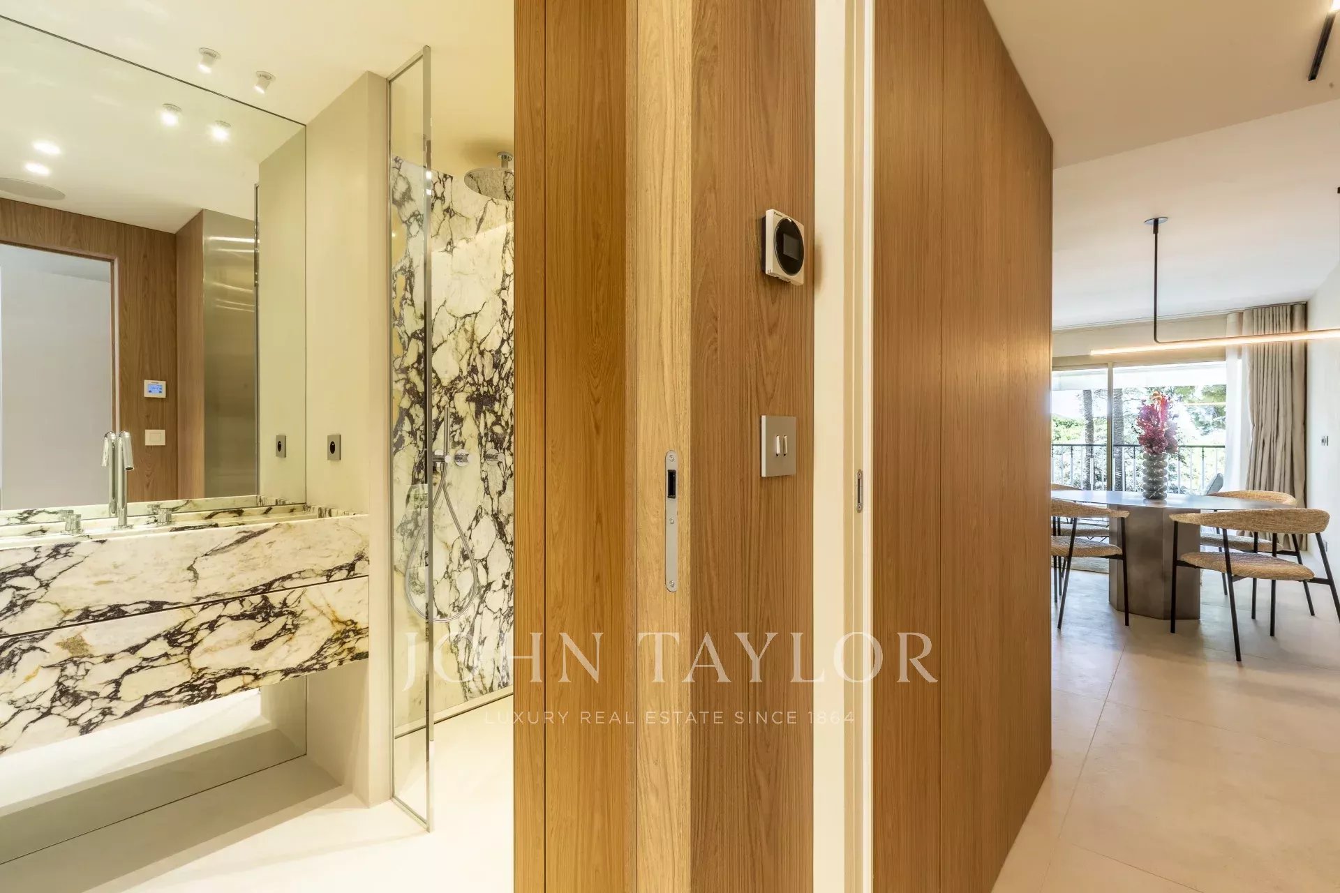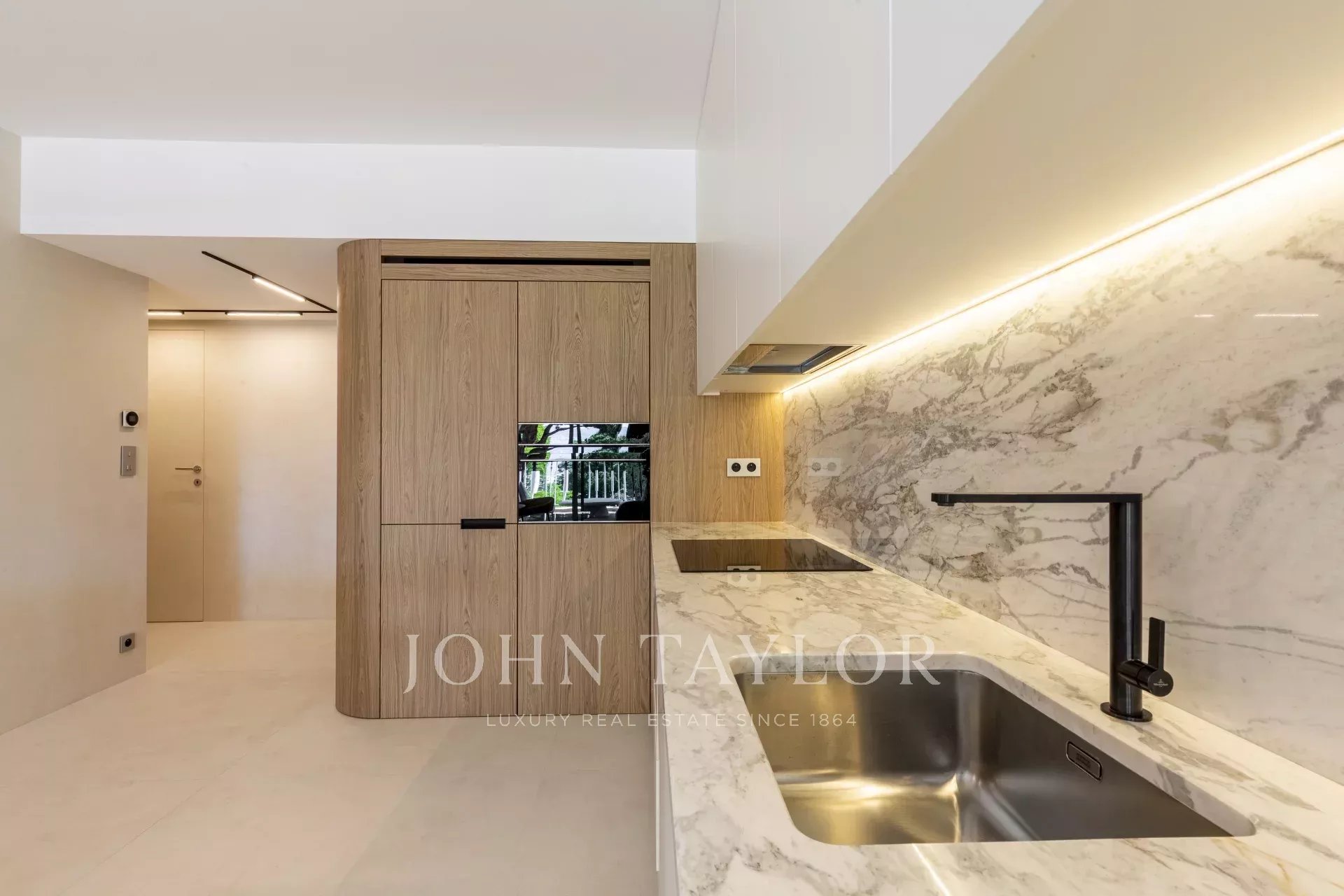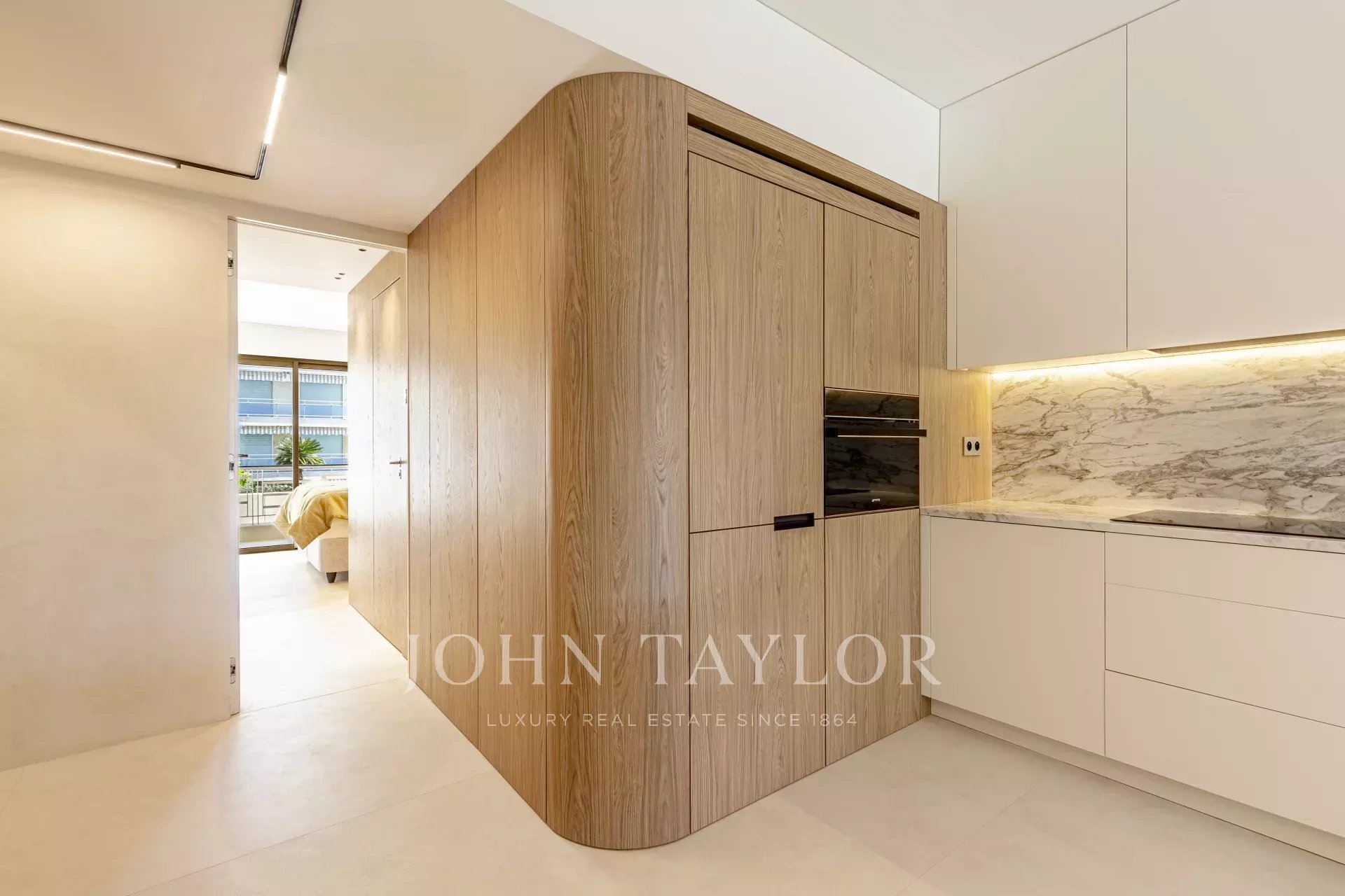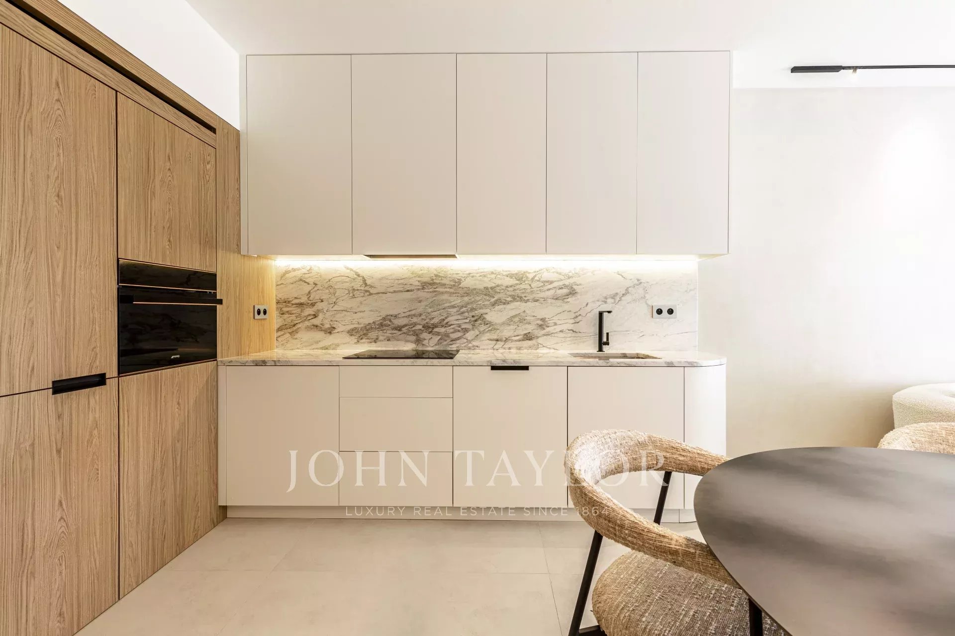 Entirely renovated with top-of-the-range fittings, it offers a bright, contemporary living space comprising a living room opening onto a southwest-facing terrace, a fully equipped open kitchen, as well as two bedrooms, one of which en suite.