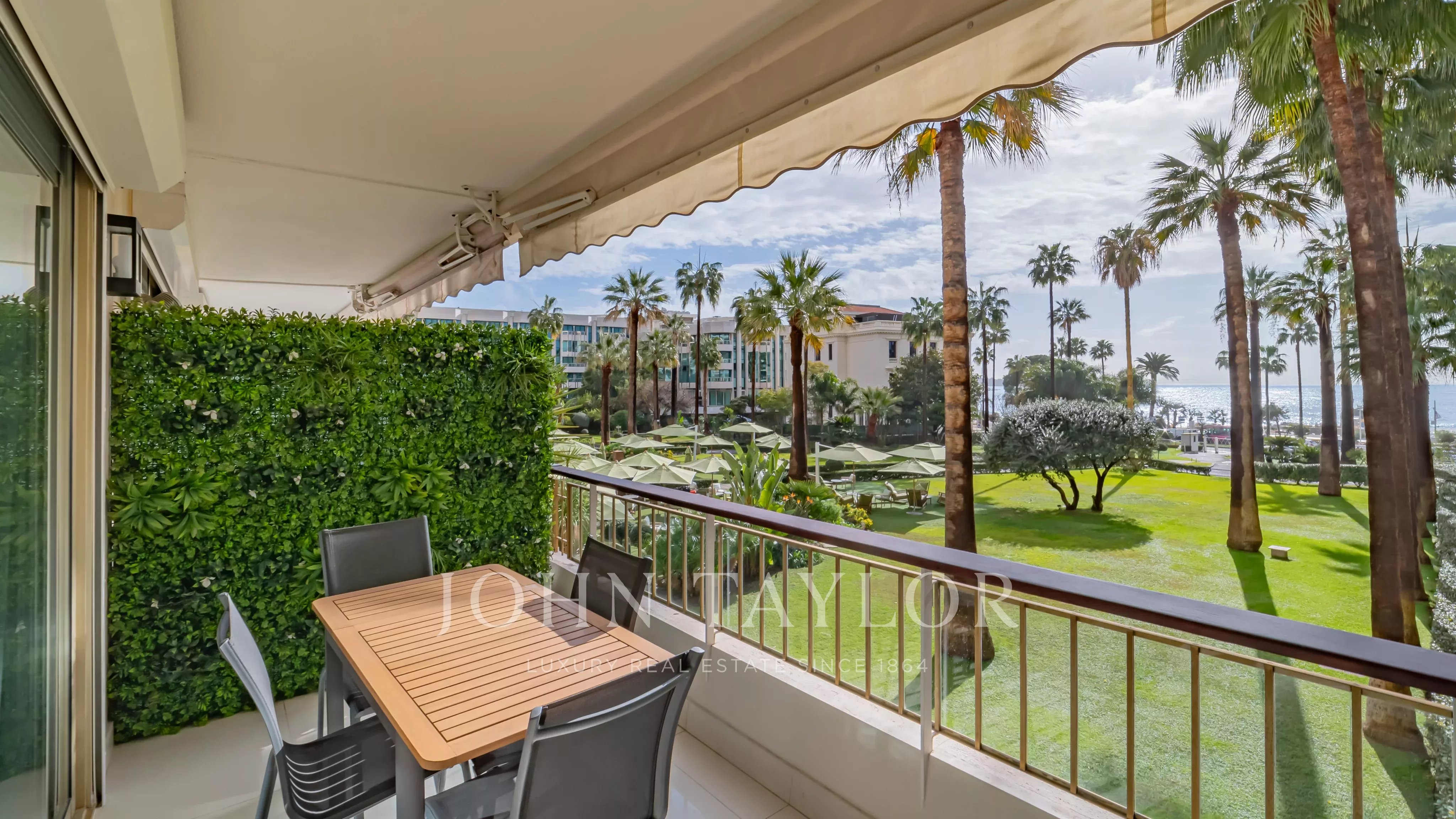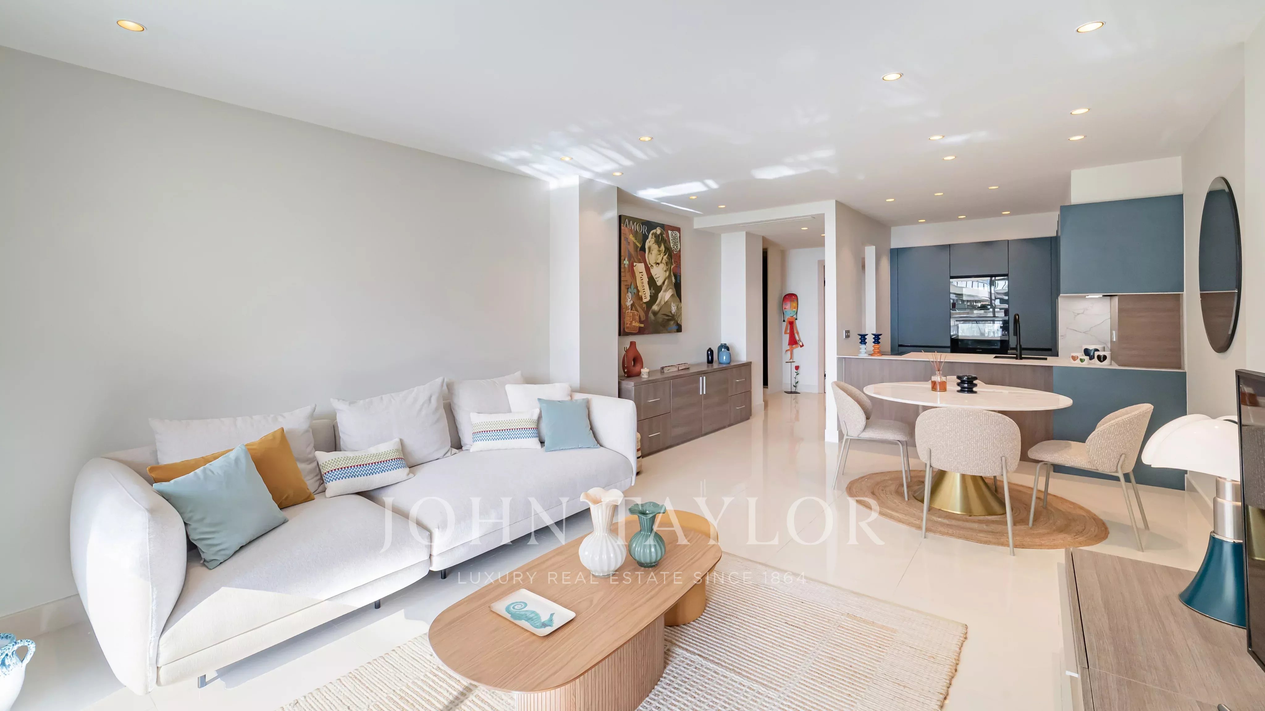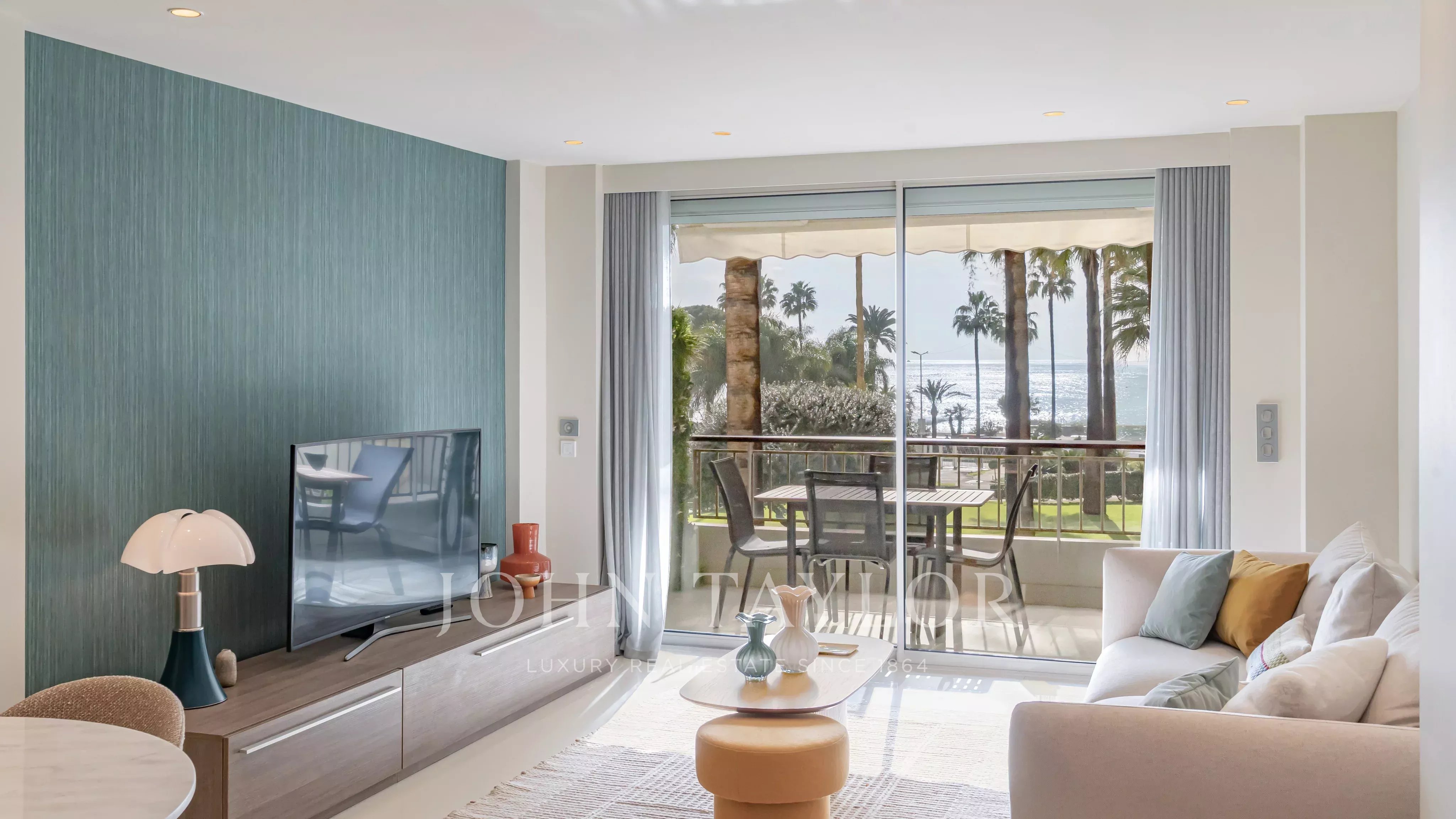 In a luxury residence in the center of La Croisette, this beautiful apartment has been fully renovated to a very high standard and offers a lovely terrace and a beautiful view of the park and the sea.
