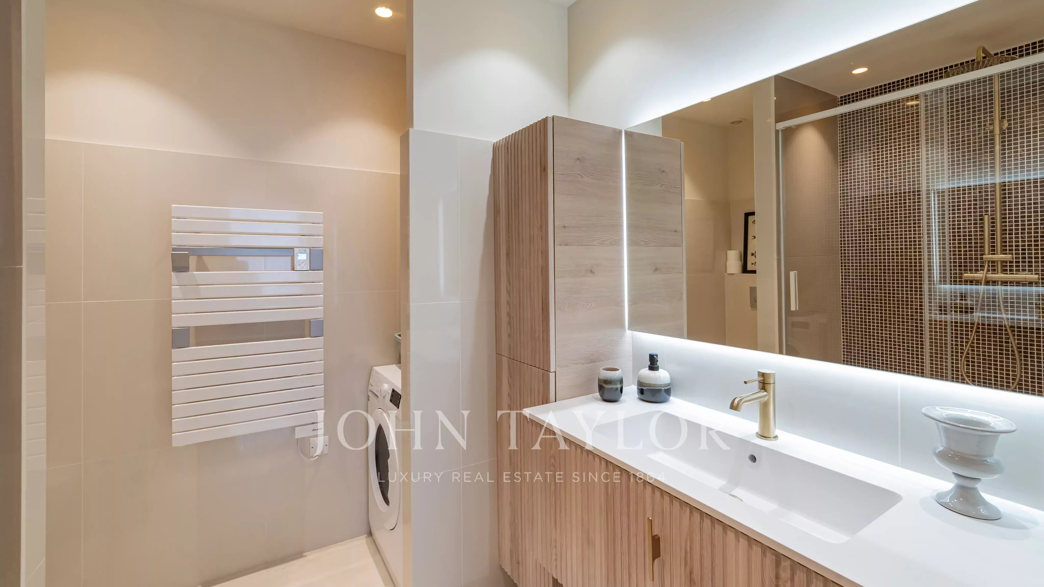 With a surface area of approx. 82.21 m² (77.71 m² Loi Carrez), it comprises: entrance with cupboards, open-plan kitchen, living room opening onto a terrace of approx. 8.40 m², guest toilet and two bedrooms with shower rooms.