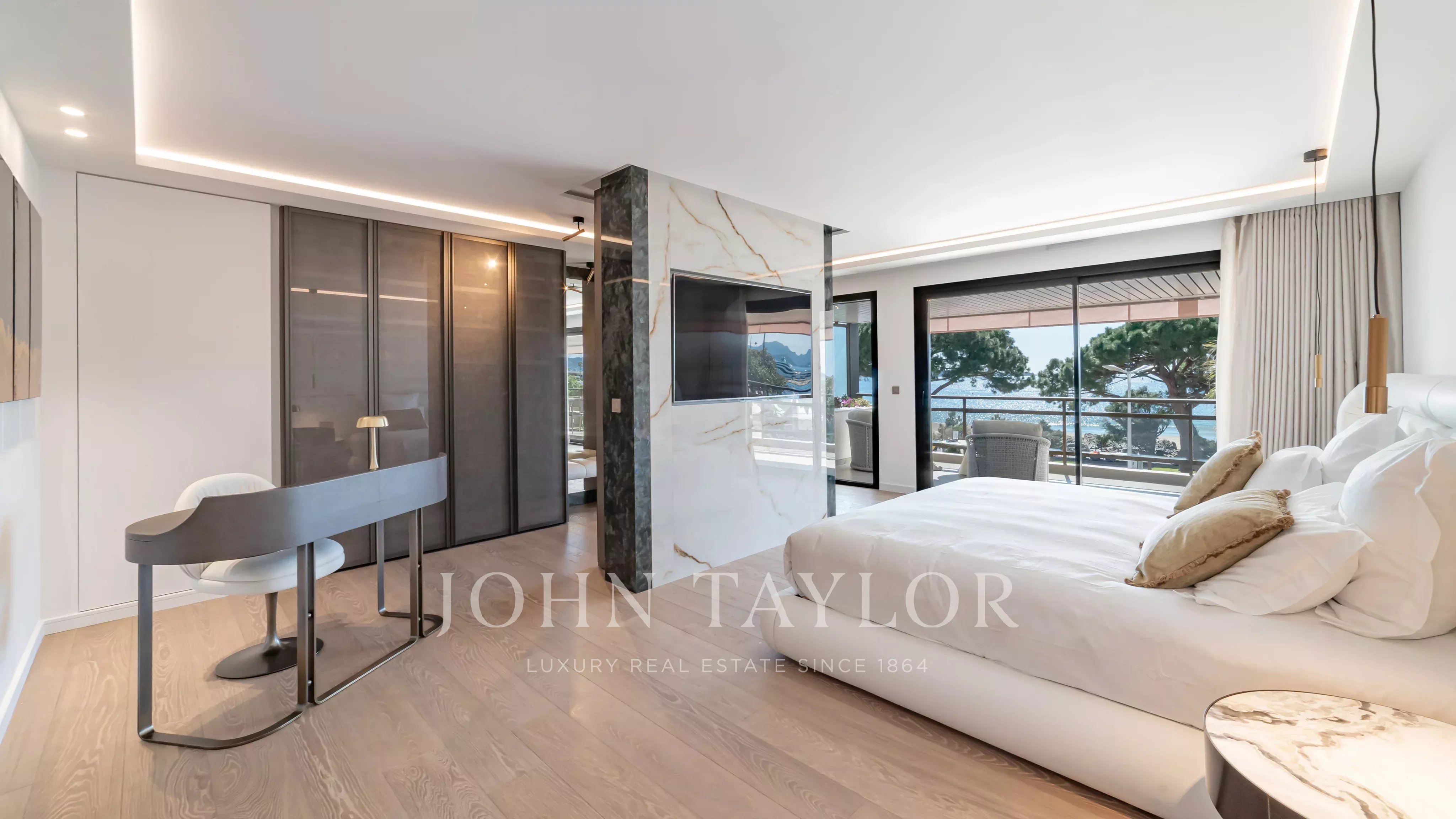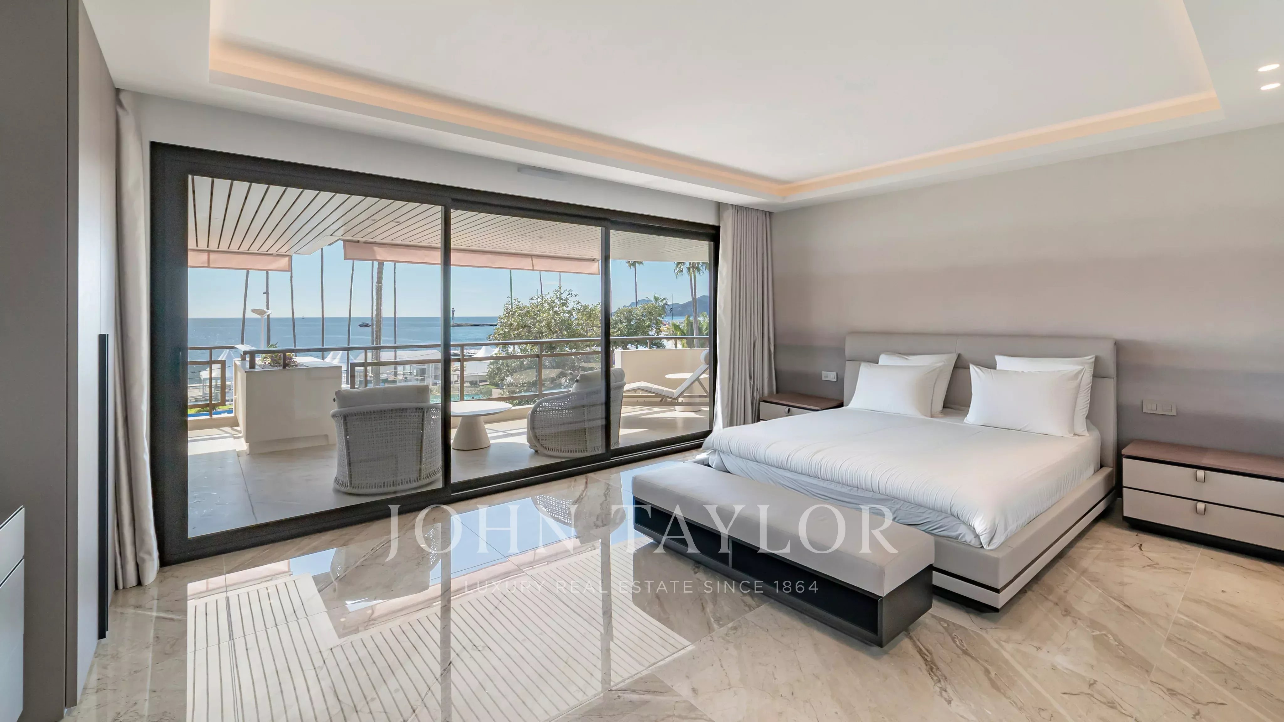 Fully renovated with very high-quality materials, this property appeals with its elegance, its high-end amenities, and its large terrace offering a breathtaking view of La Croisette and the Bay of Cannes.