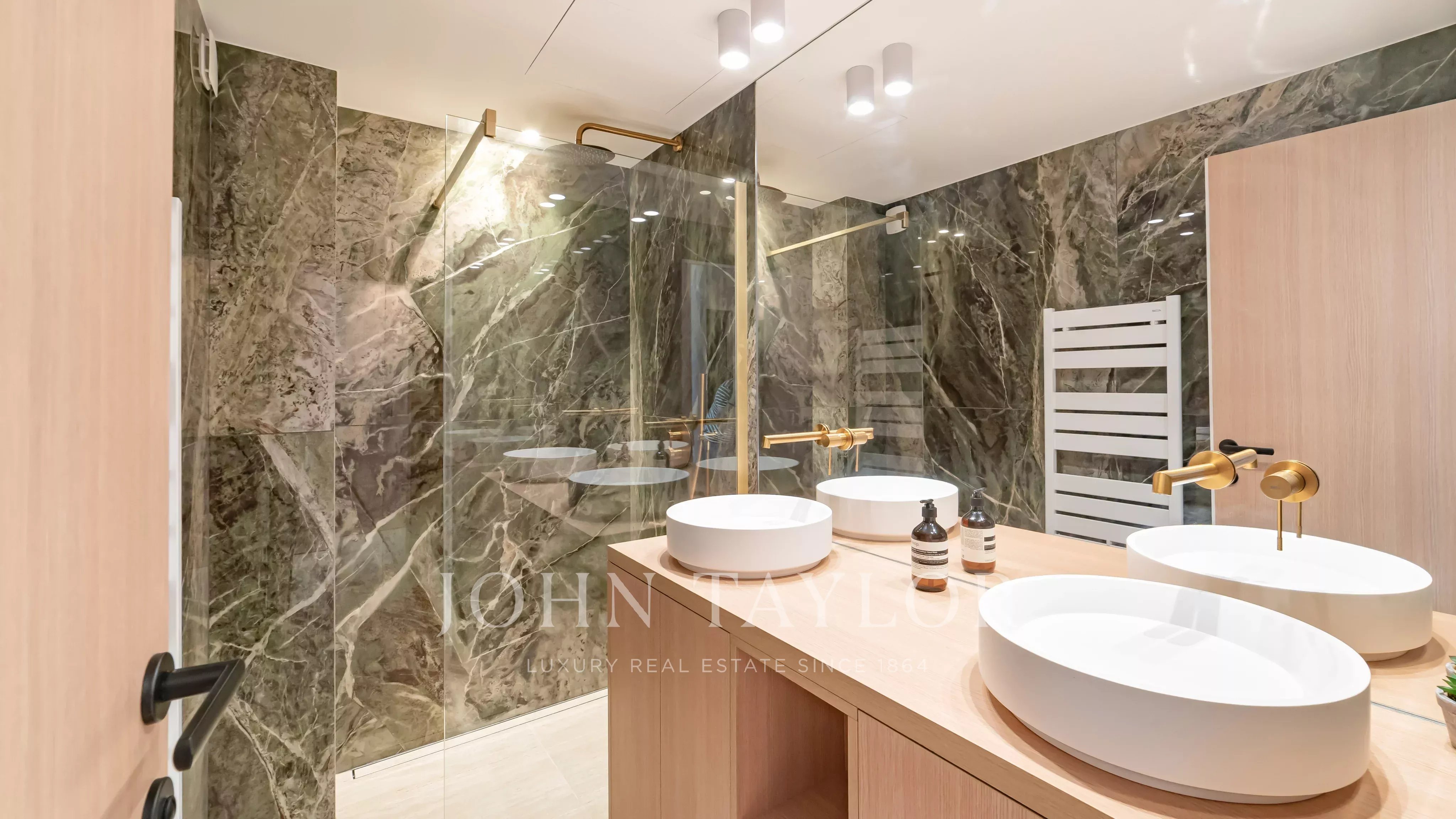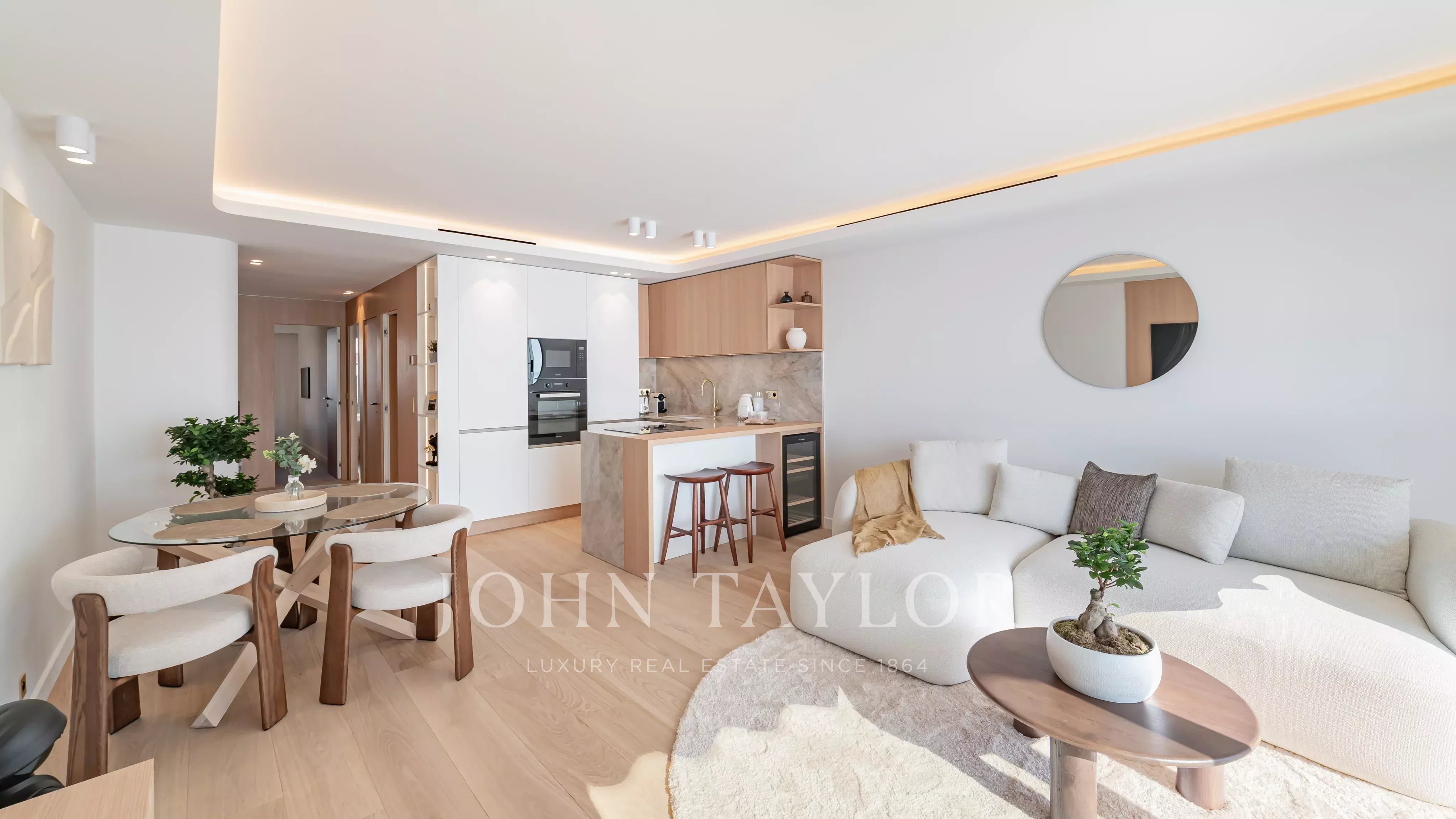 The renovation features high-end finishes, in a contemporary and refined style.