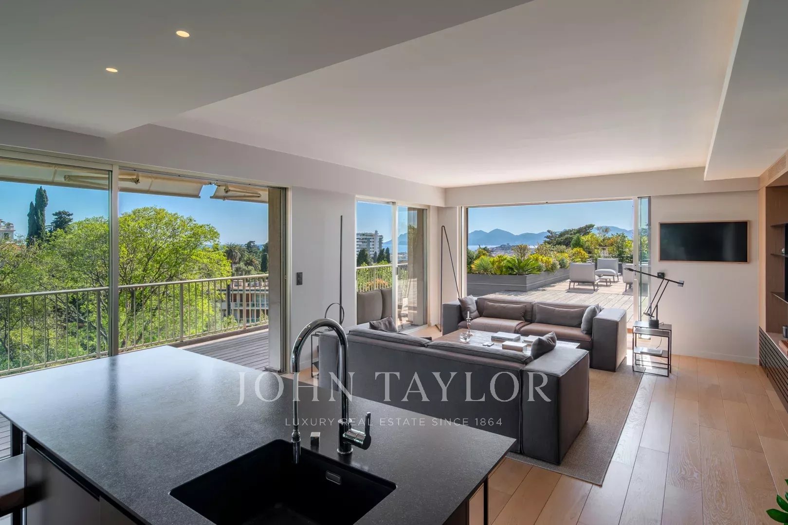 Its spacious landscaped terrace offers a panoramic view of the Cannes Bay, the Suquet, as well as the Esterel massif.