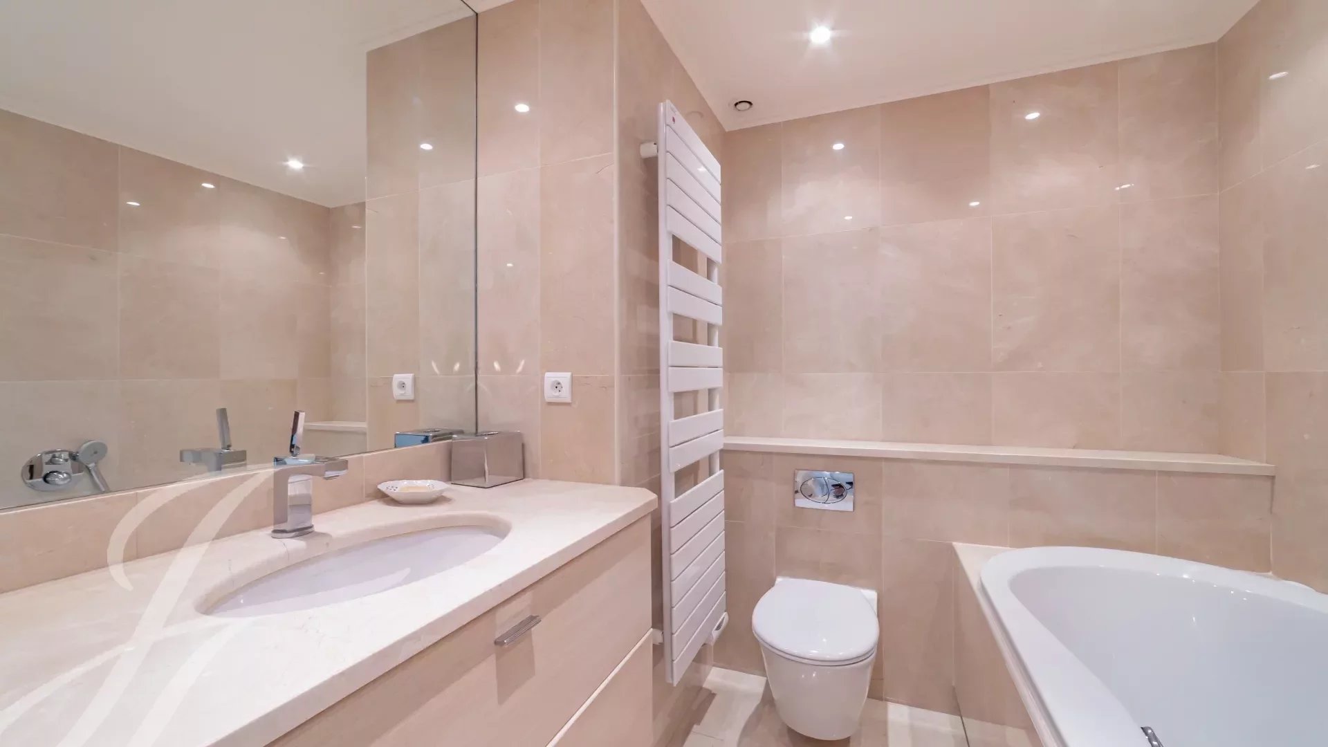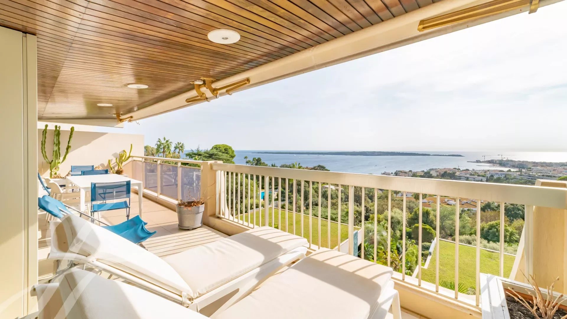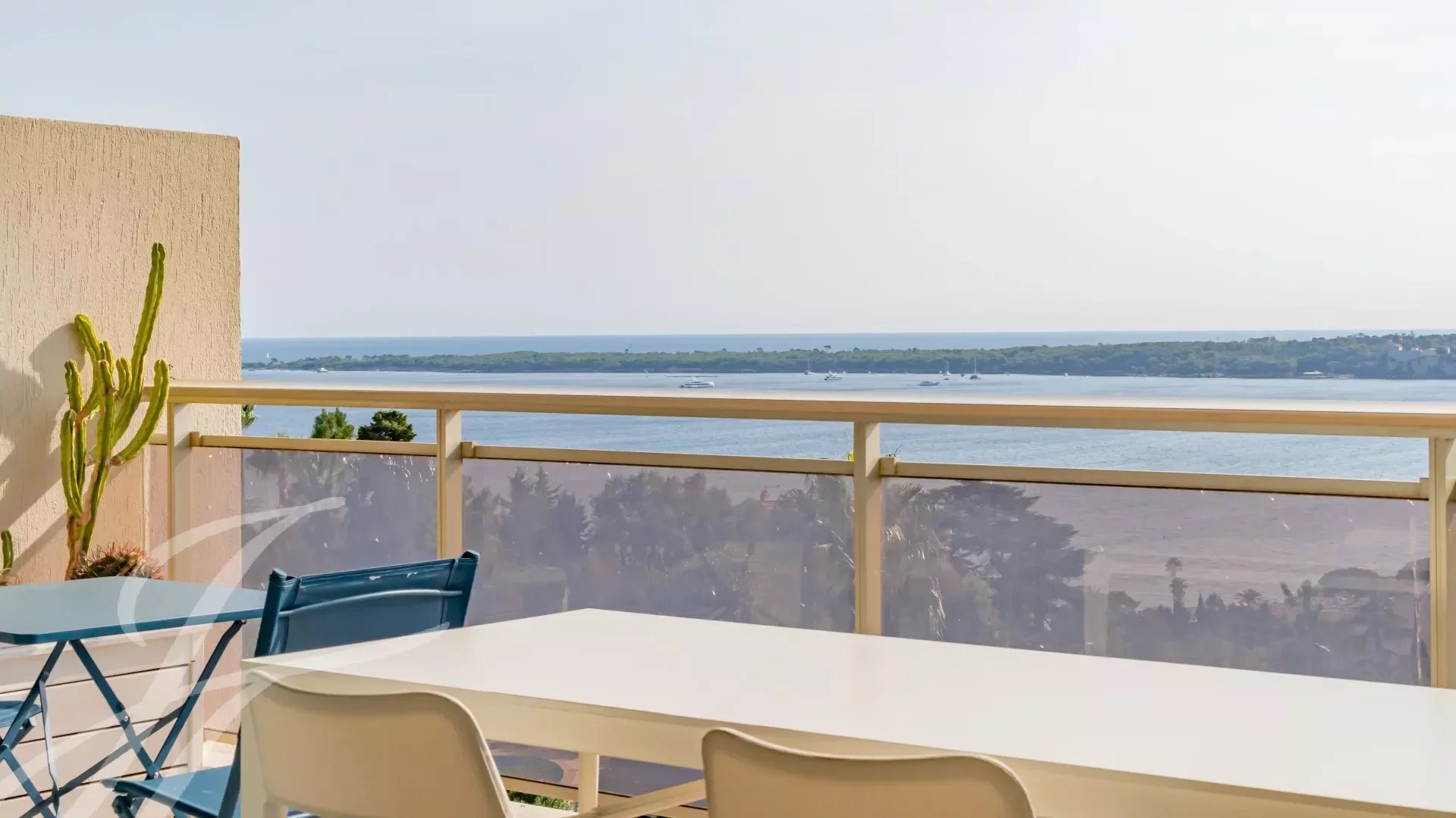 In a luxury residence in the prestigious Californie district, this flat boasts an exceptional panoramic view of the sea, the Lérins islands and the bay of Cannes.