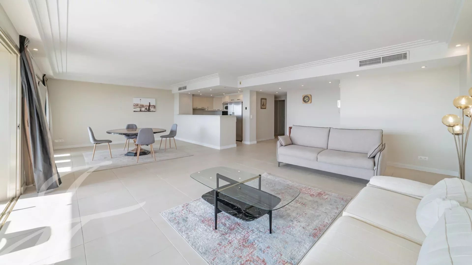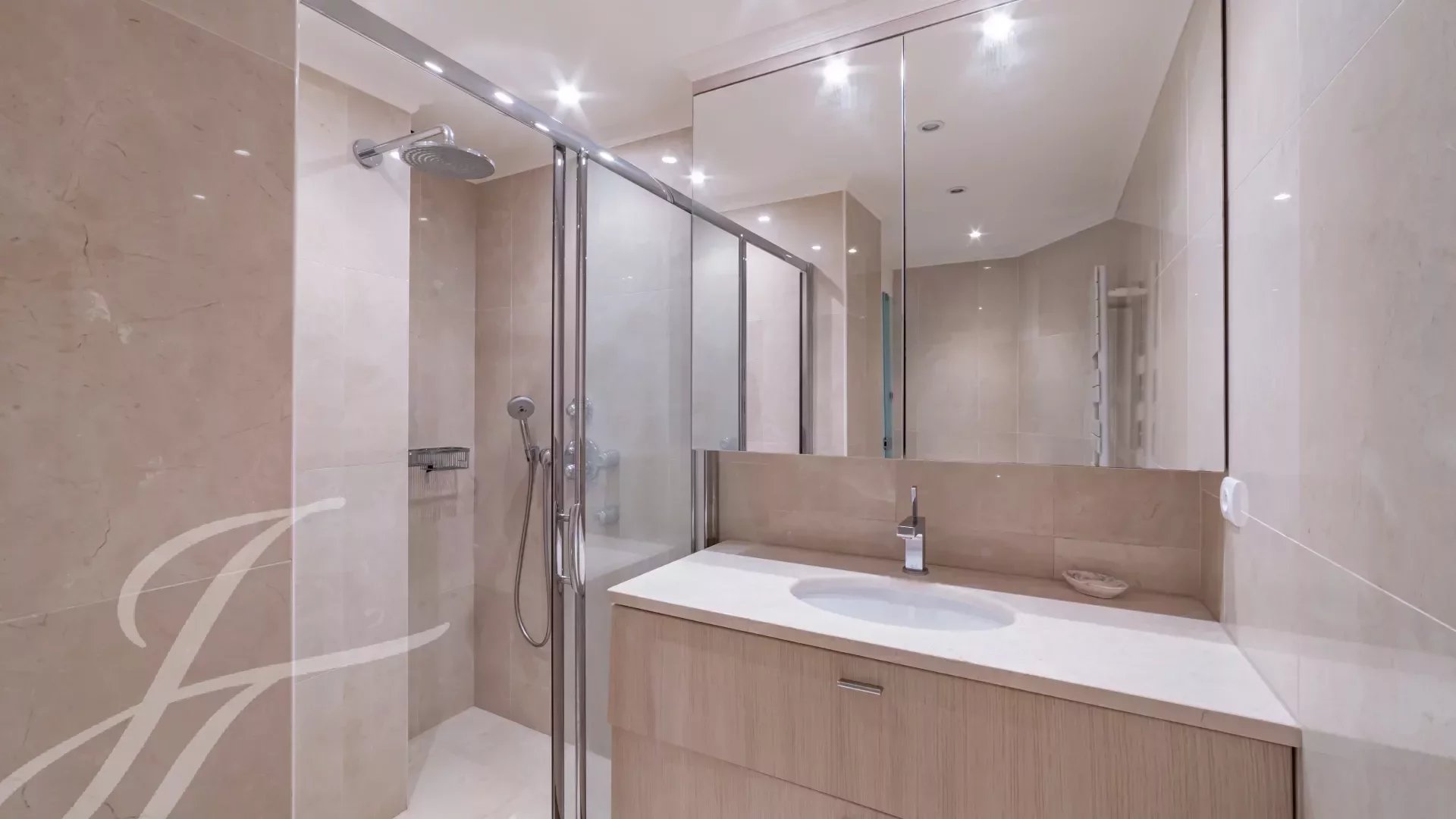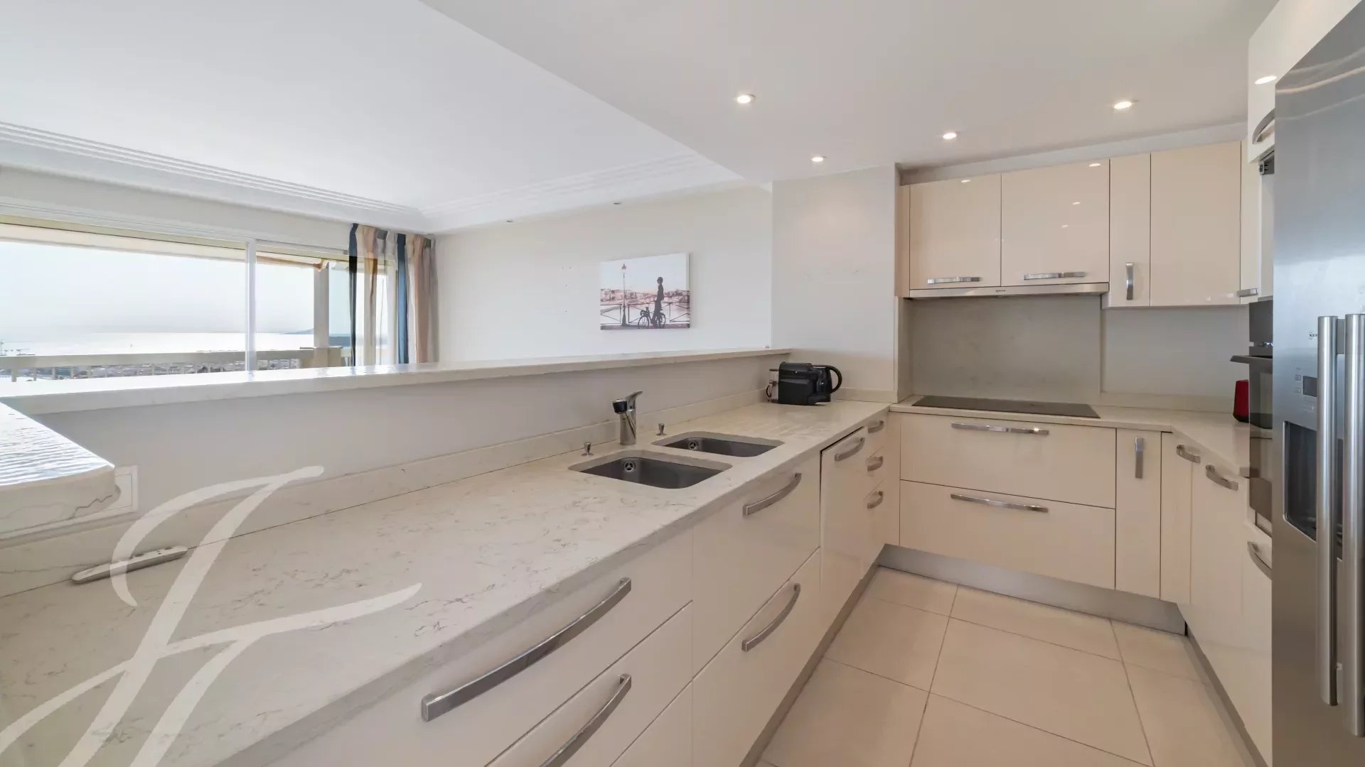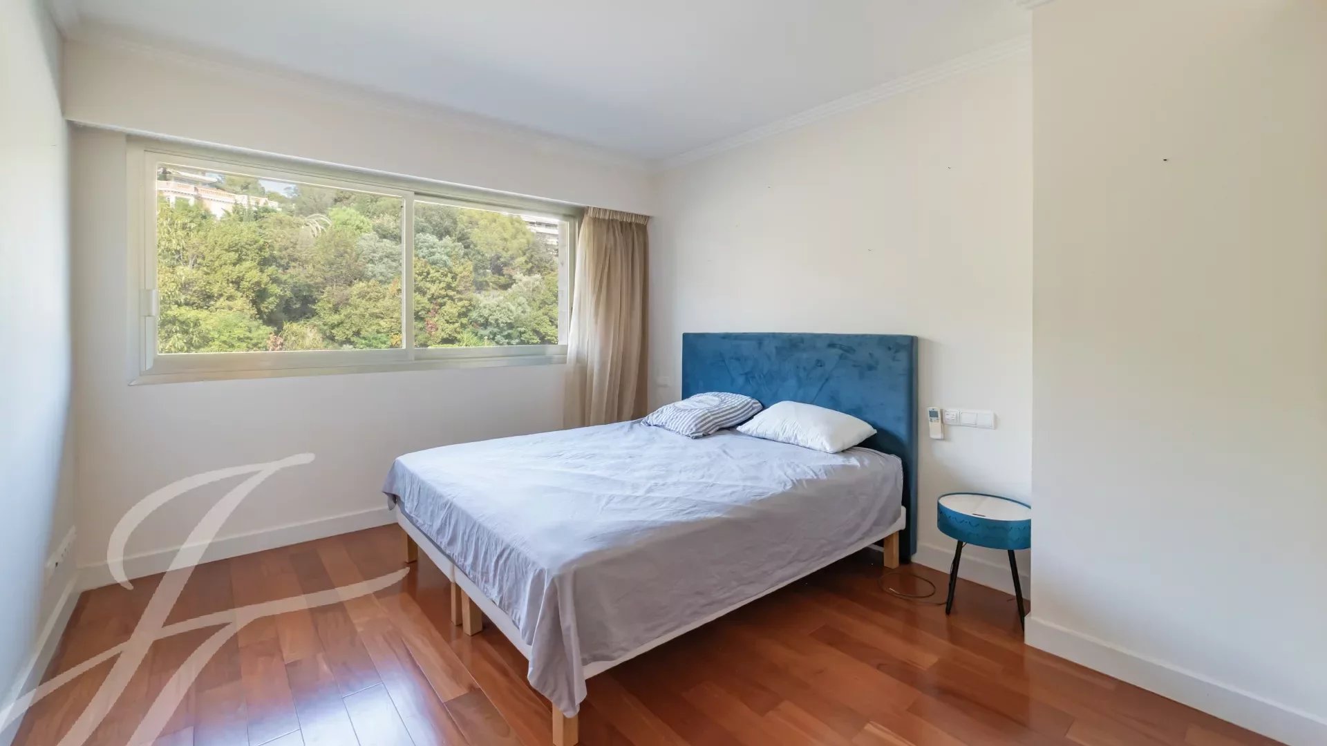 In a luxury residence in the prestigious Californie district, this flat boasts an exceptional panoramic view of the sea, the Lérins islands and the bay of Cannes.