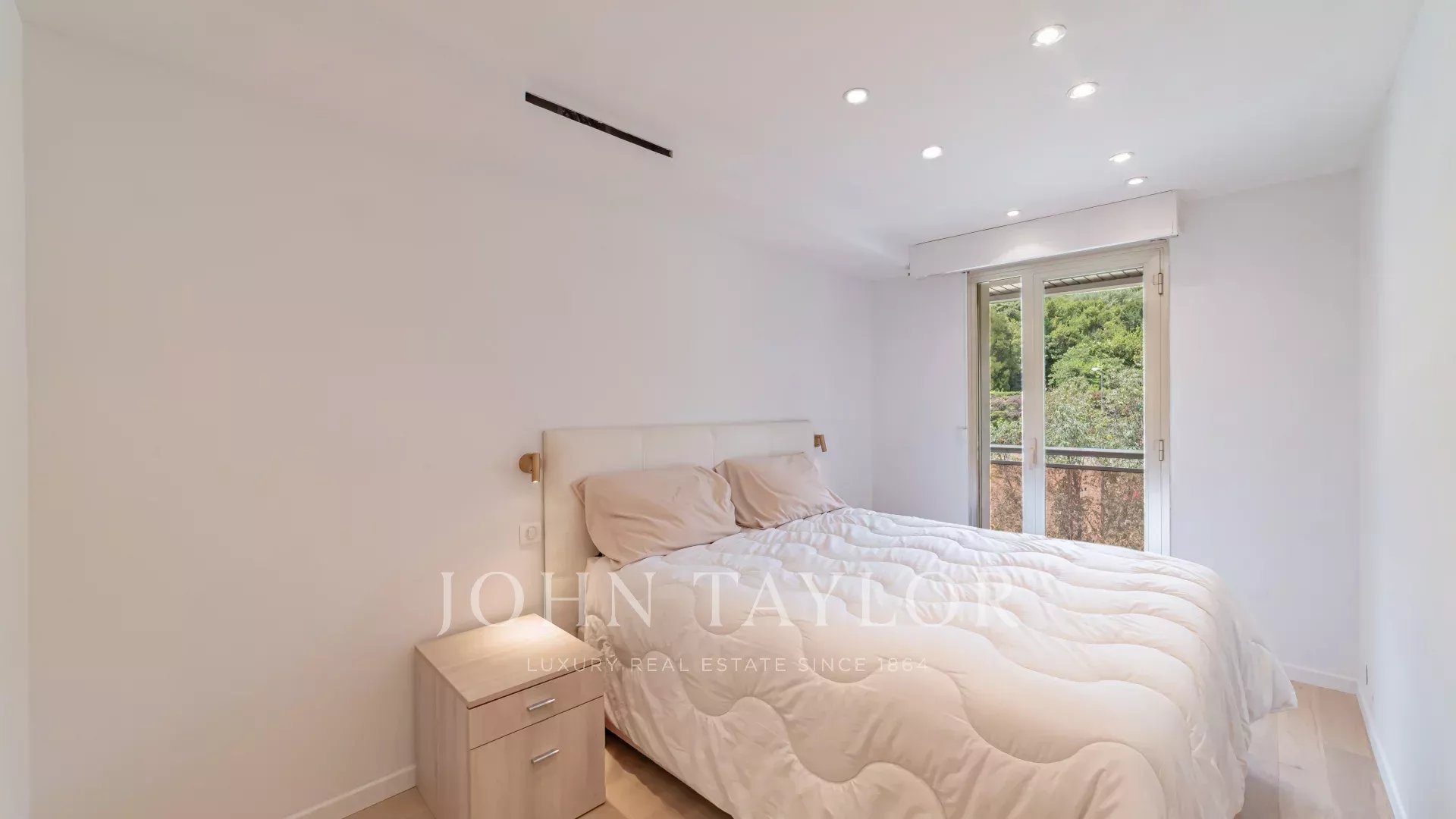 Just a few minutes from the city centre and seafront, the secure residence includes a 24-hour concierge service and a swimming pool in a lush setting.