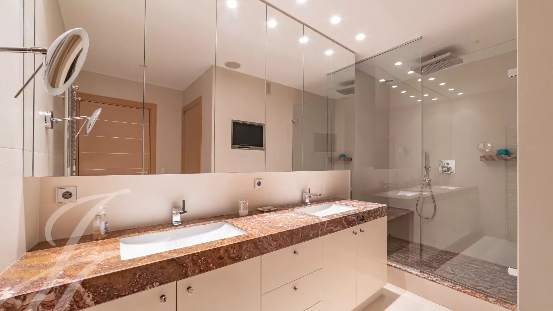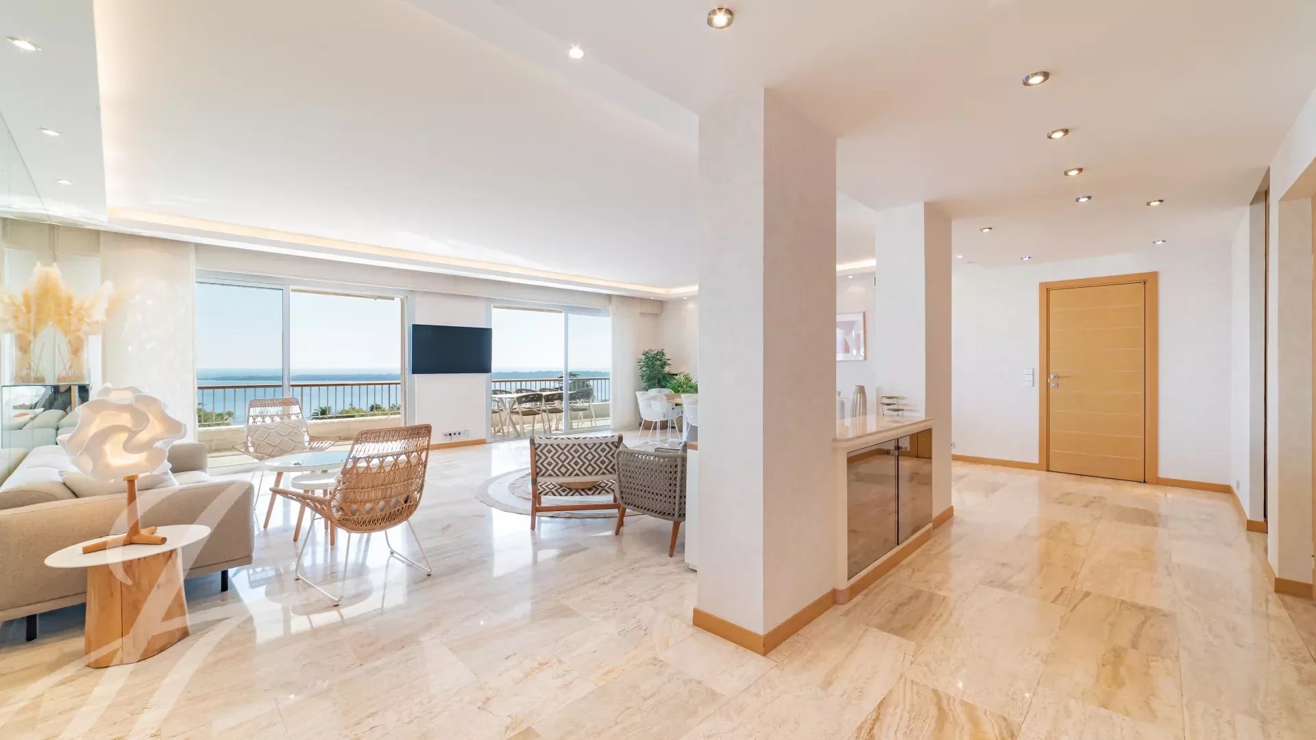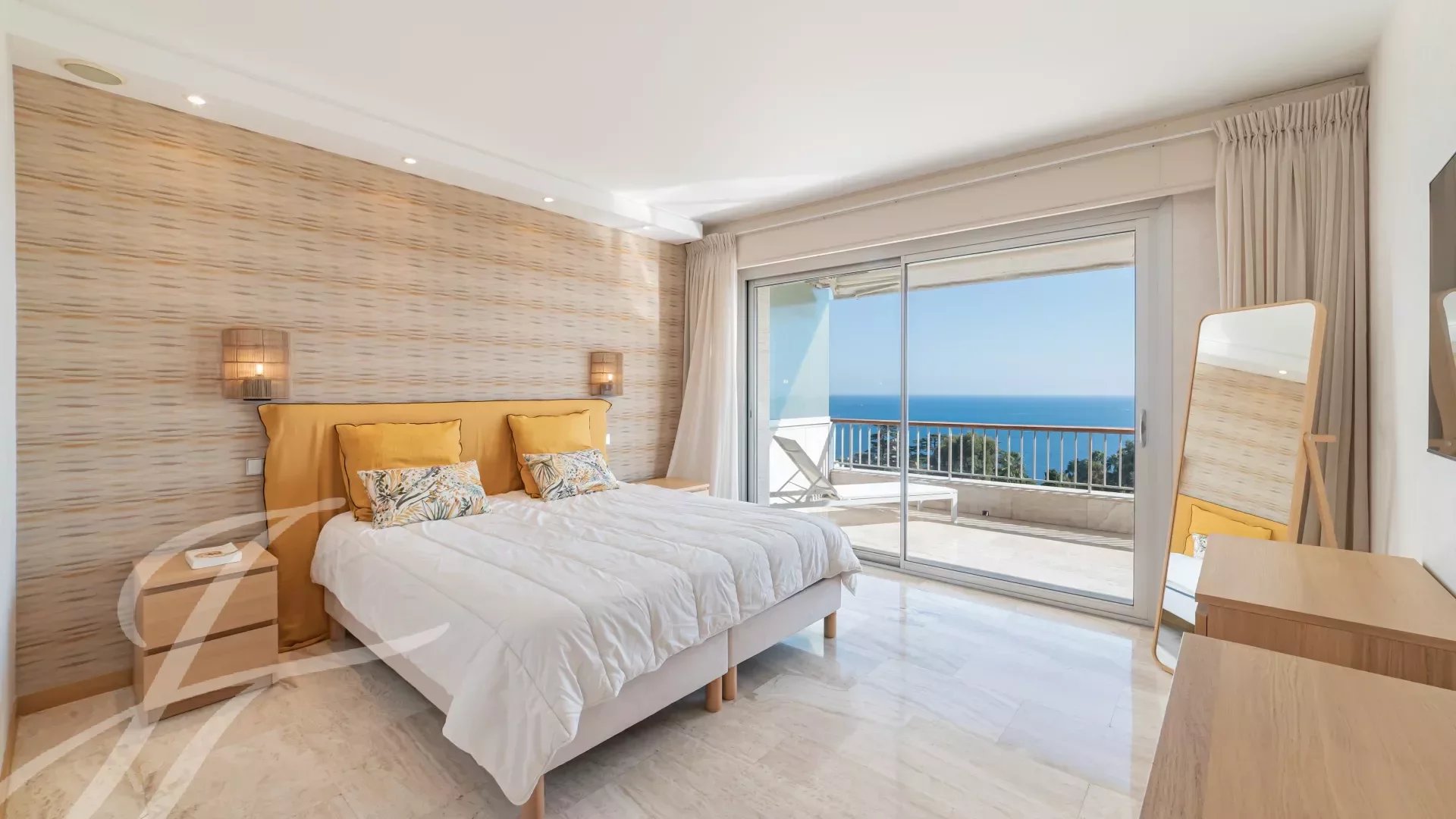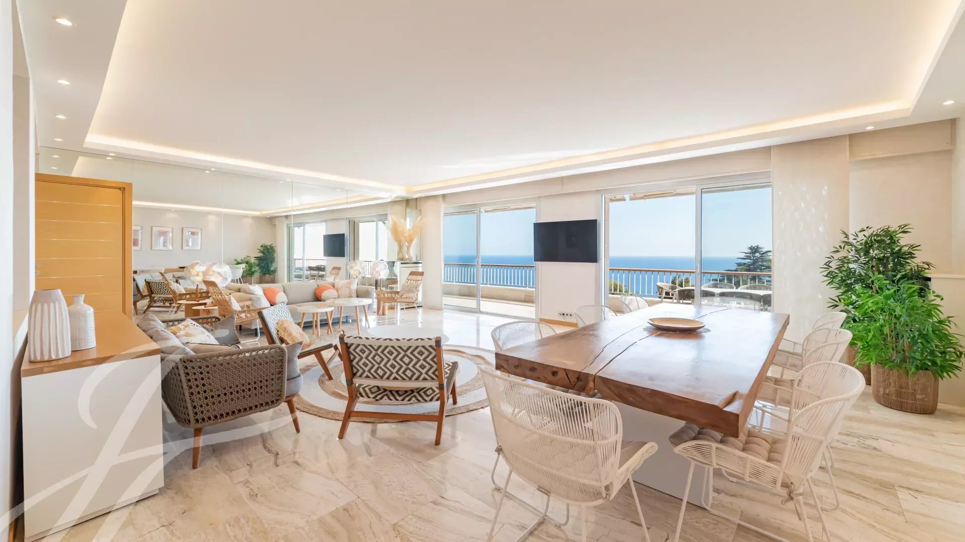 In the highly sought-after Californie area, within a luxury residence, this magnificent apartment benefits from an exceptional panoramic sea view, extending from Cap d’Antibes to the Lérins Islands and the Esterel massif.