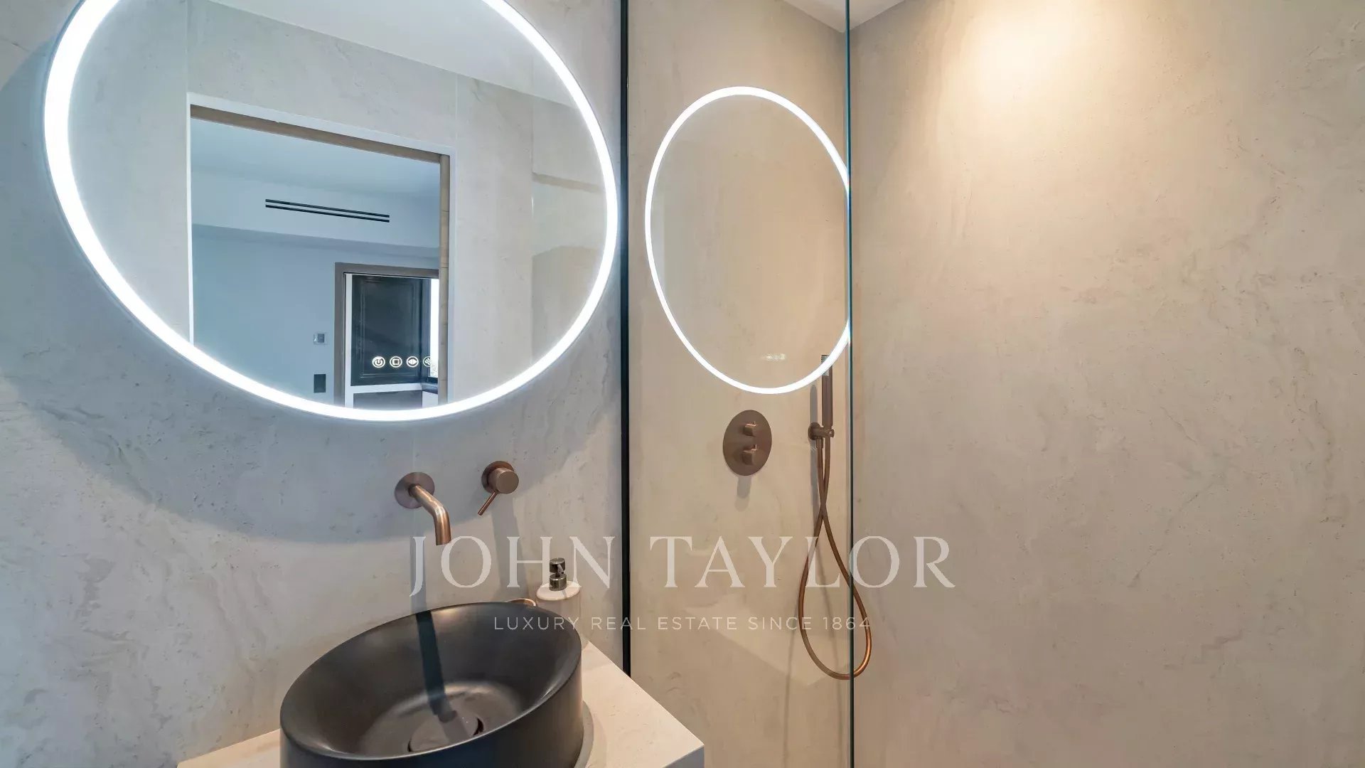 Located on a high floor, it overlooks the residence's magnificent Mediterranean park and enjoys maximum sunlight.