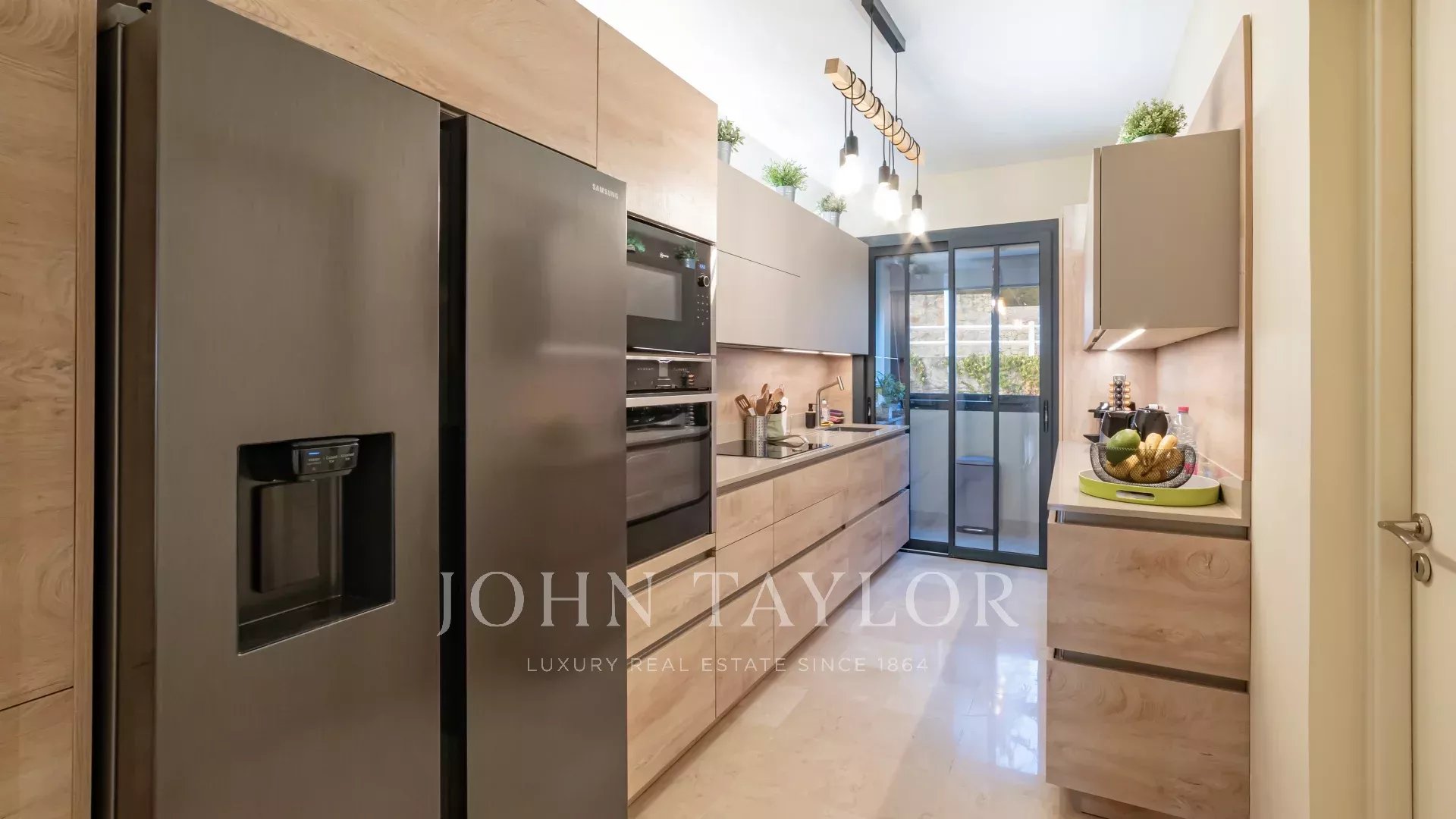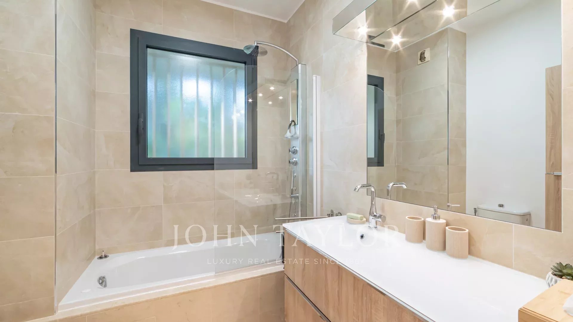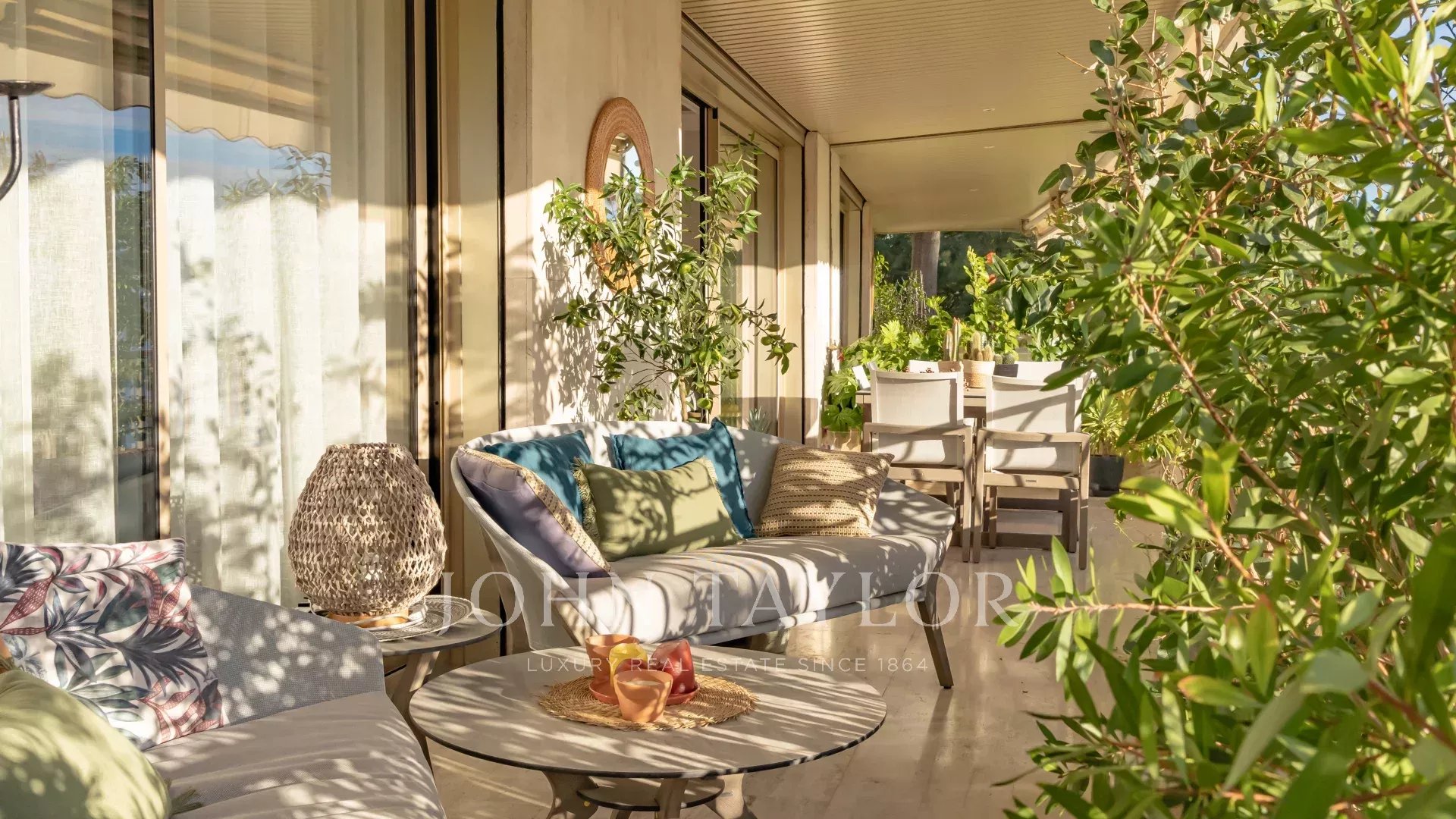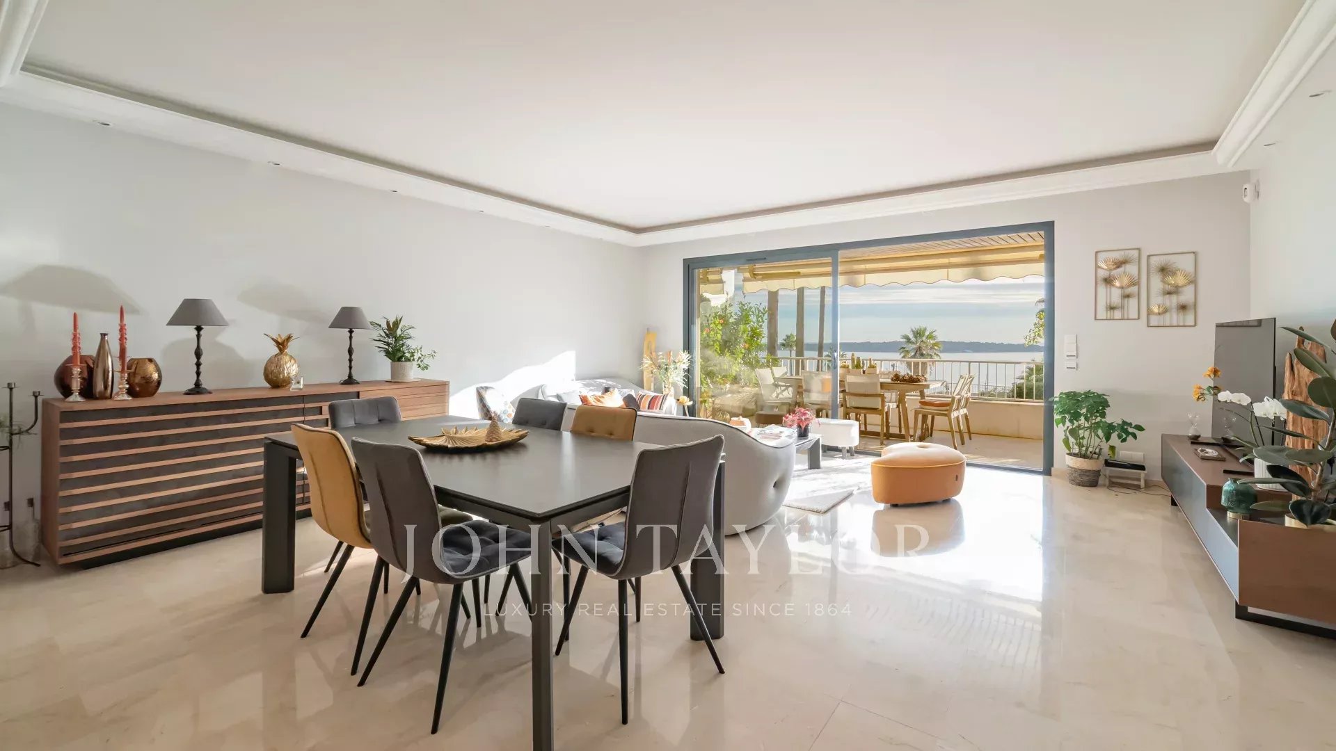 The south-facing apartment comprises an entrance hall, a beautiful reception area opening onto the sea-view terrace, an independent fitted kitchen, a master bedroom with en suite bathroom and dressing room opening onto the sea-view terrace, and two additional bedrooms with en suite shower rooms.