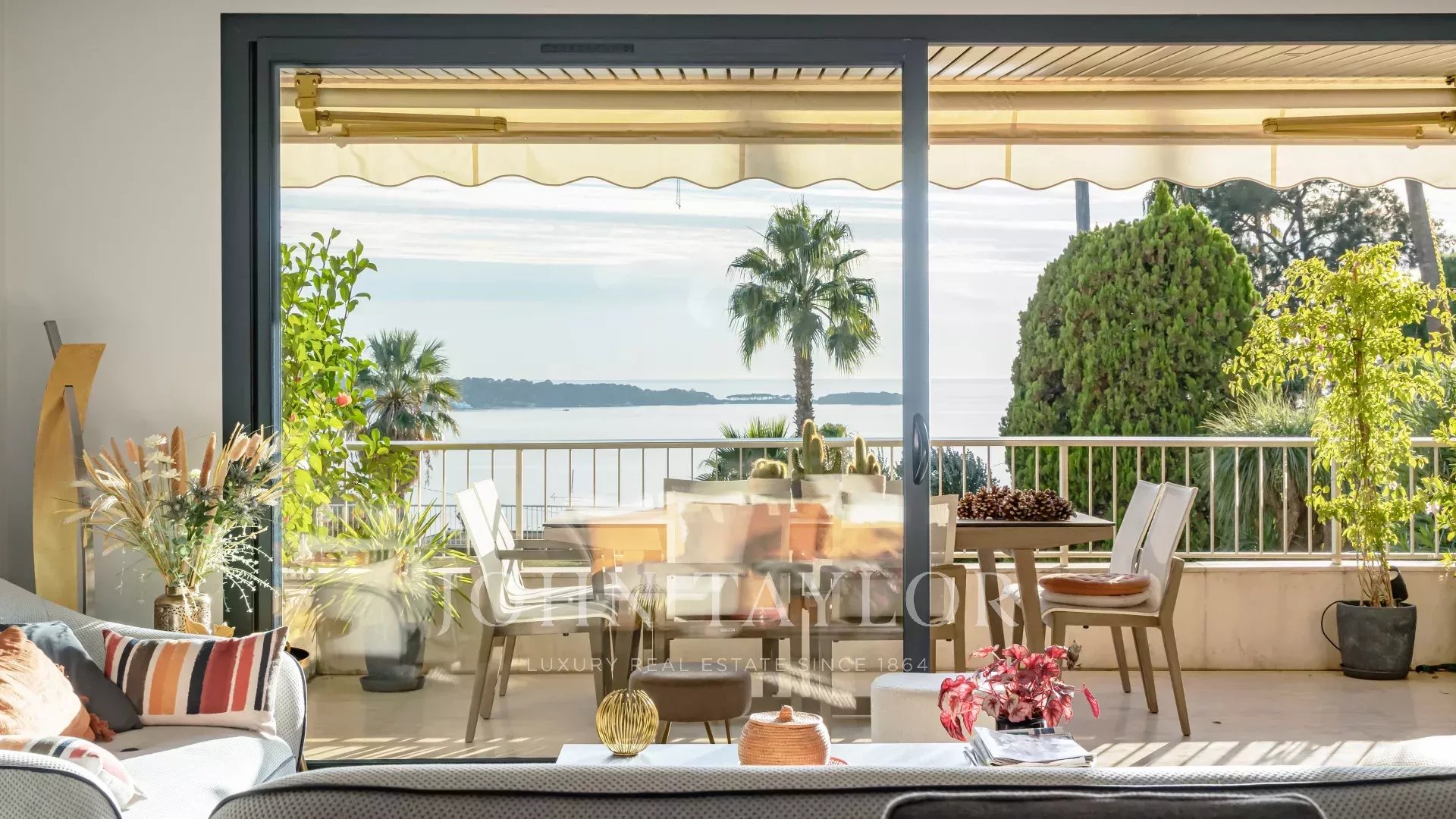 In a luxury residence, attractive 127 m² corner apartment with large terrace and unique panoramic view of the sea and Lérins islands.