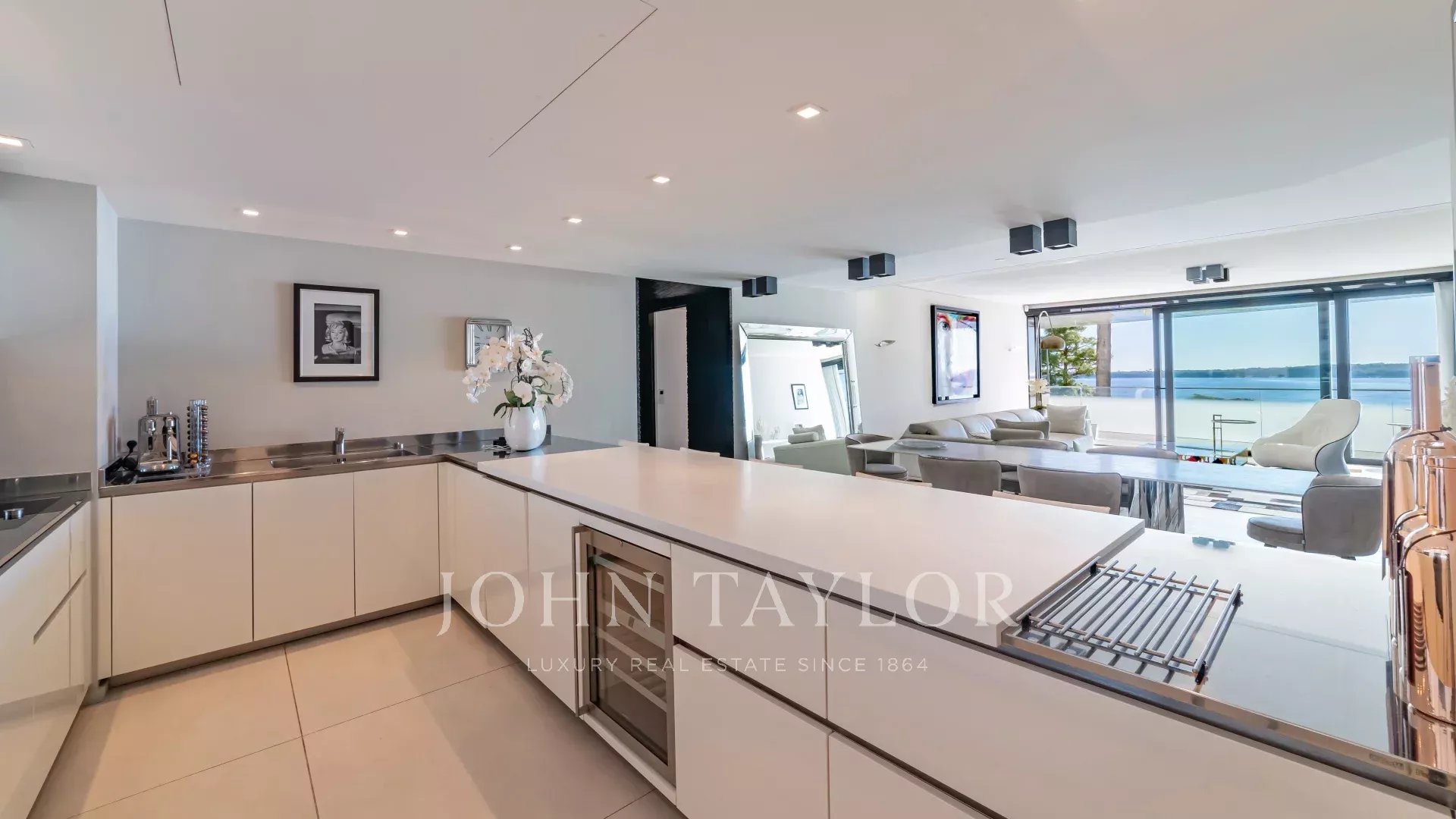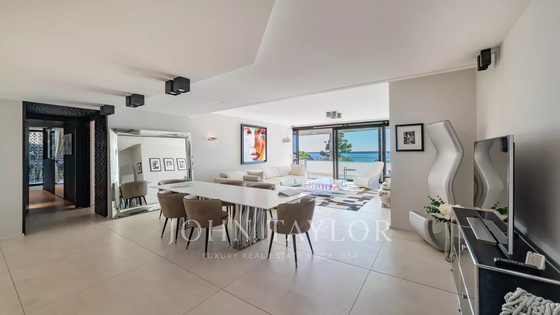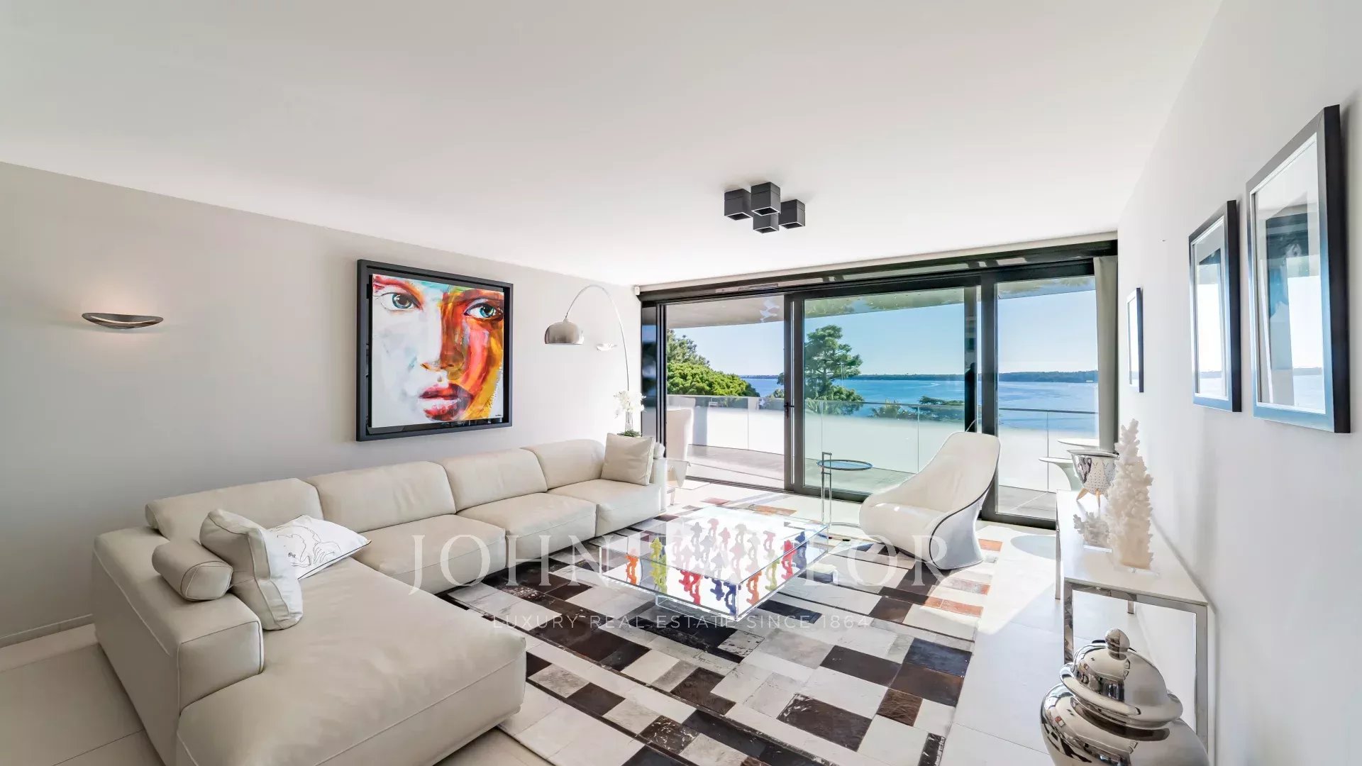 Located in a recent luxury residence, this sumptuous 4-room apartment boasts a vast terrace and an exceptional panoramic view of the sea and the Lérins islands.