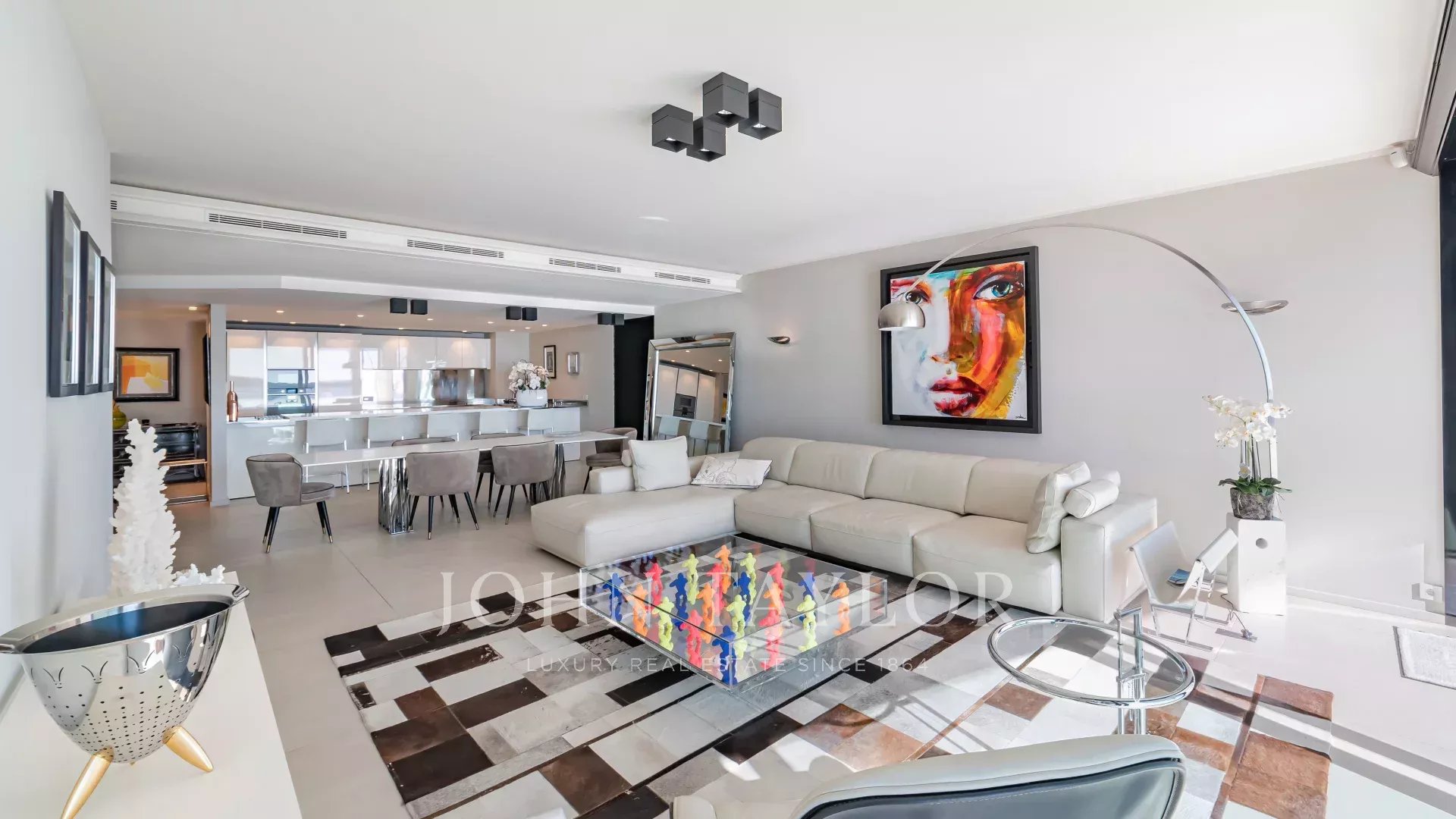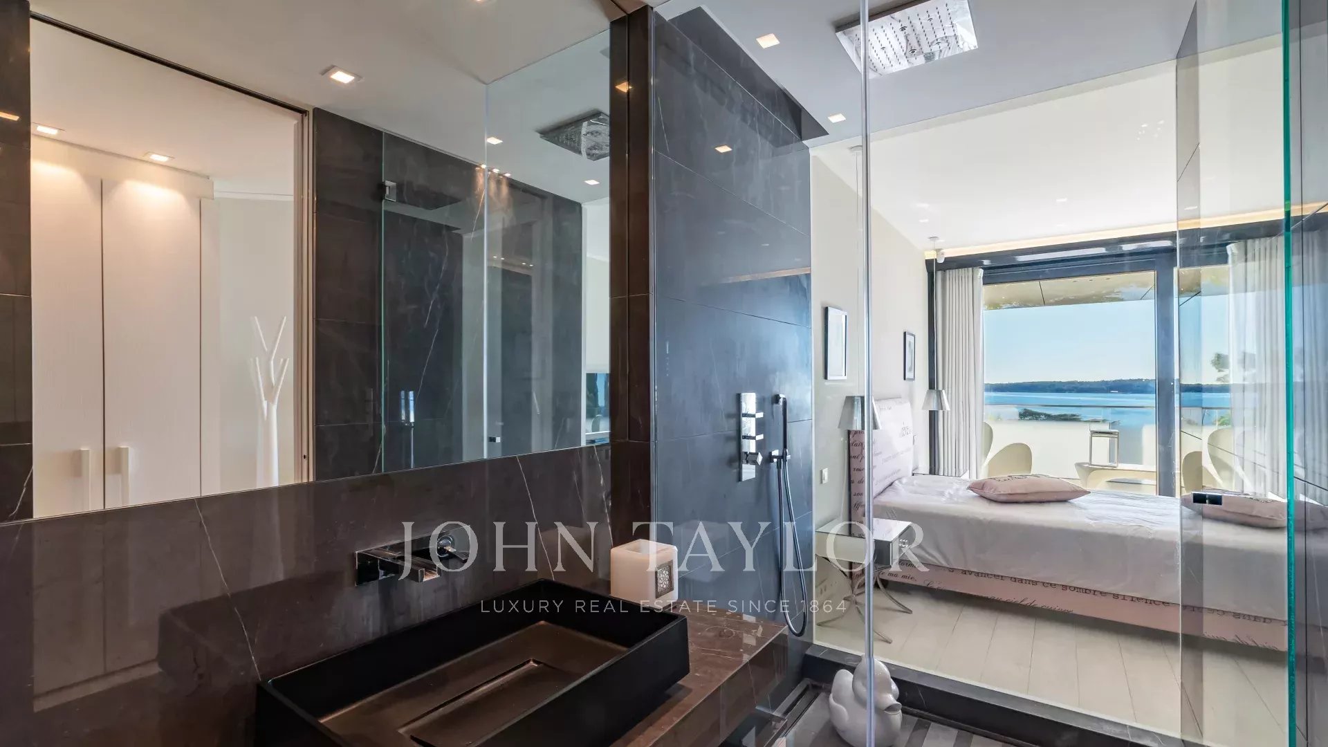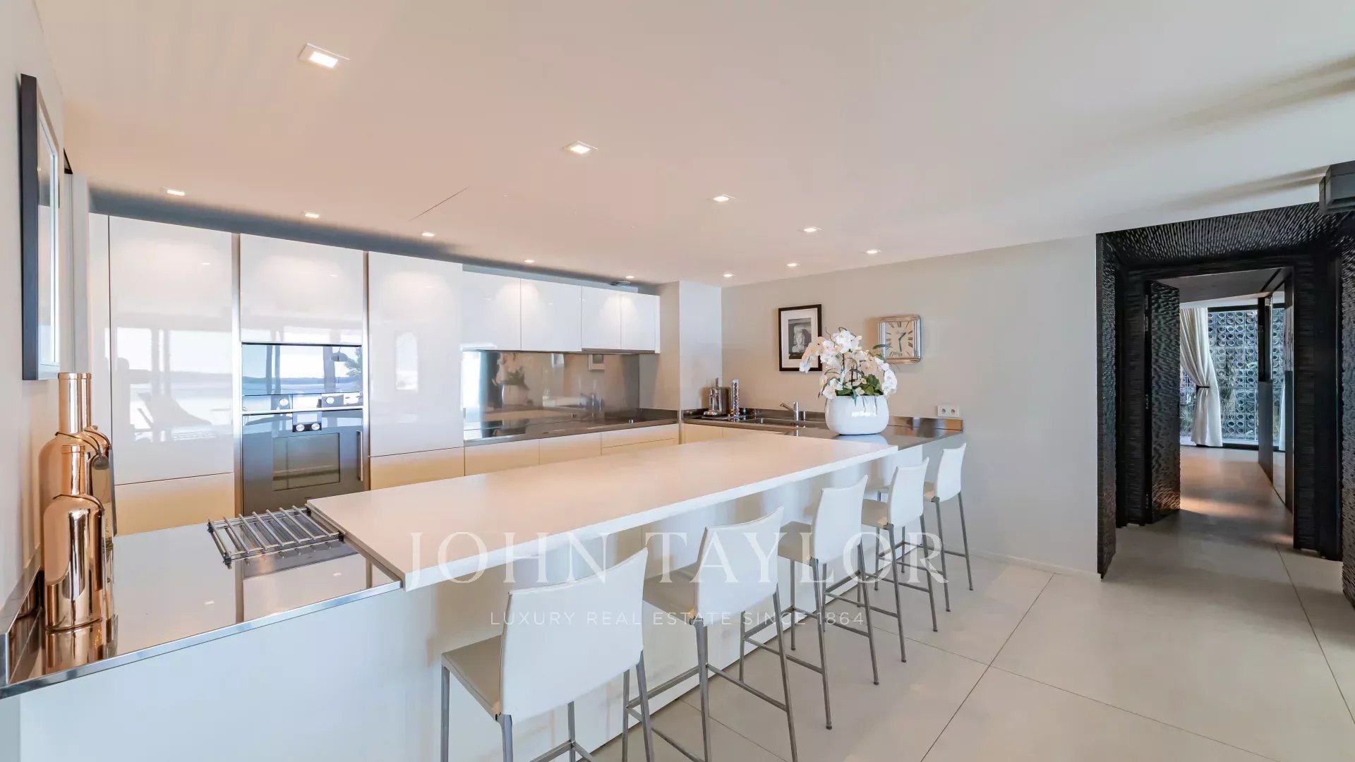 Located in a recent luxury residence, this sumptuous 4-room apartment boasts a vast terrace and an exceptional panoramic view of the sea and the Lérins islands.
