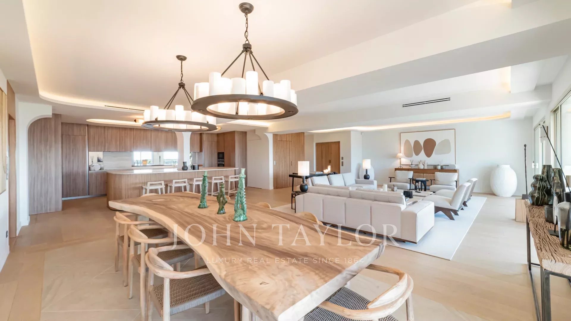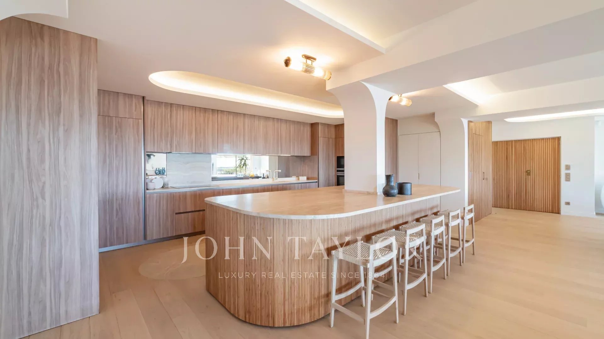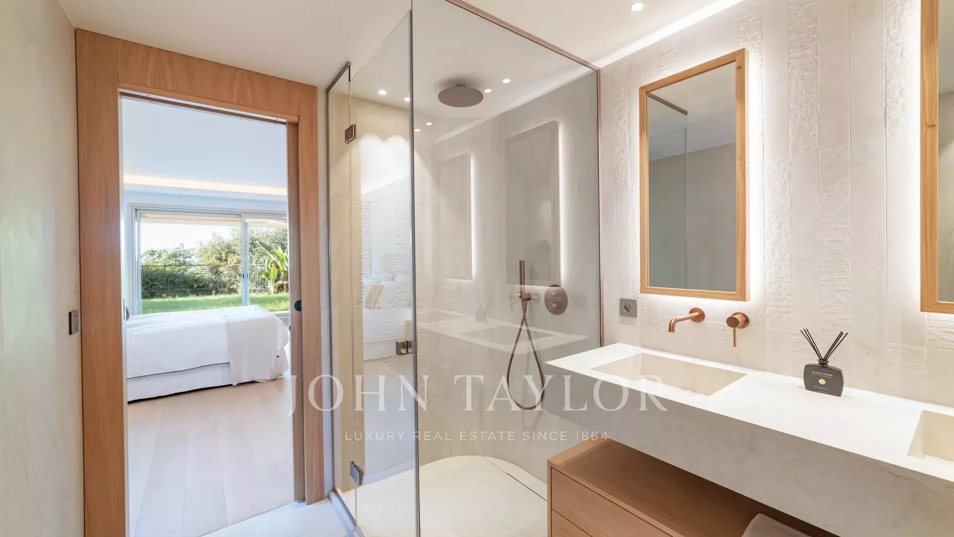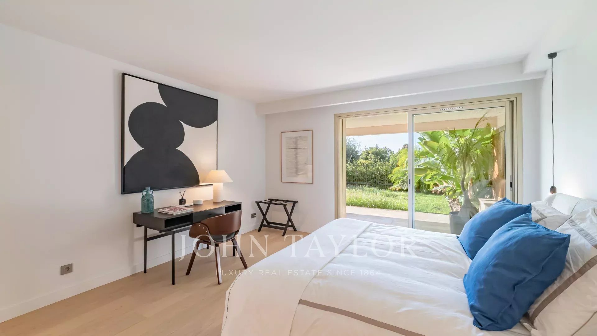 It boasts generous interiors that open out onto large terraces on each level, 4 en suite bedrooms and a private garden overlooking the sea, the Lérins islands and Palm Beach.