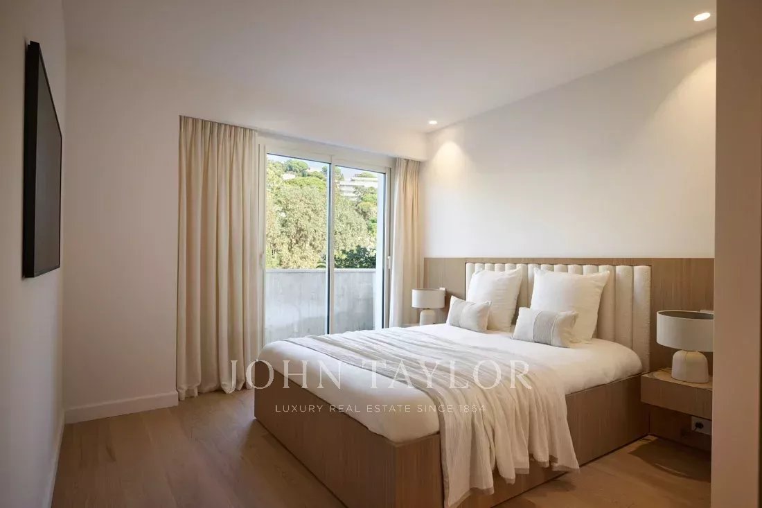 In a luxury residence with park, swimming pool, tennis court, guard 7 days a week and 24 hour surveillance, this beautiful apartment fully renovated with quality materials offers a panoramic view of the sea, the bay of Cannes and the Esterel.
