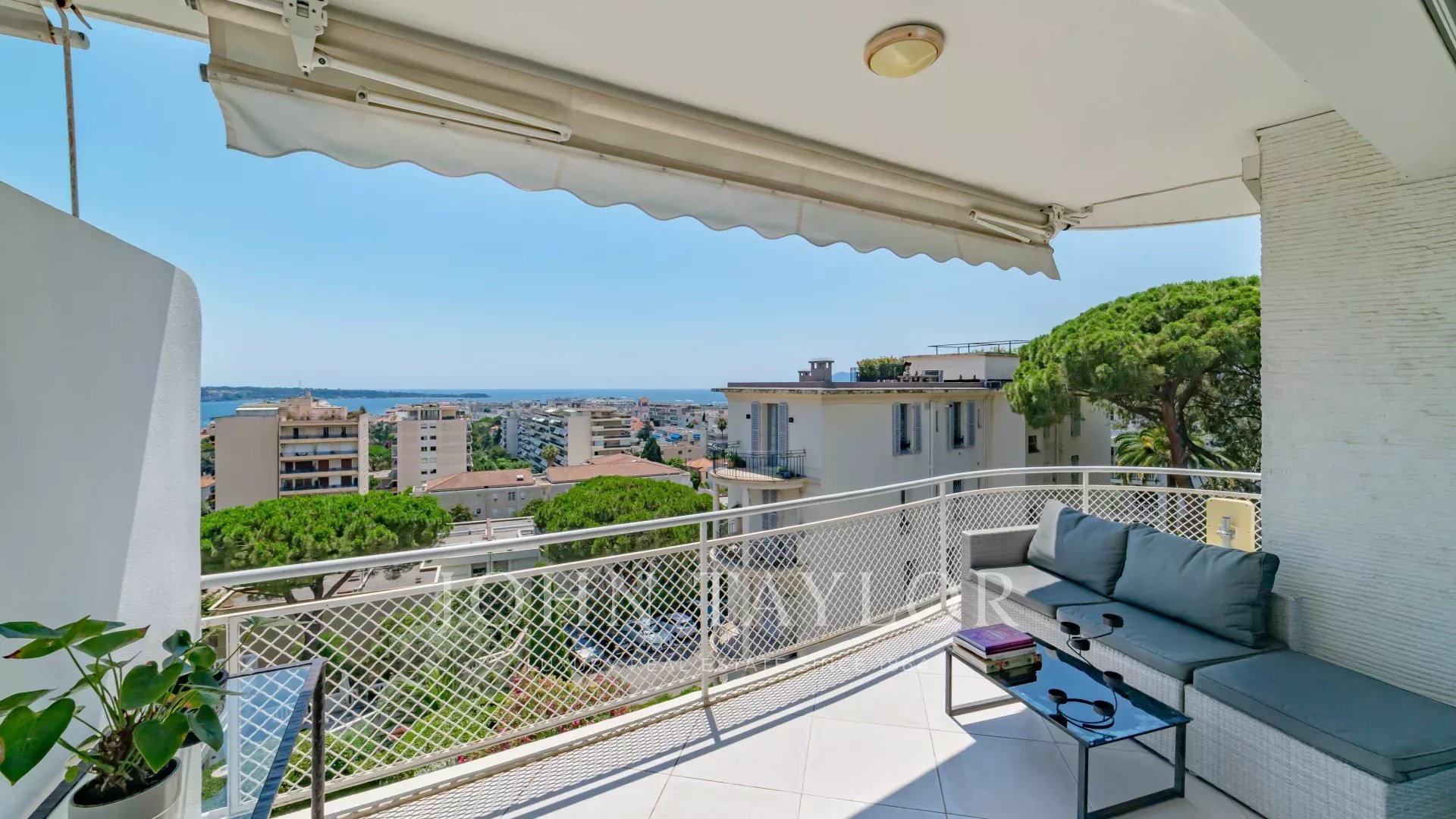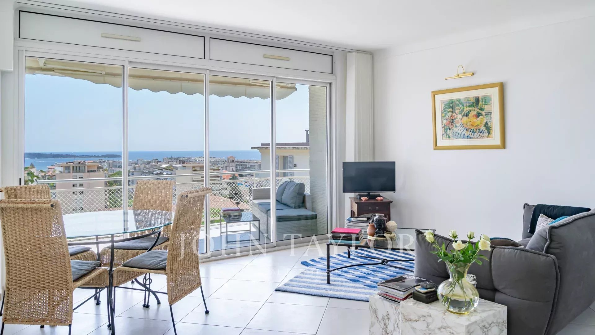 Ideally located within walking distance of all amenities, this beautiful top-floor 3-room apartment offers panoramic views over the sea and the Lérins islands to the Estérel.