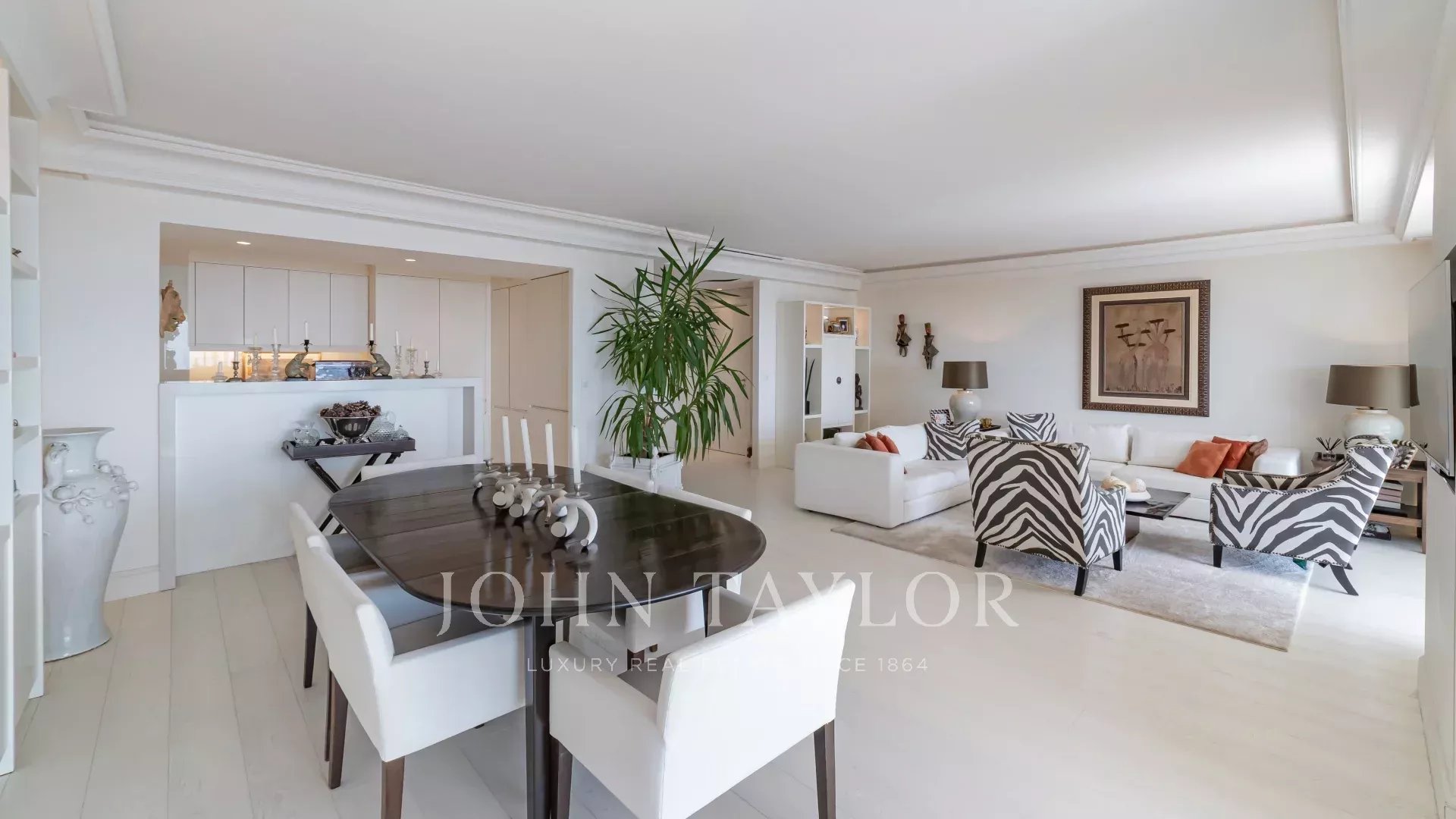 In one of Cannes' finest residences, on a high floor, this magnificent apartment boasts an enchanting sea view and offers 110 m² of living space (107.79 m² loi Carrez). It features top-of-the-range fittings and refined decoration. Comprising: entrance hall, double living room with discreet open-plan kitchen, master bedroom with en suite bathroom and shower, second bedroom with en suite shower room, toilet, laundry room. Cellar and garage in basement. Sumptuous enclosed grounds with swimming pool and tennis court. Enclosed communal parking. 24-hour janitor.
