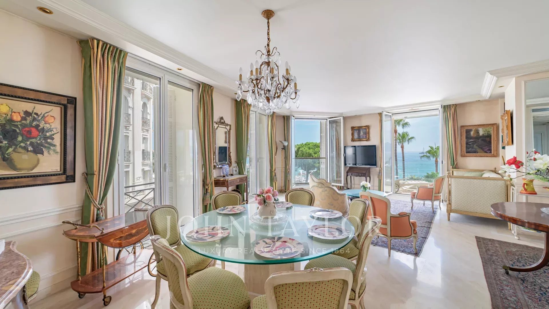 Just a stone's throw from the prestigious Carlton palace, in a luxury residence bordered by green space and directly linked to the Croisette, this sumptuous corner apartment boasts breathtaking views of the Mediterranean Sea and the Estérel massif.