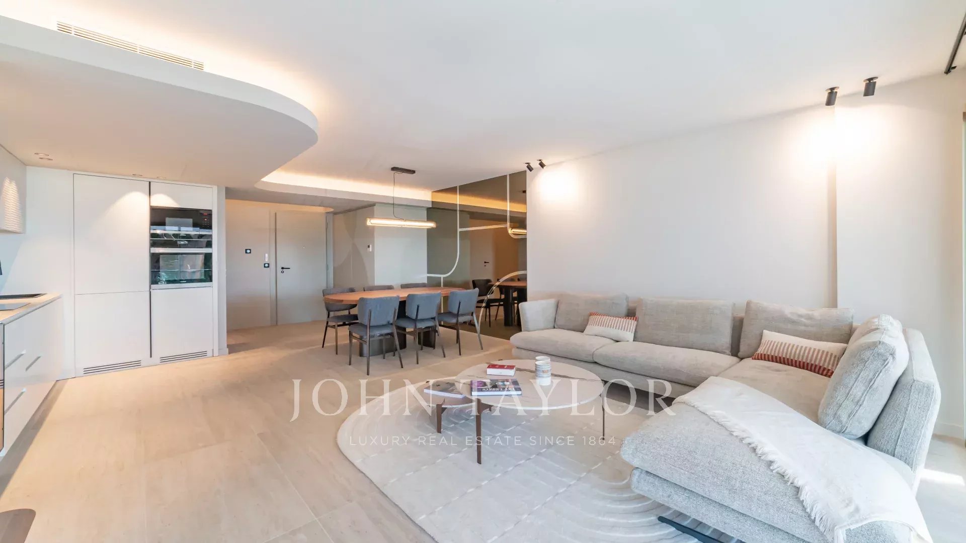 In a luxury residence on the Pointe Croisette, this attractive 4-room apartment offers a beautiful view of Port Canto and the sea.