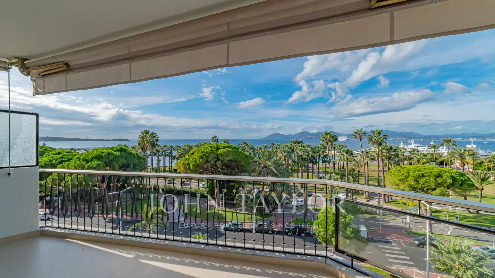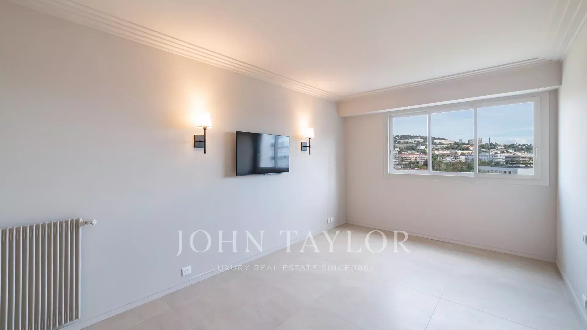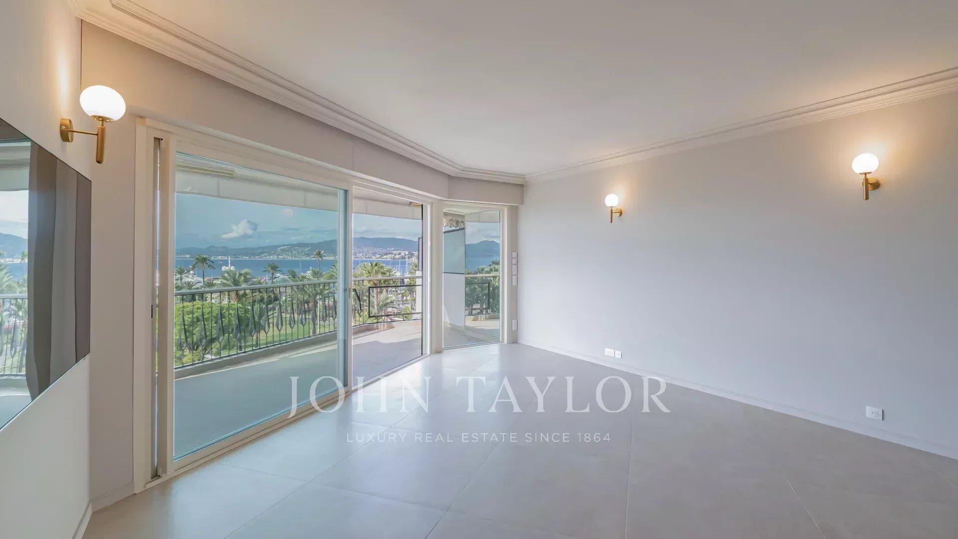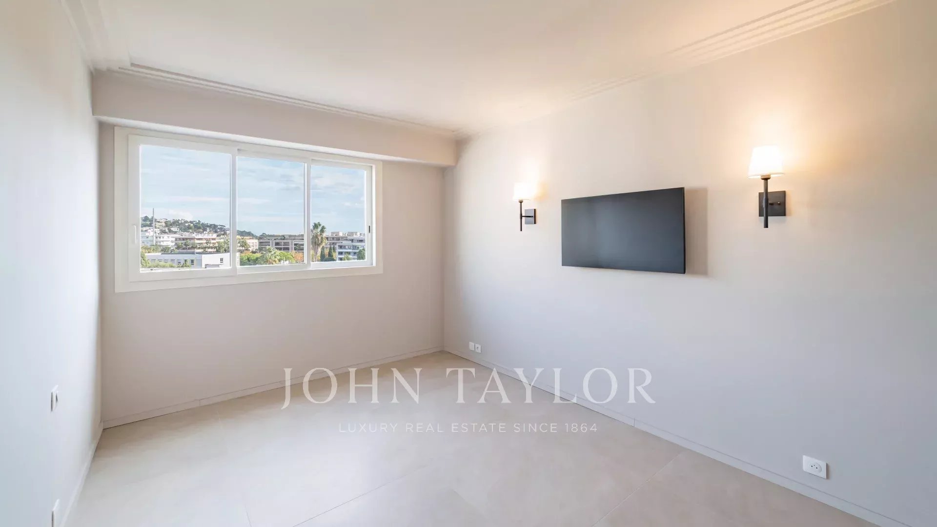 In a luxury residence on the Croisette, this fully renovated apartment boasts stunning sea views all the way to the Esterel mountains.