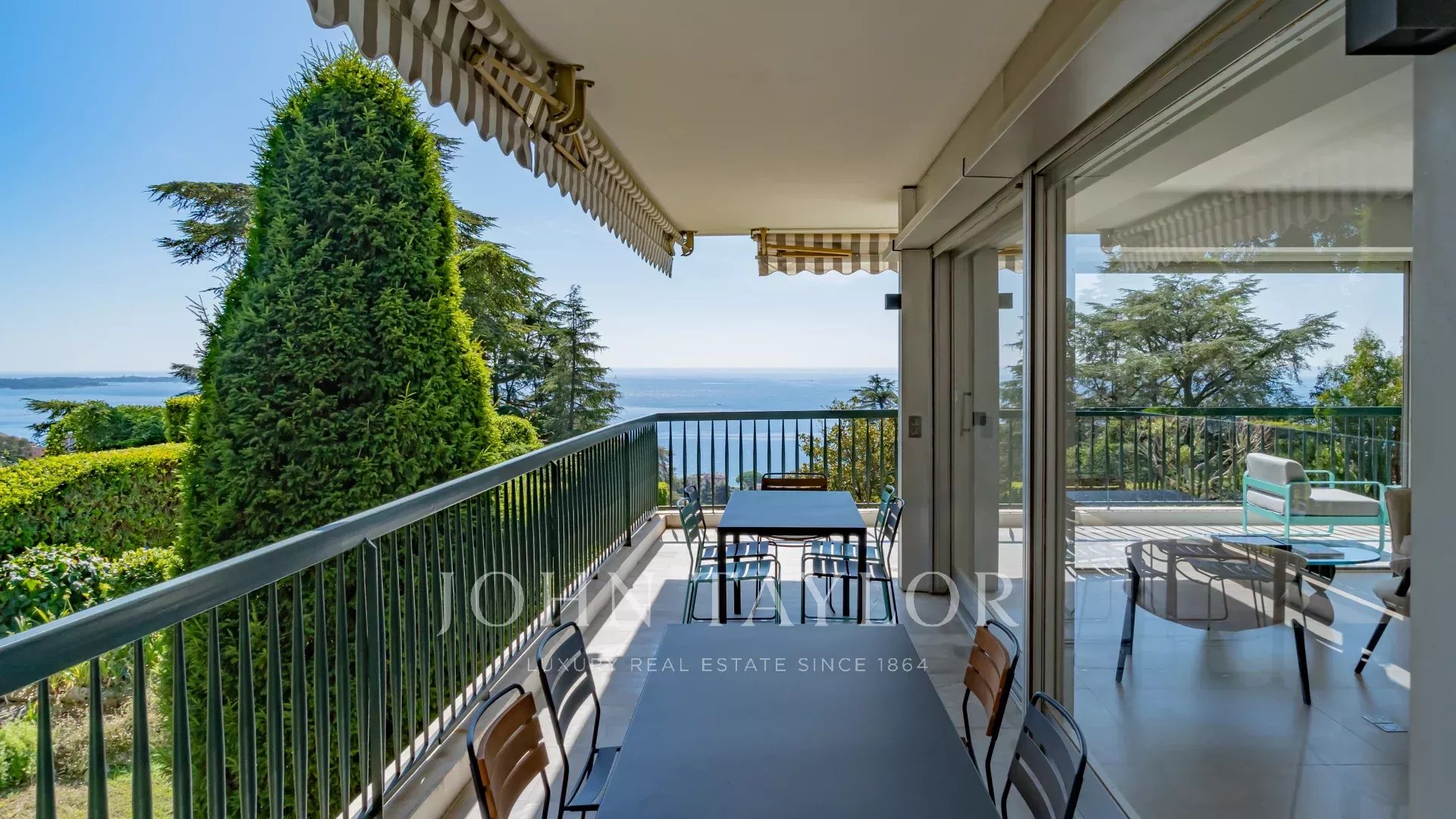 Exclusive - Located in one of the most prestigious residences in the area, this spacious corner apartment offers 148.72 m² of living space (Carrez law). Extended by a 49 m² south-facing terrace, it offers unobstructed views of the sea and the residence's grounds.
