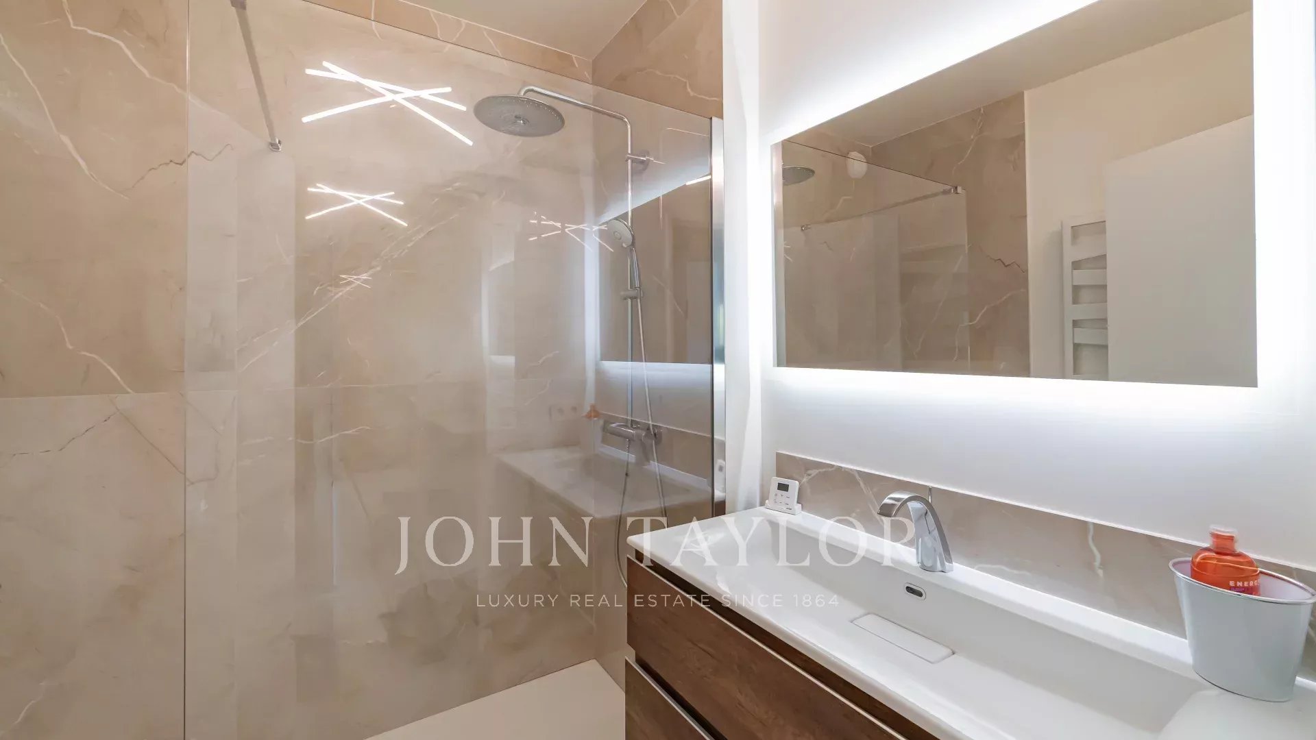 This dual-aspect property boasts two terraces: a 14sq.m south-facing terrace off the living room, and an 11sq.m terrace on the bedroom side.