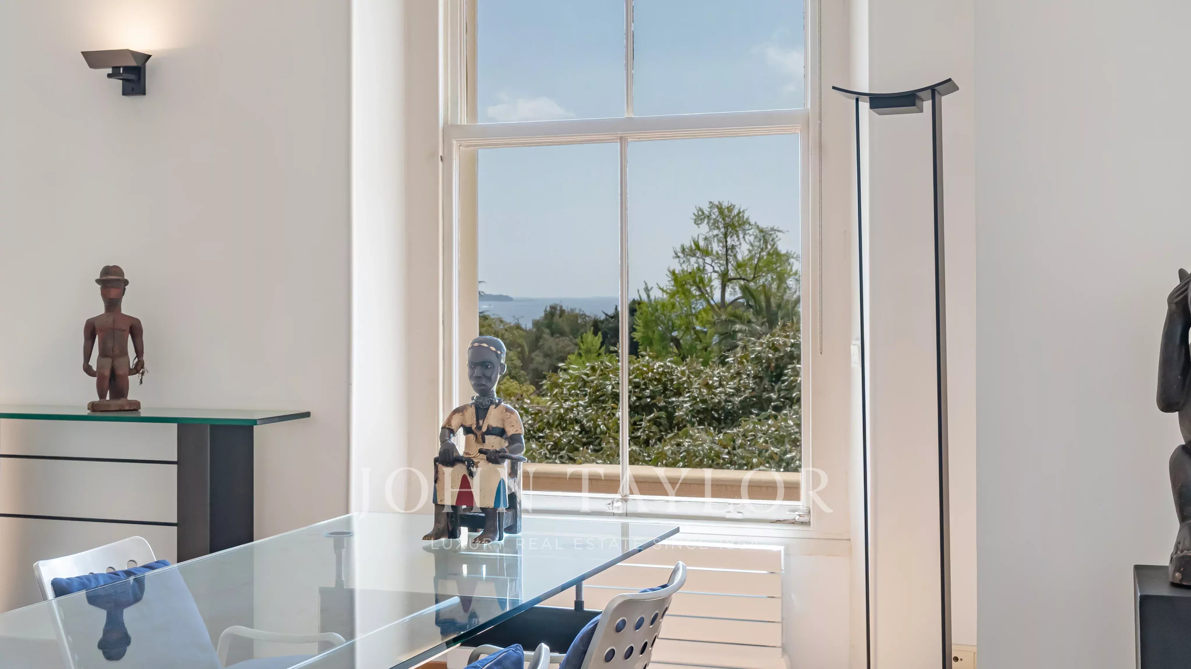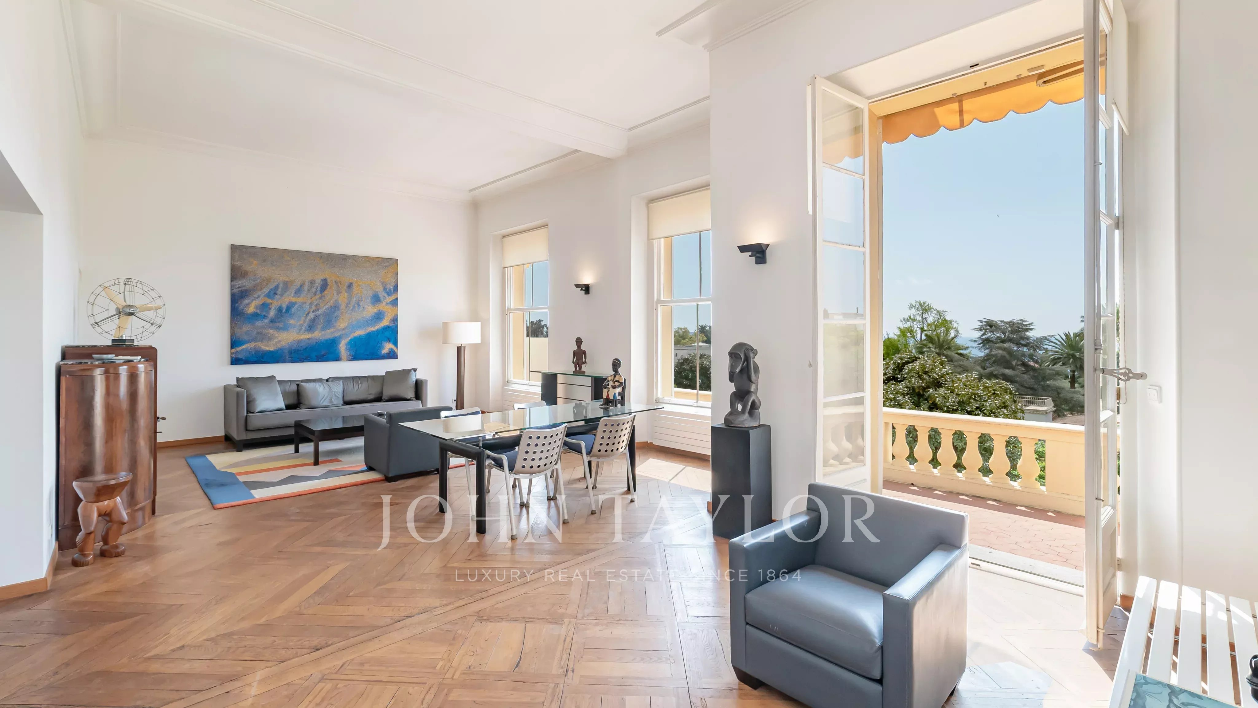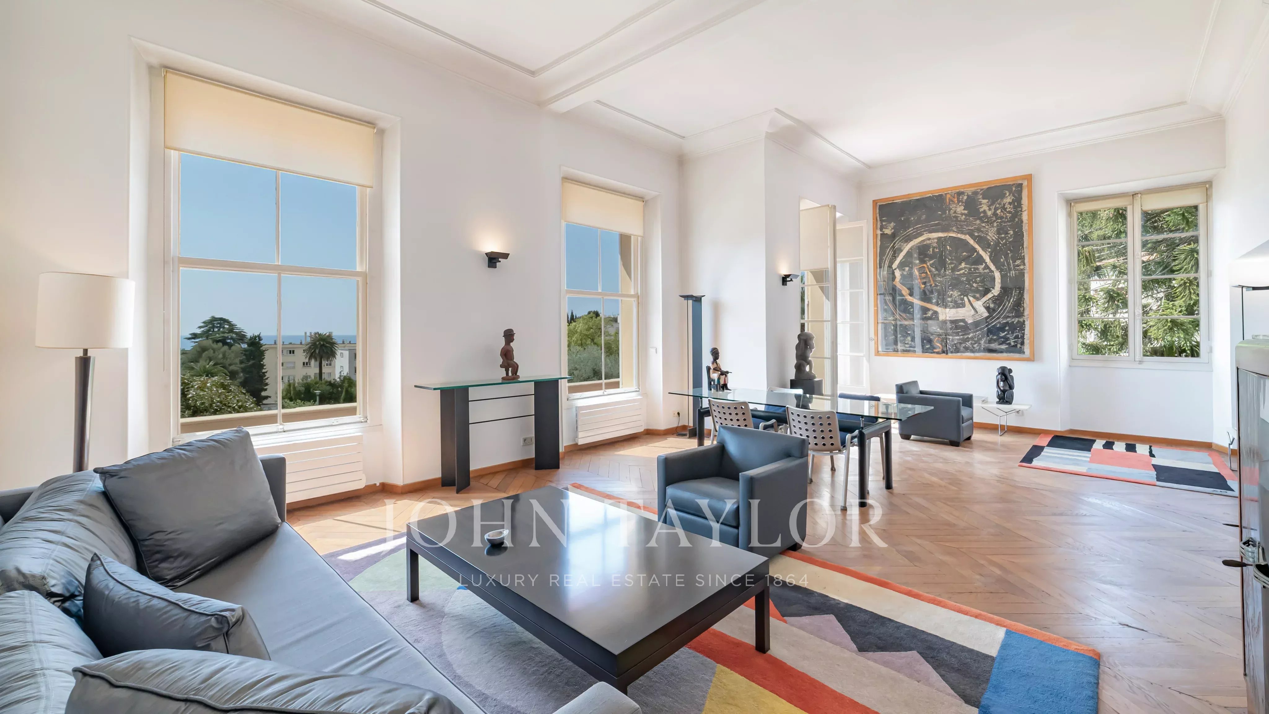 Located within a historic residence, considered one of the first holiday villas in Cannes, this two-bedroom apartment of 127 sqm enjoys a quiet environment, a south-facing exposure, and a prime location just a 5-minute walk from the beaches.