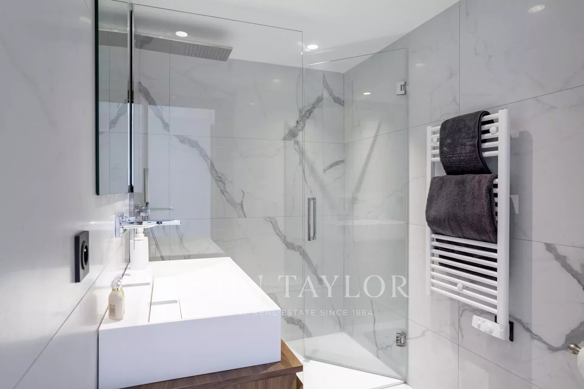 In a prestigious residence in Le Cannet Résidentiel, this top-floor apartment offers an ideal, peaceful setting, with a splendid panoramic view over the Bay of Cannes from the Lérins islands to the Estérel massif.