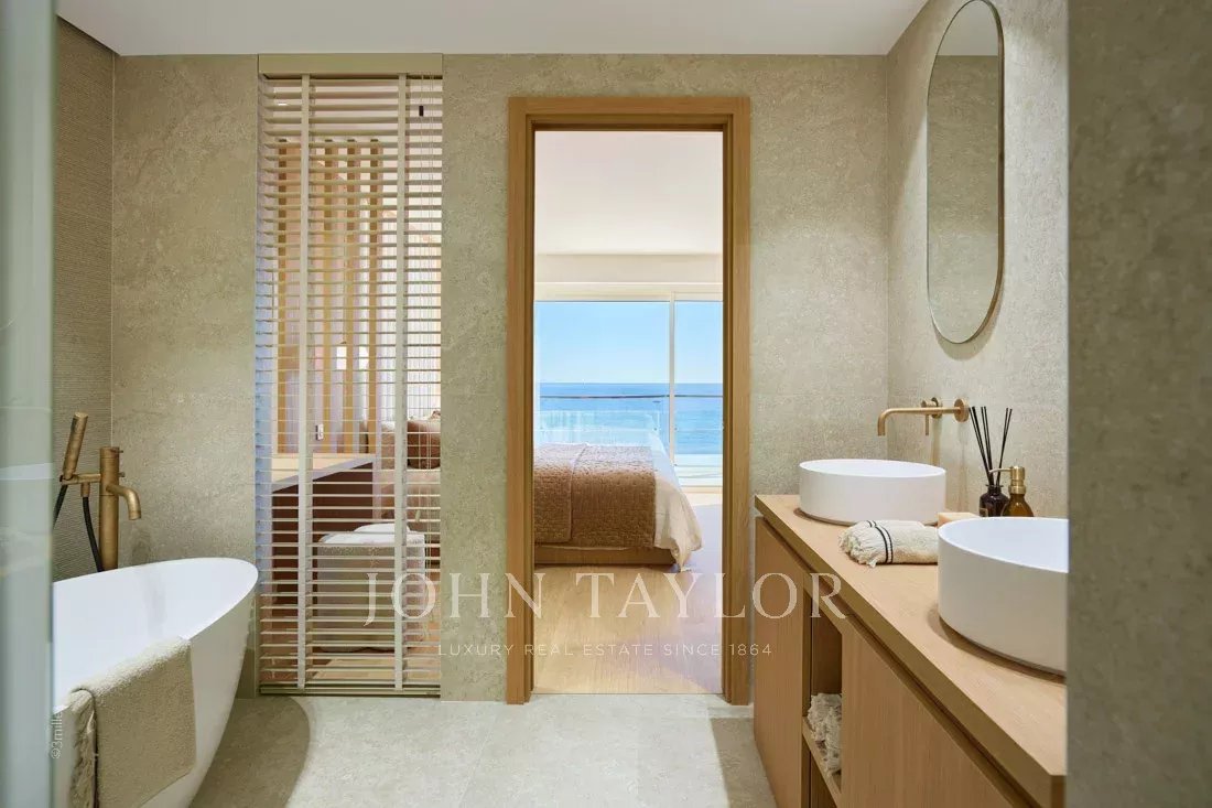 Entirely renovated with top-quality materials and fittings, the apartment features a bright living room with open-plan kitchen opening onto the sea-view terrace, master bedroom with en suite bathroom also opening onto the sea-view terrace, two bedrooms, two shower rooms,