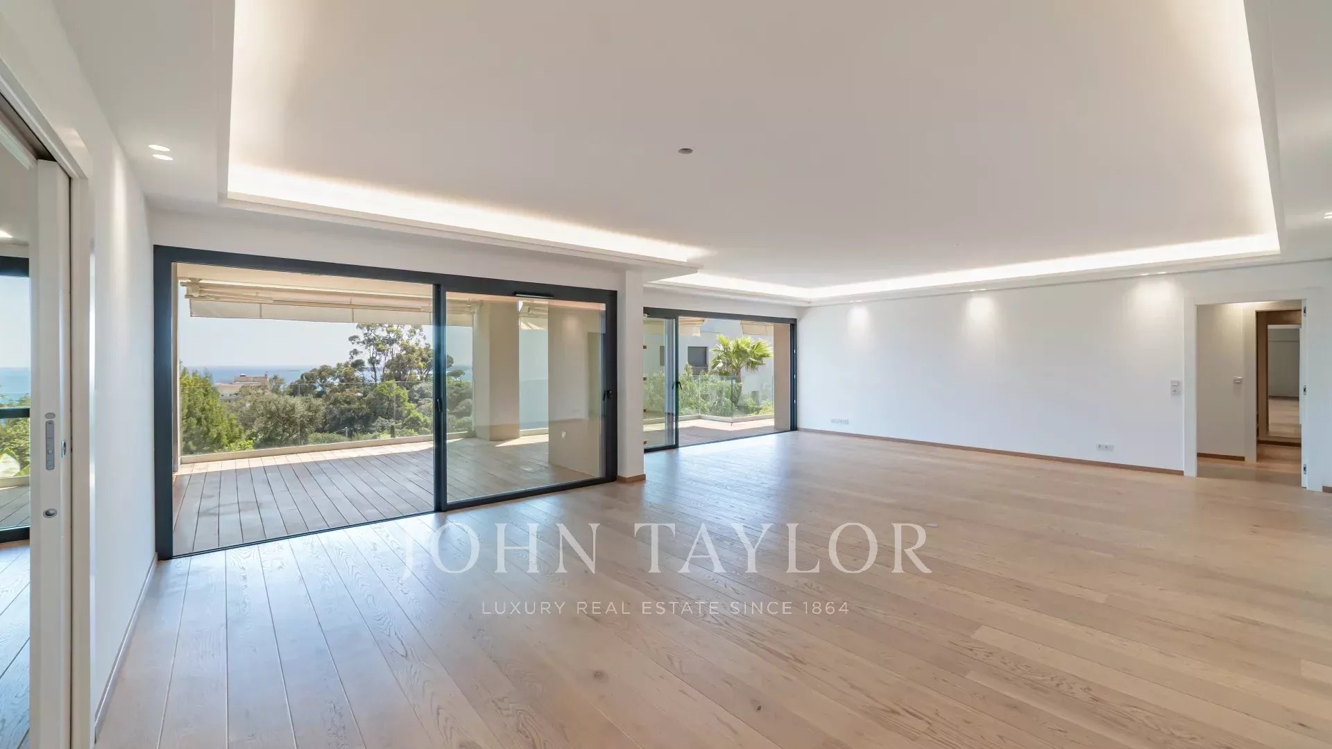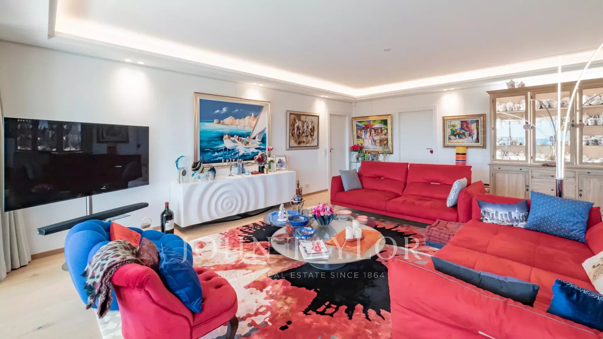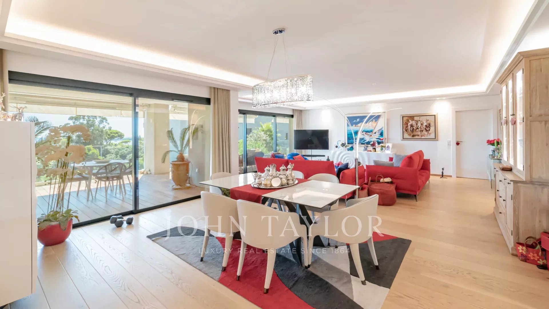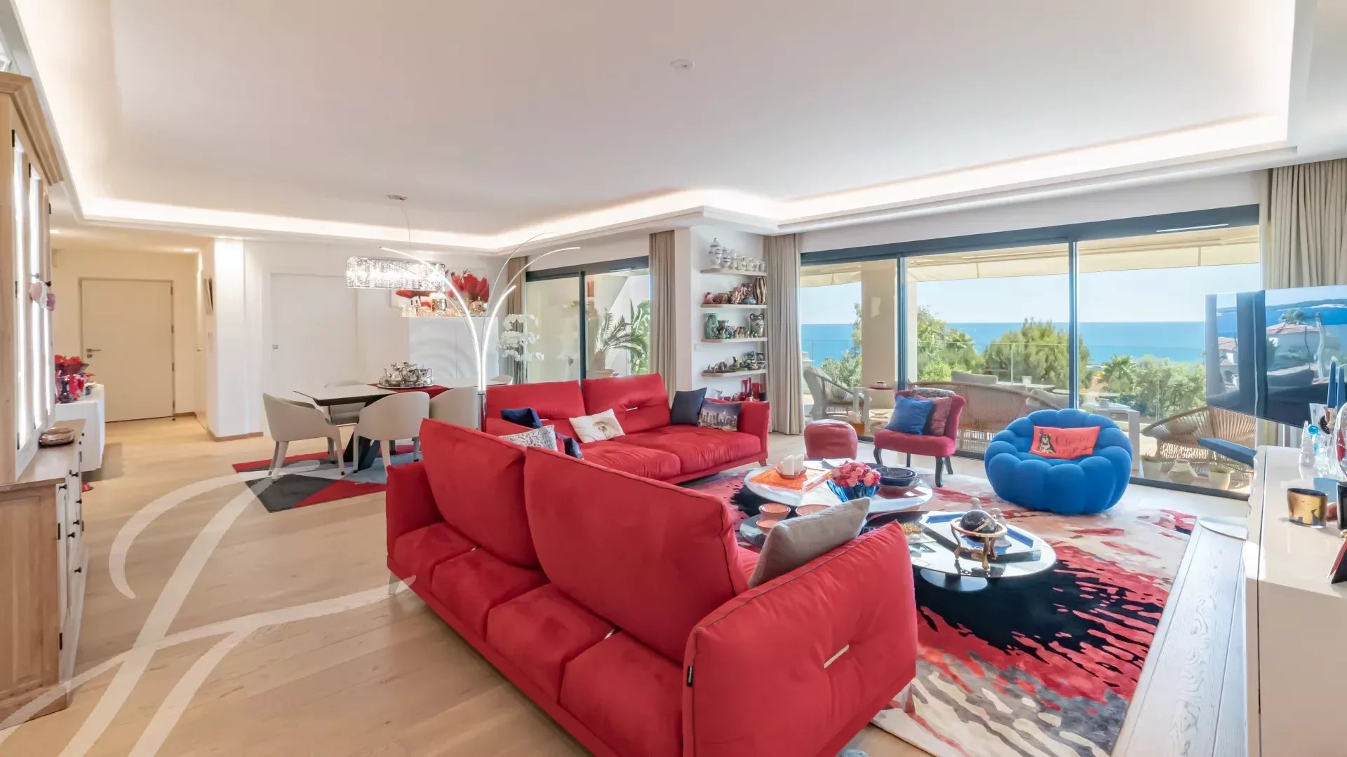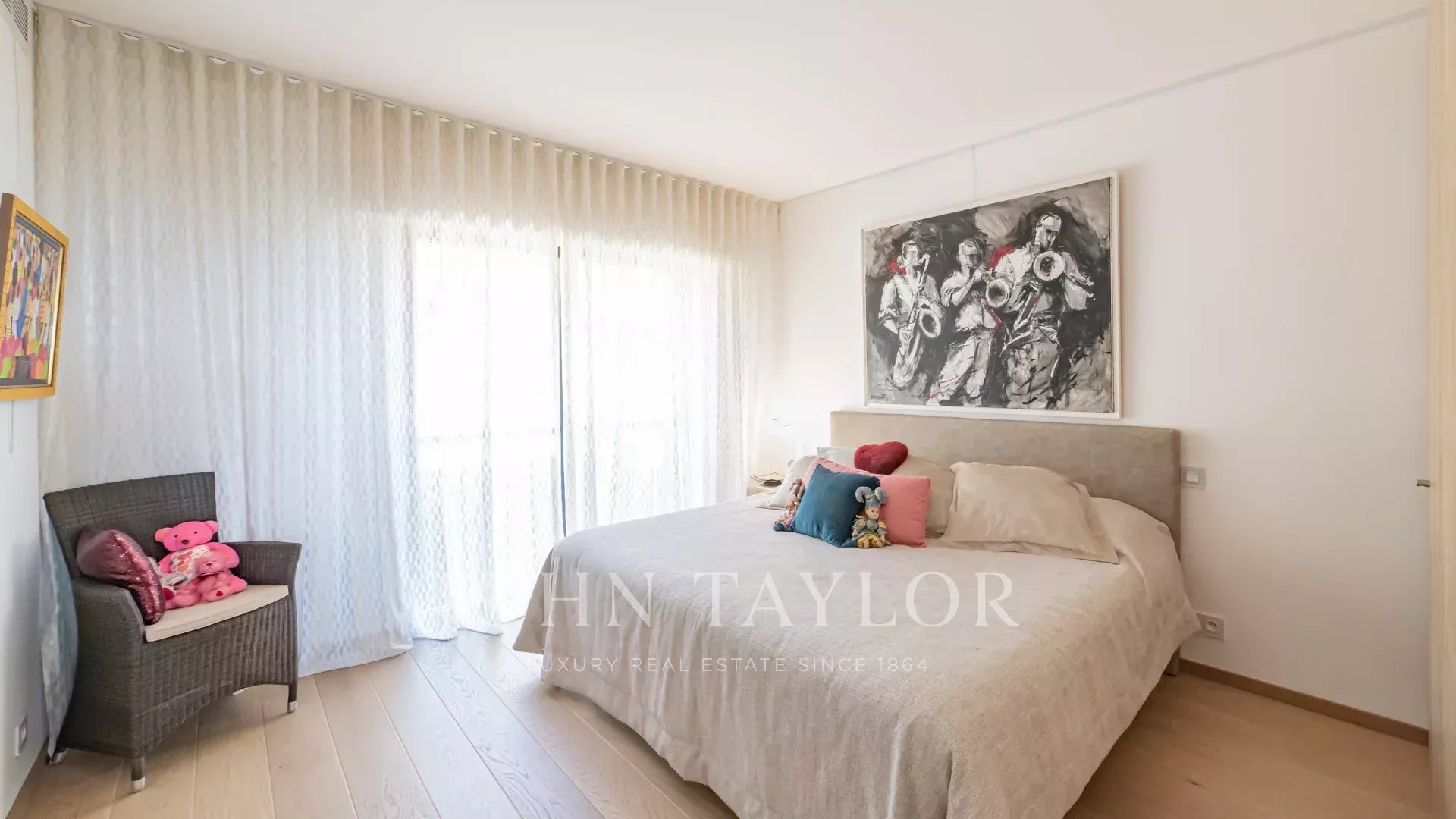 In a recent residence with swimming pool, gym and 24/7 janitor, this beautiful apartment in perfect condition offers a large terrace and a beautiful view of the sea and Cap d'Antibes.