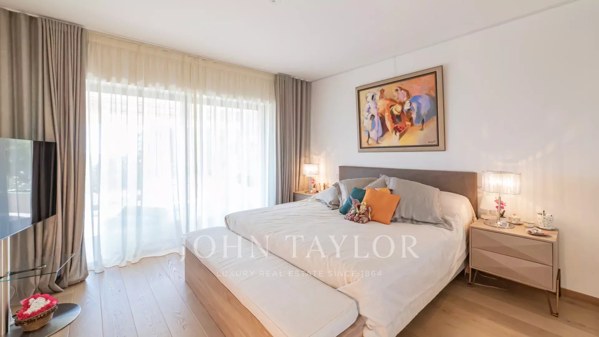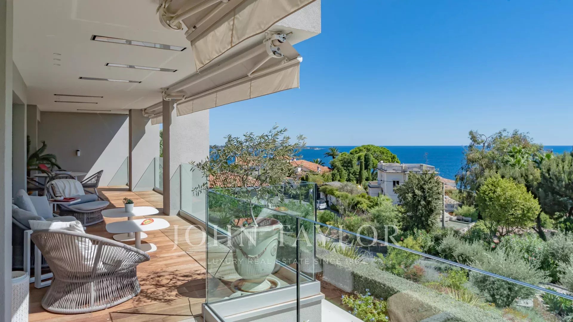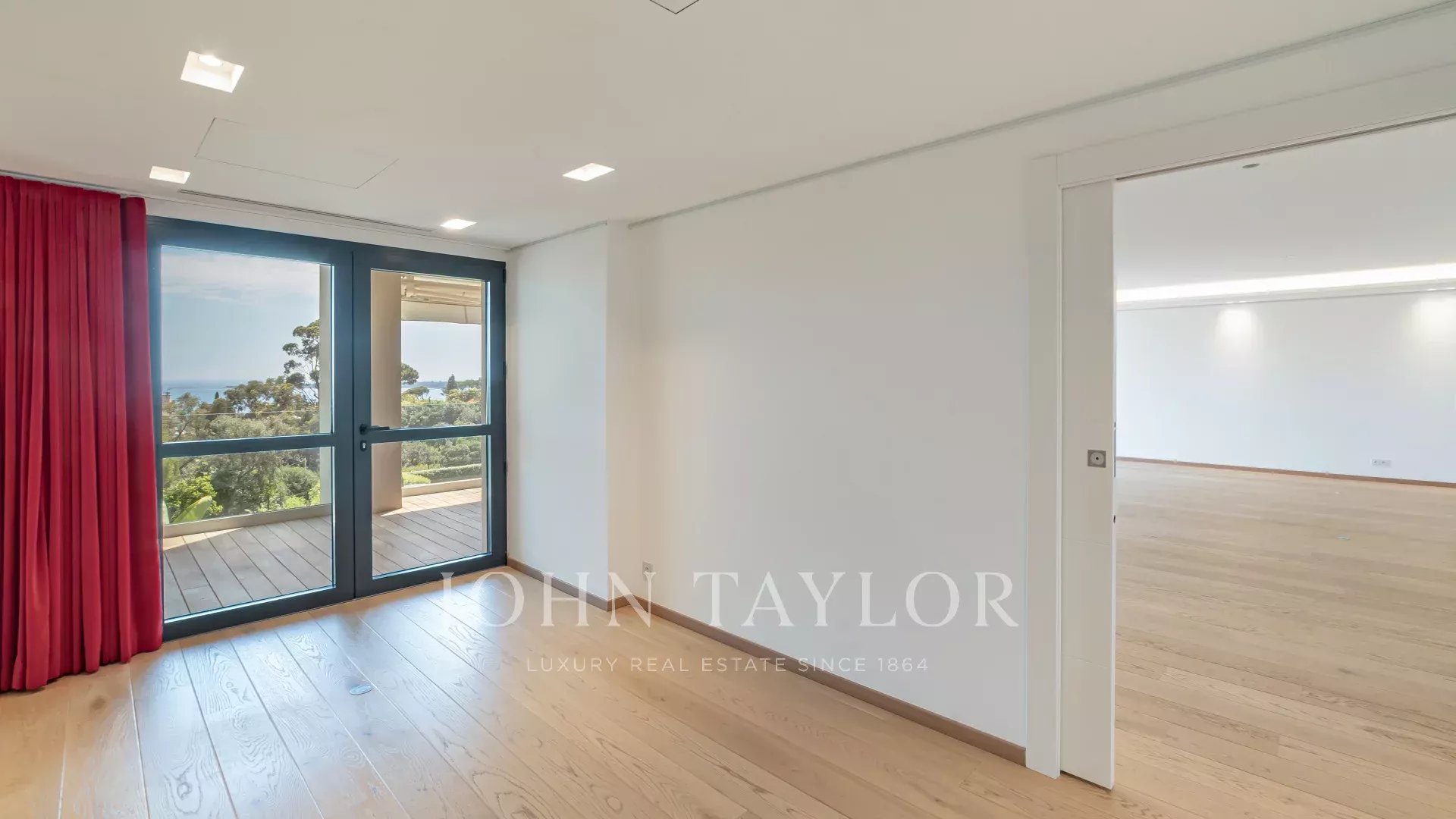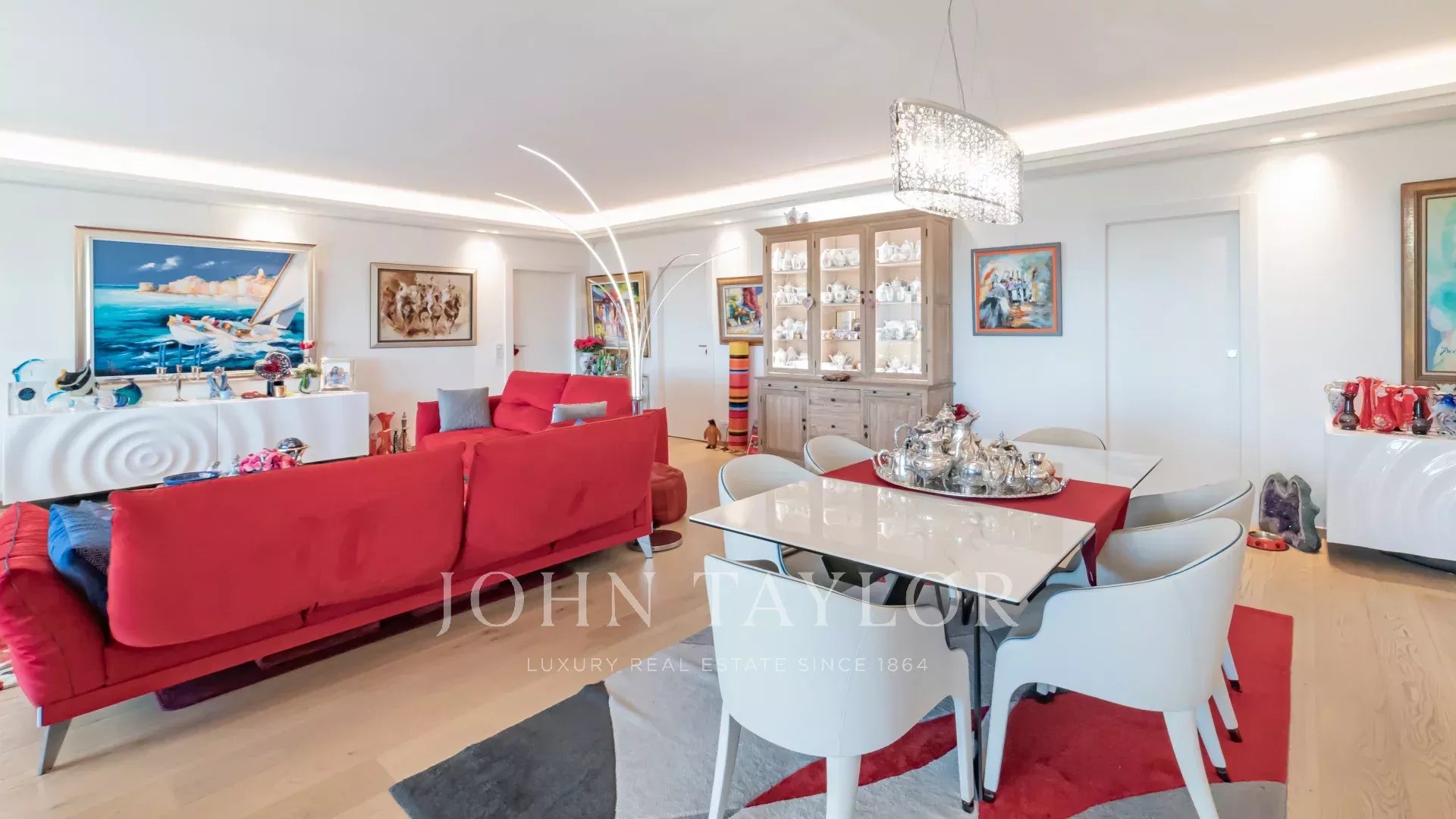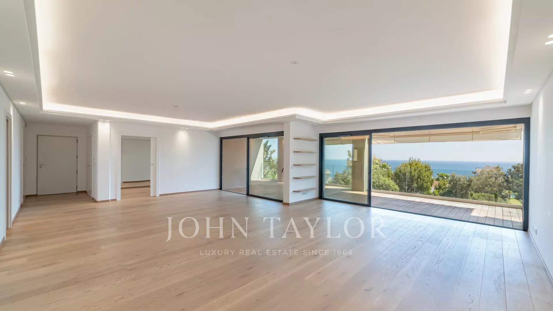 In a recent residence with swimming pool, gym and 24/7 janitor, this beautiful apartment in perfect condition offers a large terrace and a beautiful view of the sea and Cap d'Antibes.