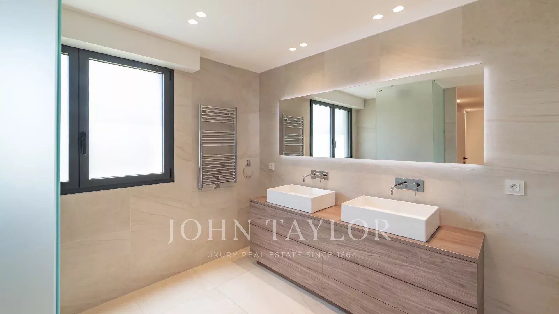 With a surface area of approx. 170 m², it comprises an entrance hall, guest toilet, office that can be converted into a bedroom, spacious living room, fully-equipped independent kitchen with laundry room, and two en suite bedrooms with dressing rooms and shower rooms.