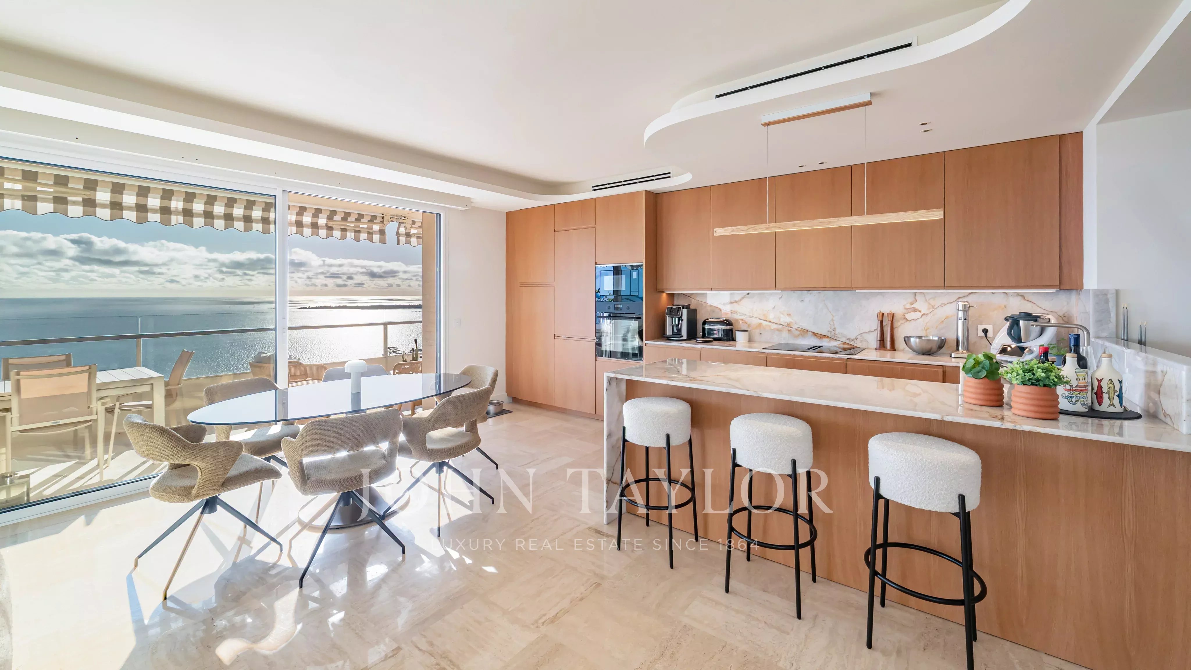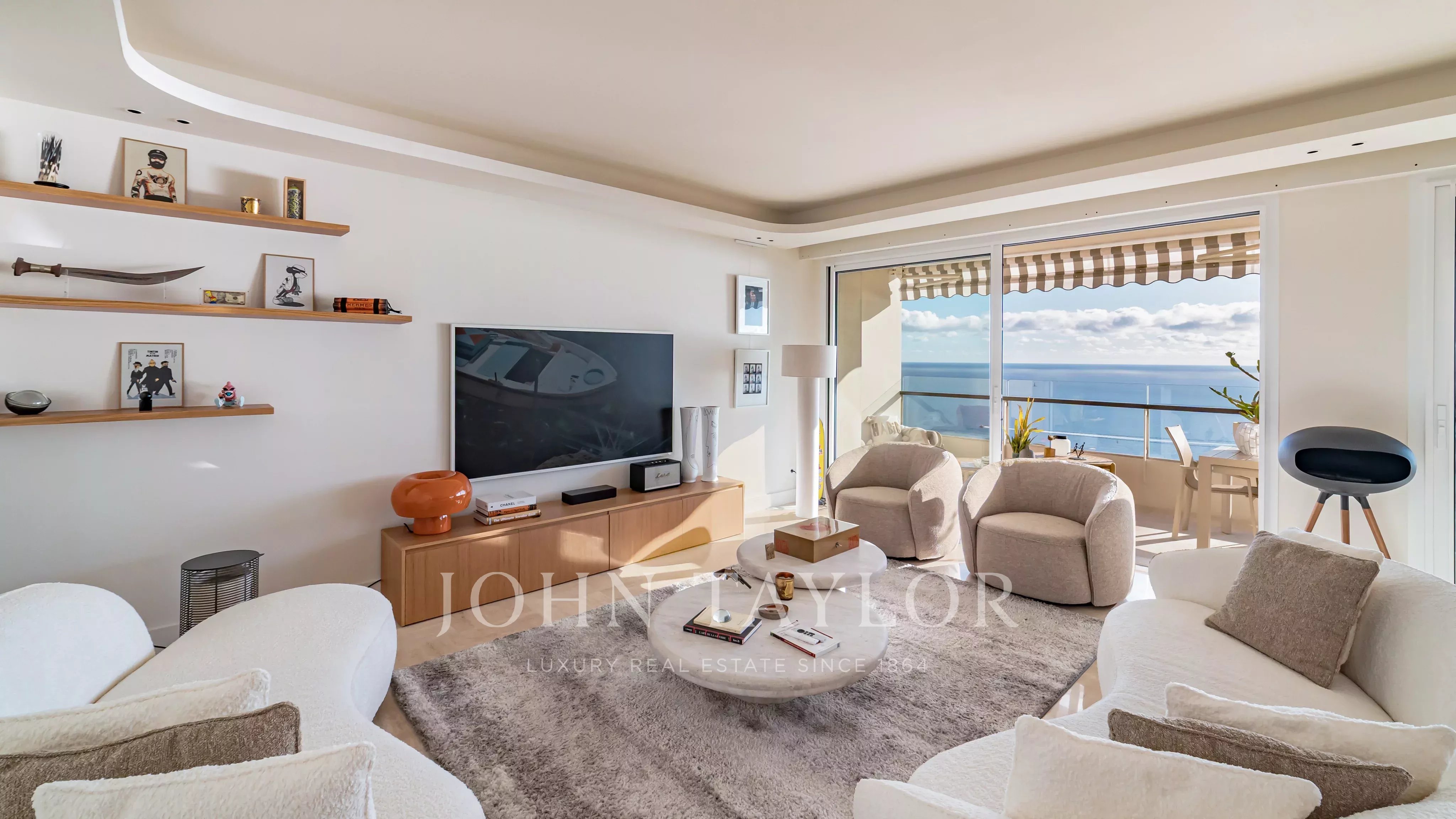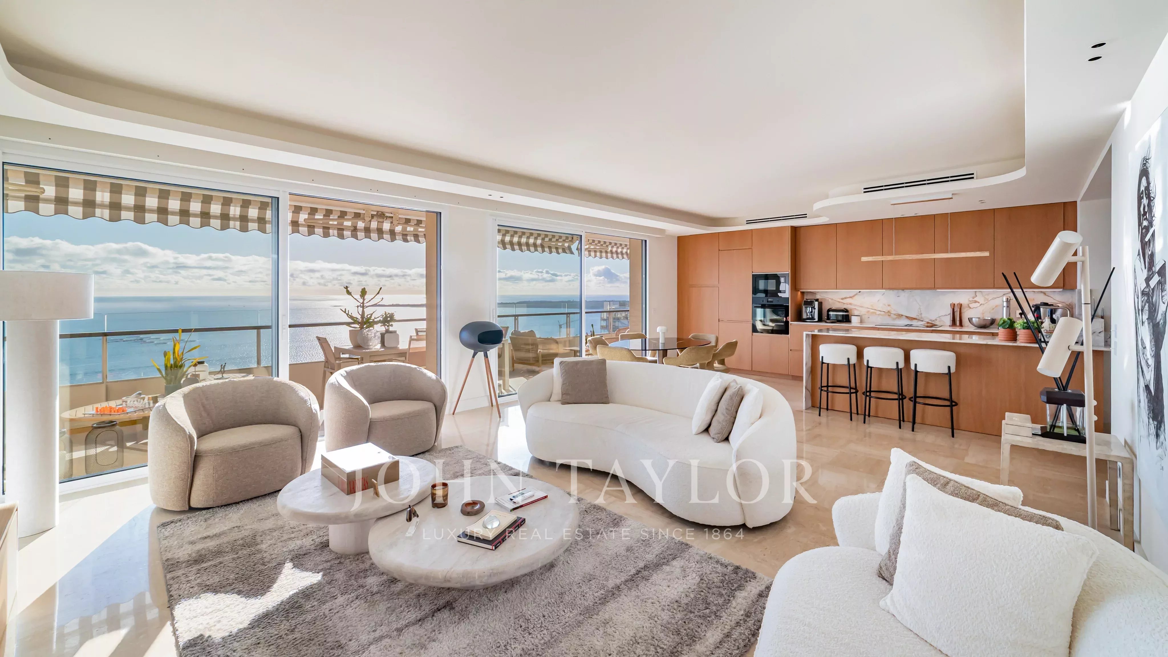 Located in a prestigious residence in the Californie district, on a high floor, this rare 5-room apartment boasts 146.78 m² of living space, complemented by a superb 45 m² corner terrace facing south and west, offering exceptional panoramic sea views.