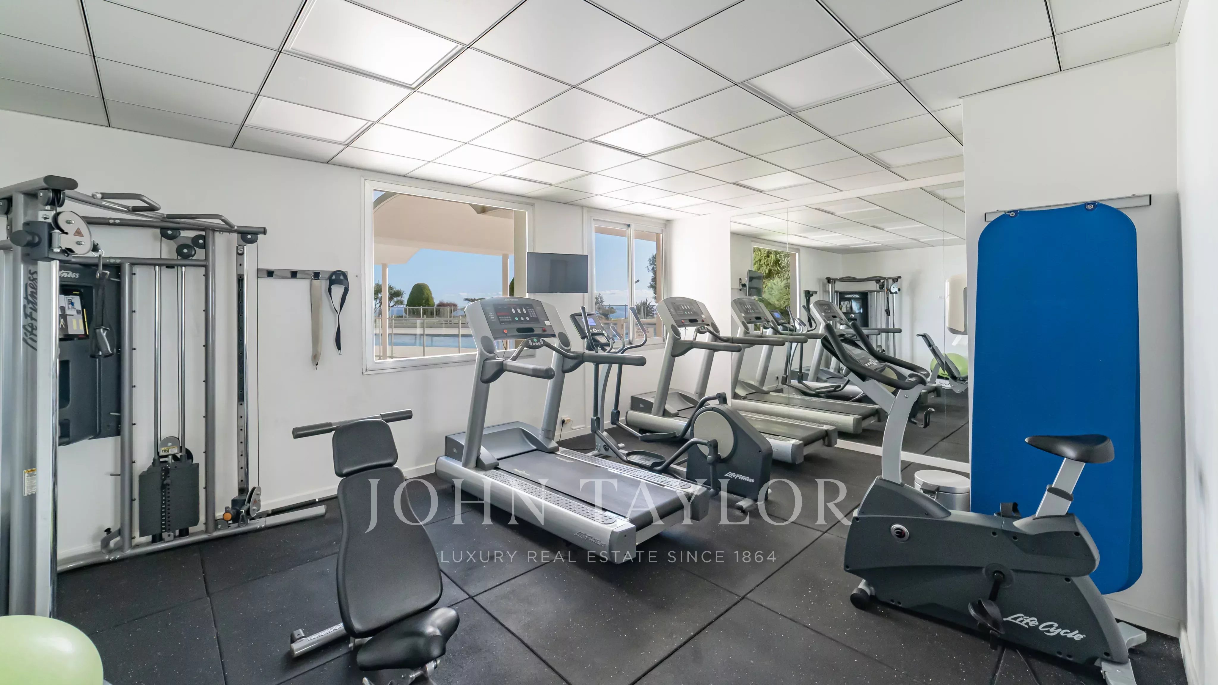 The secure residence boasts landscaped grounds, a swimming pool, a gym, tennis courts, security guards and video surveillance.