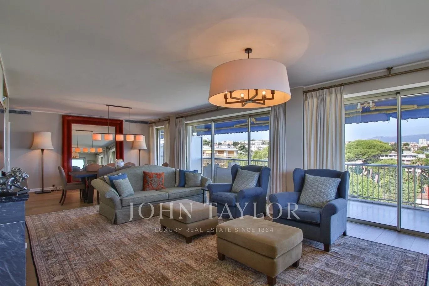 Entrance hall, a double living room with sea, old Antibes and mountain views, a study, three bedrooms with bathrooms and WC and a fully equipped kitchen.