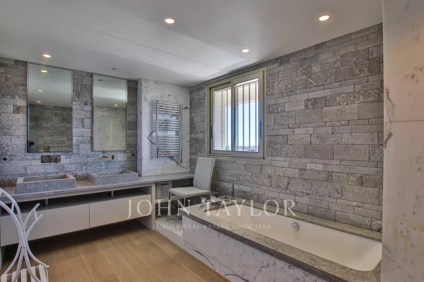 a bathroom, a sauna, a large living room opening onto a large terrace with full exposure.
