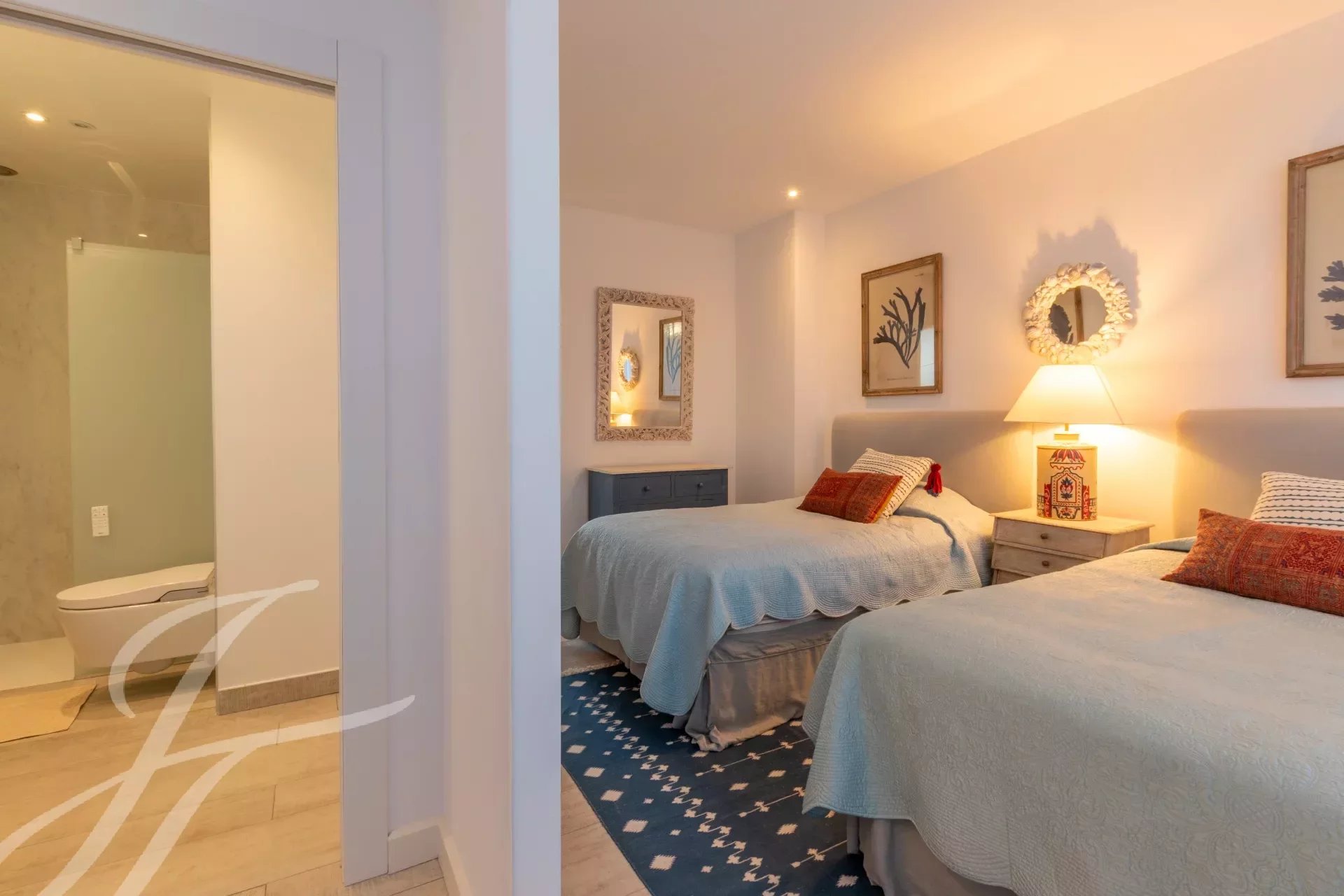 Superb apartment on the ground floor, enjoying two terraces, one with sea view.