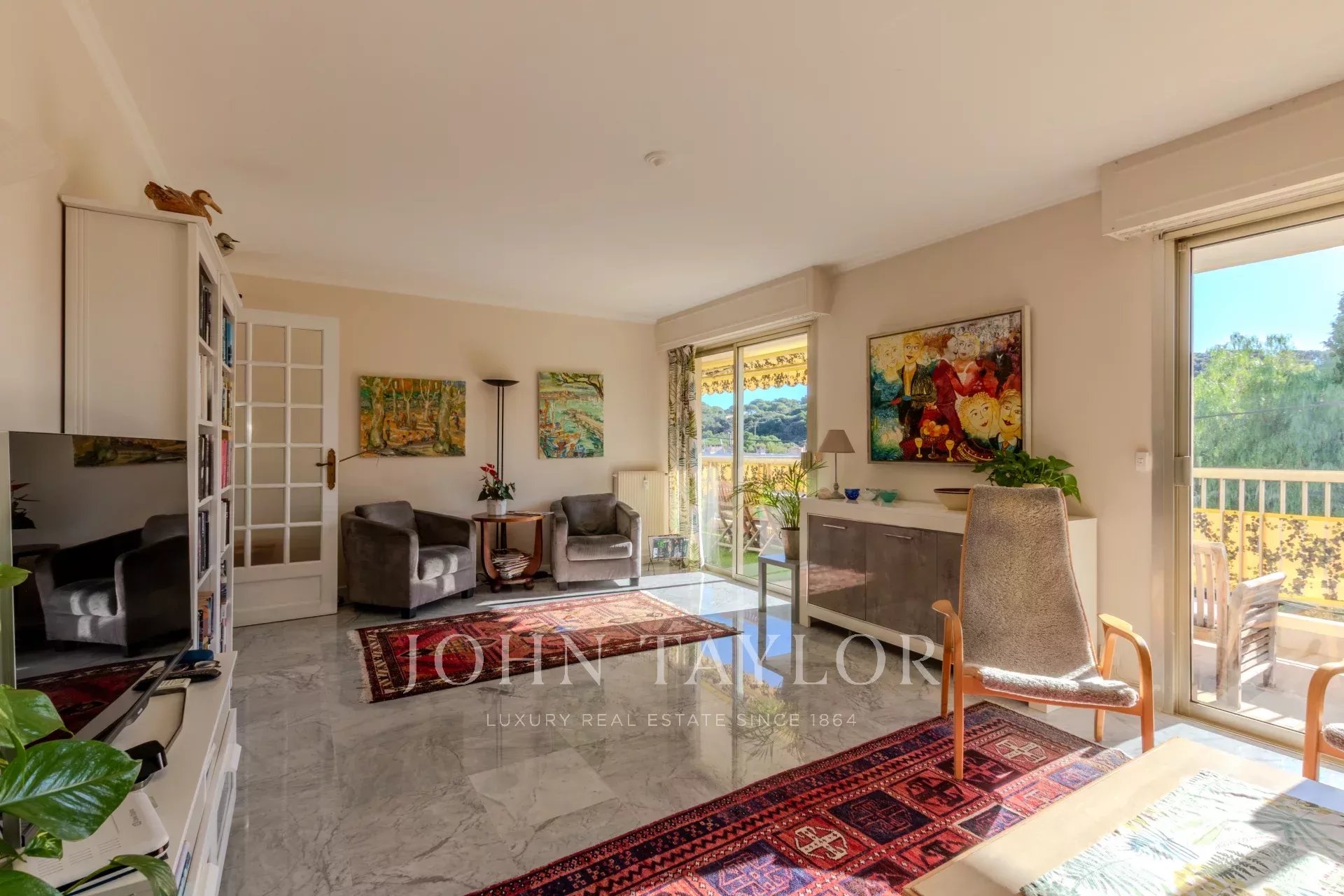 Attractive, almost 100 sqm, walk-through apartment in a small residence at the beginning of Cap d'Antibes, within walking distance of the beaches and amenities of l'Ilette.