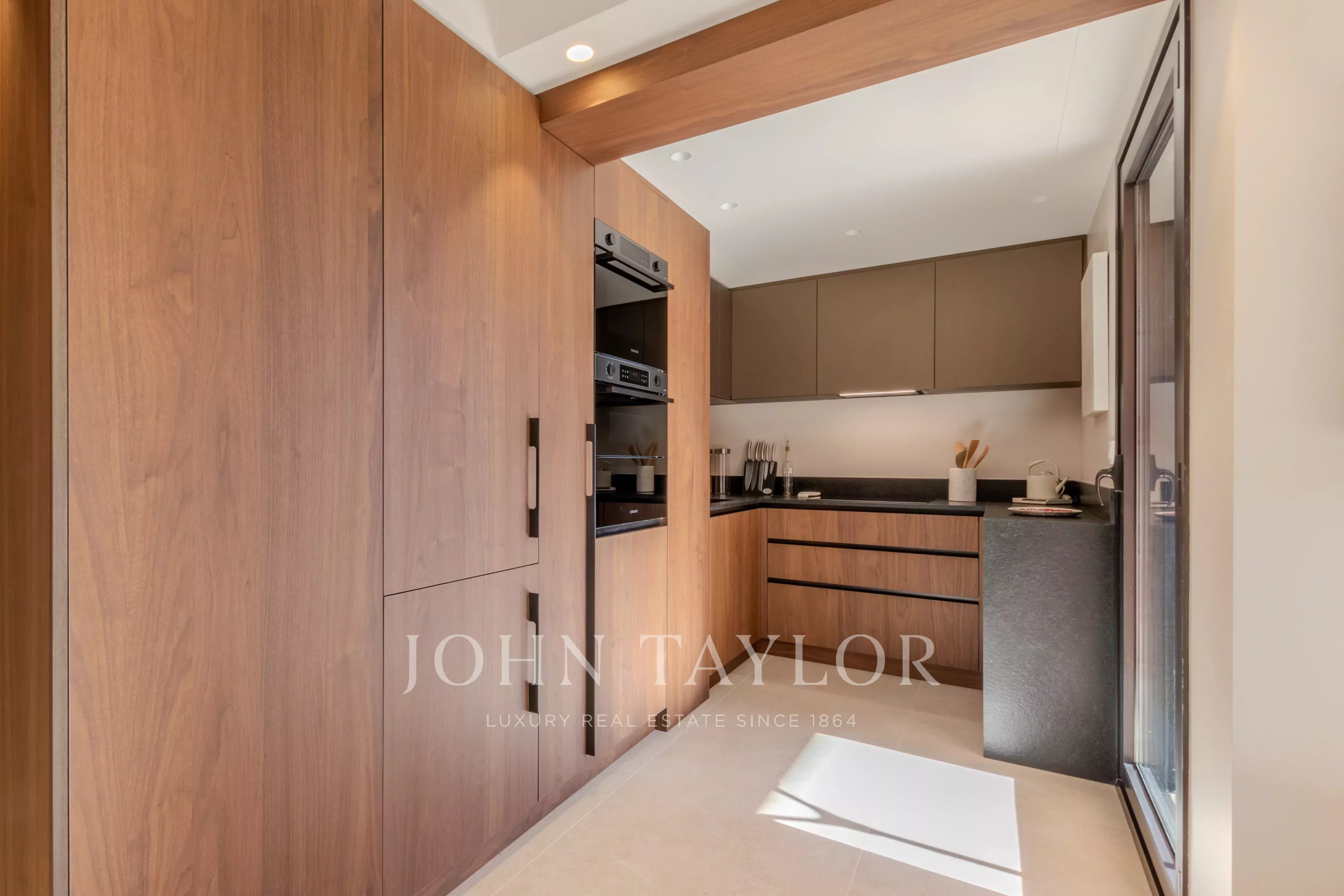 This complete renovation focuses on quality: top-of-the-range materials, built-in storage with designer dressing room, private laundry room, and meticulous attention to every detail. Living space is optimized with an open-plan kitchen/living room and comfortable bedrooms.