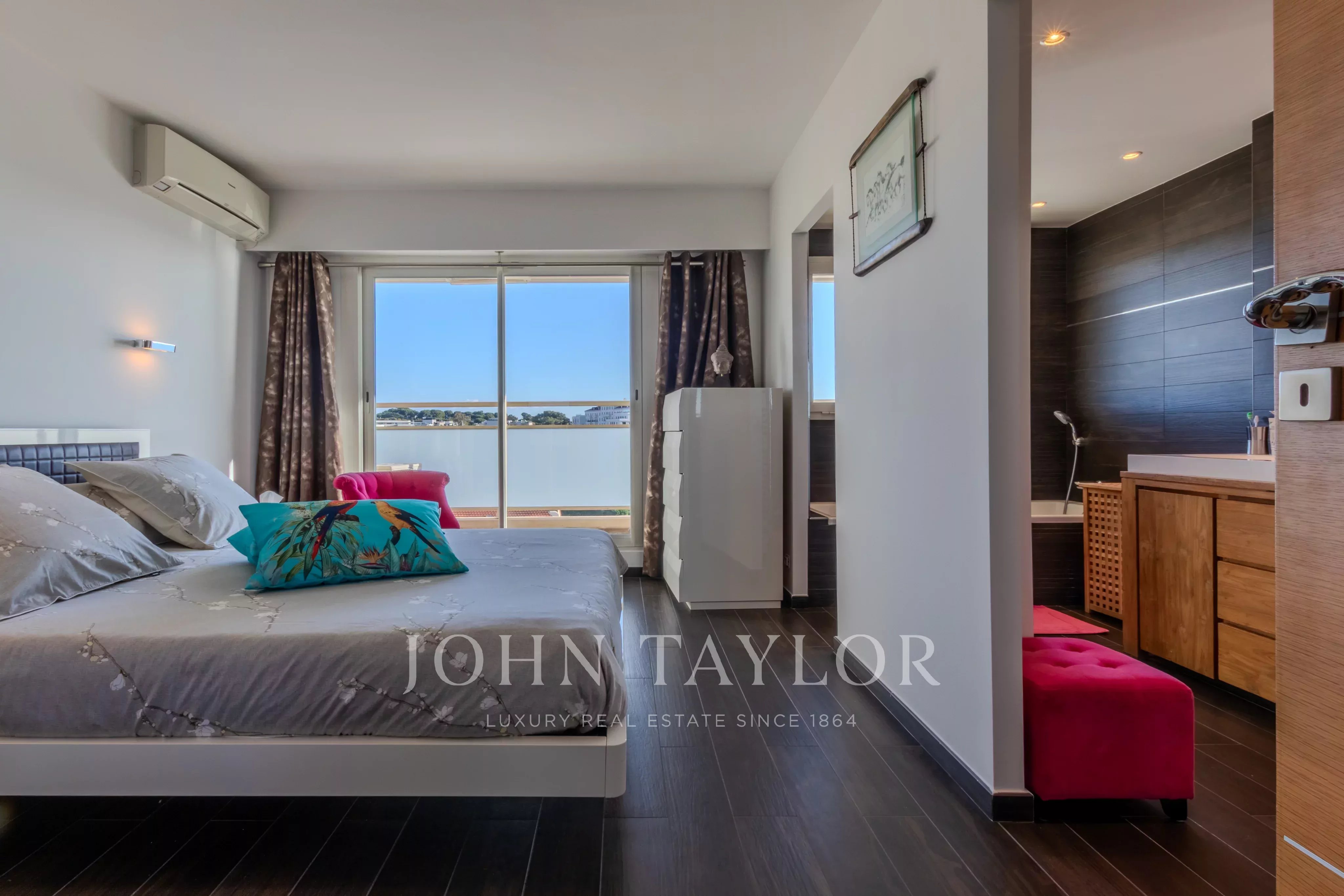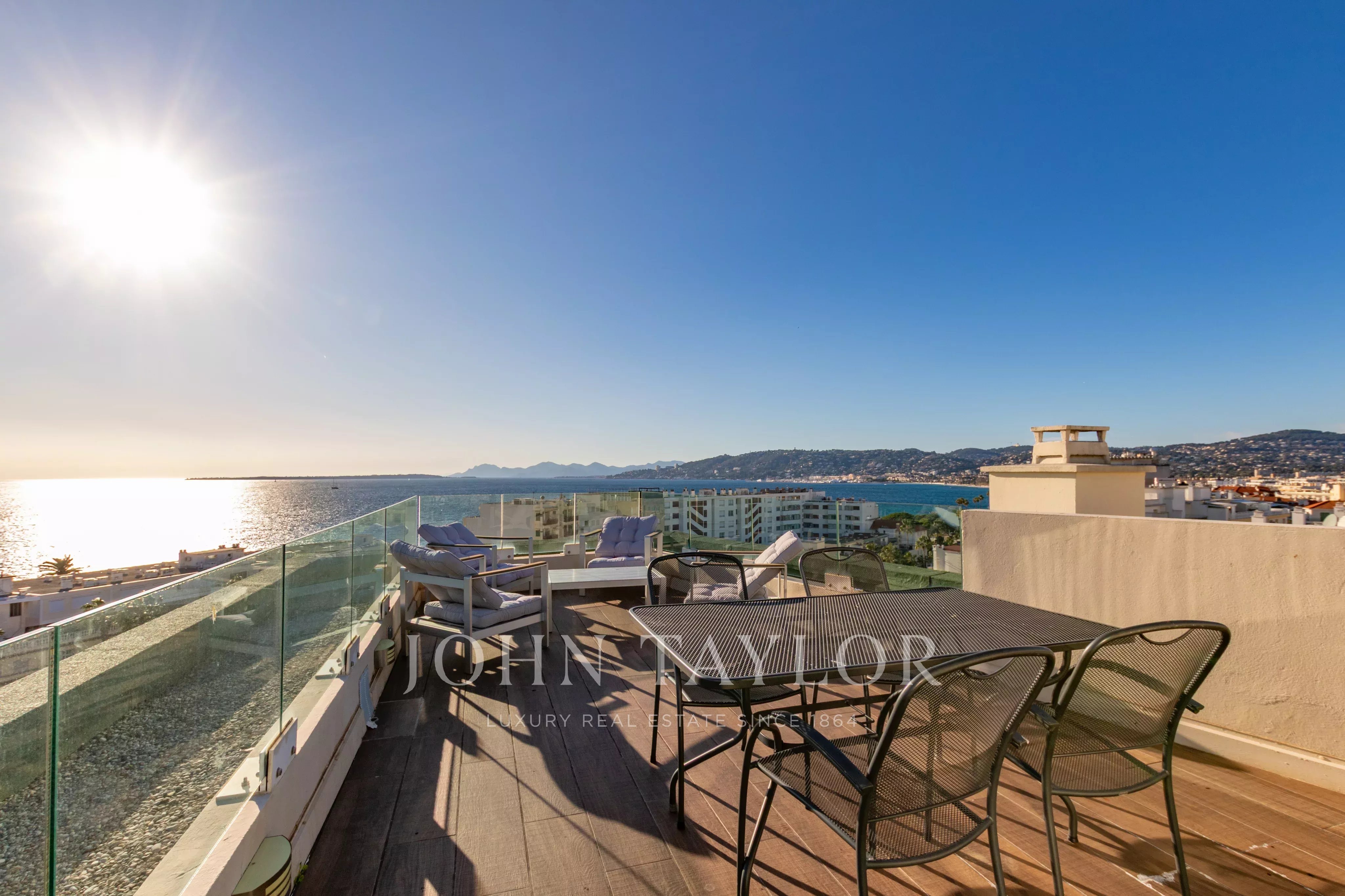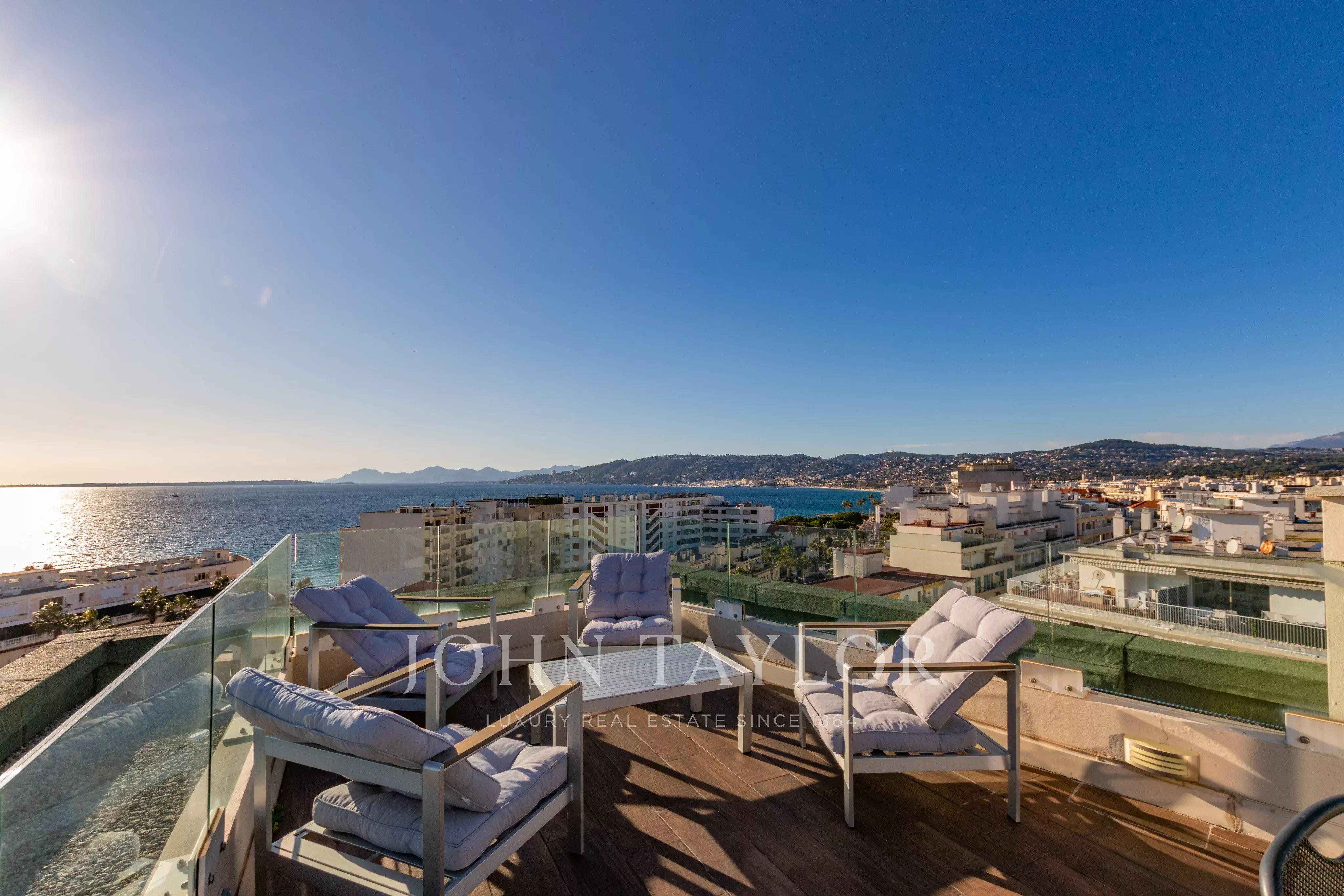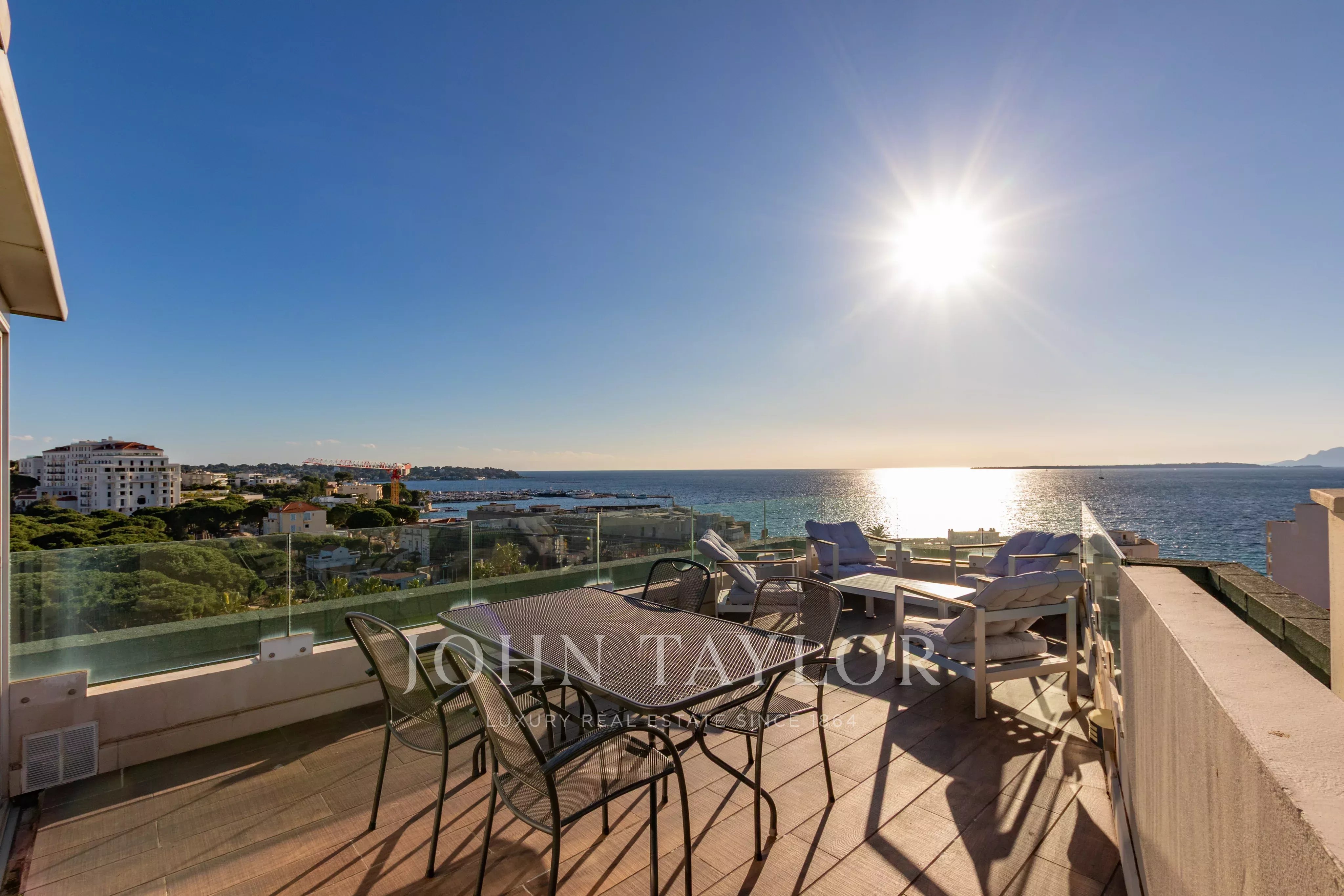 Ideally located in the heart of Juan-les-Pins, on the top floor of a luxury residence with security guard, this sumptuous rooftop apartment boasts a panoramic 360° sea view.