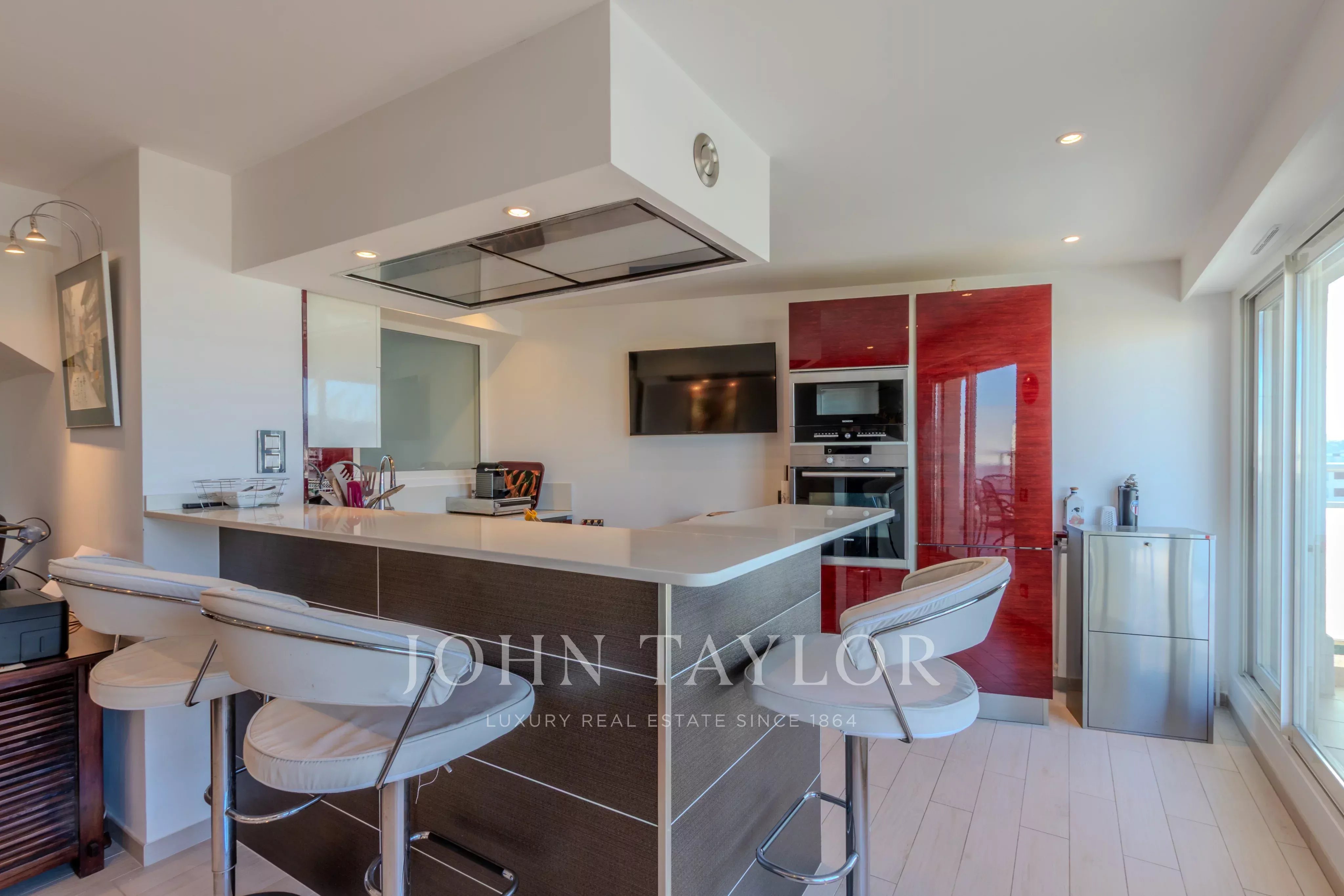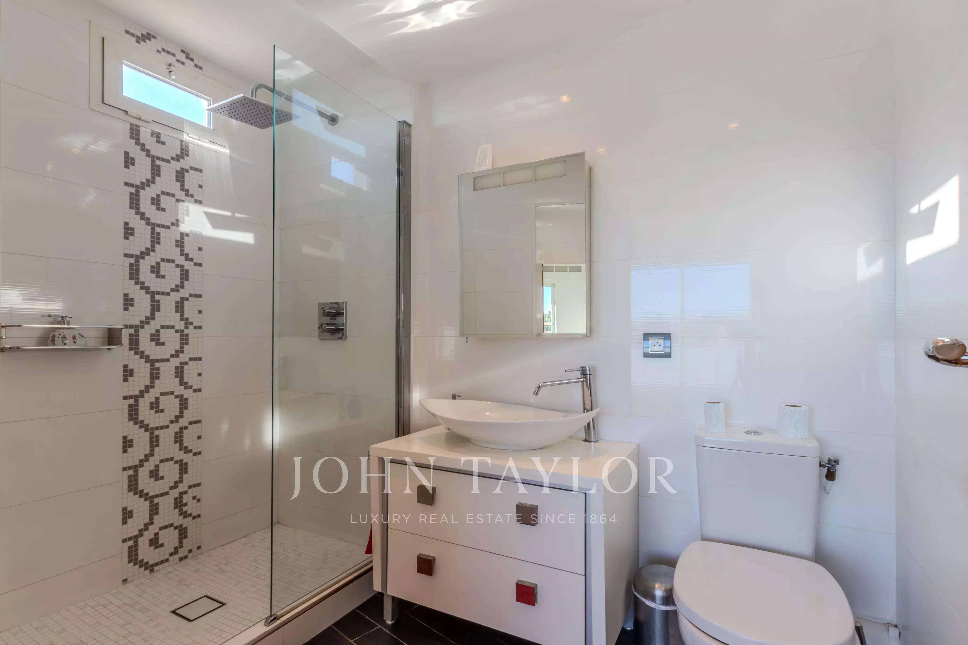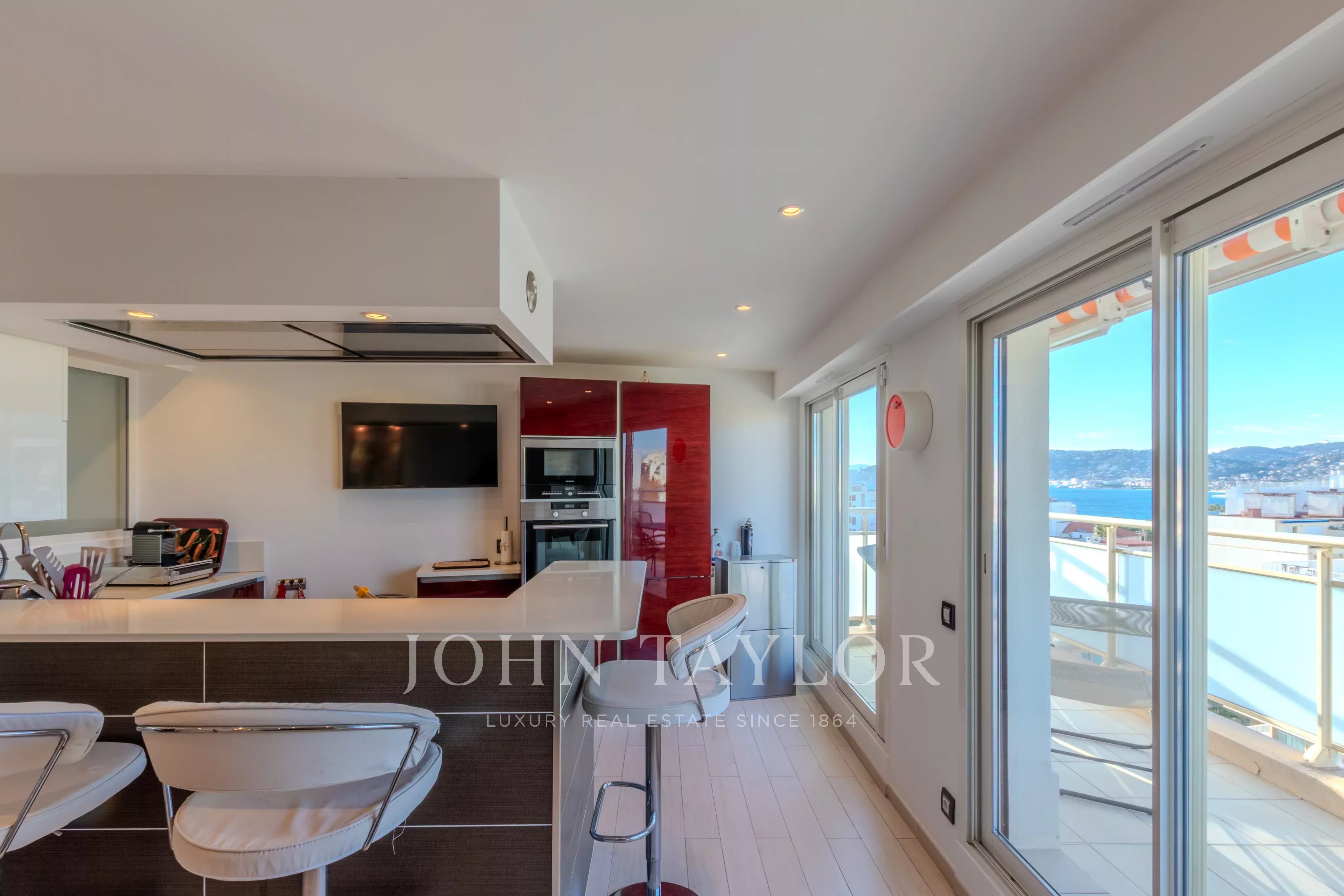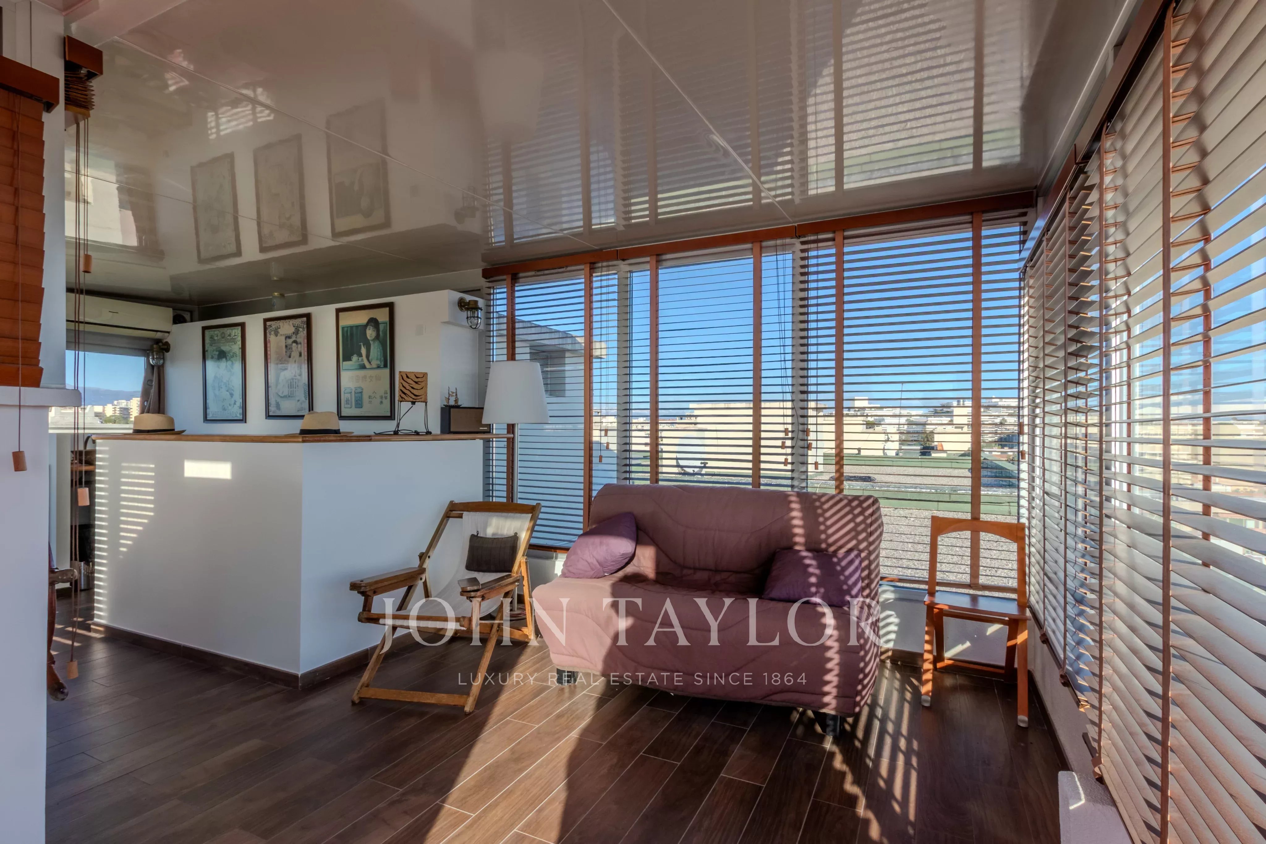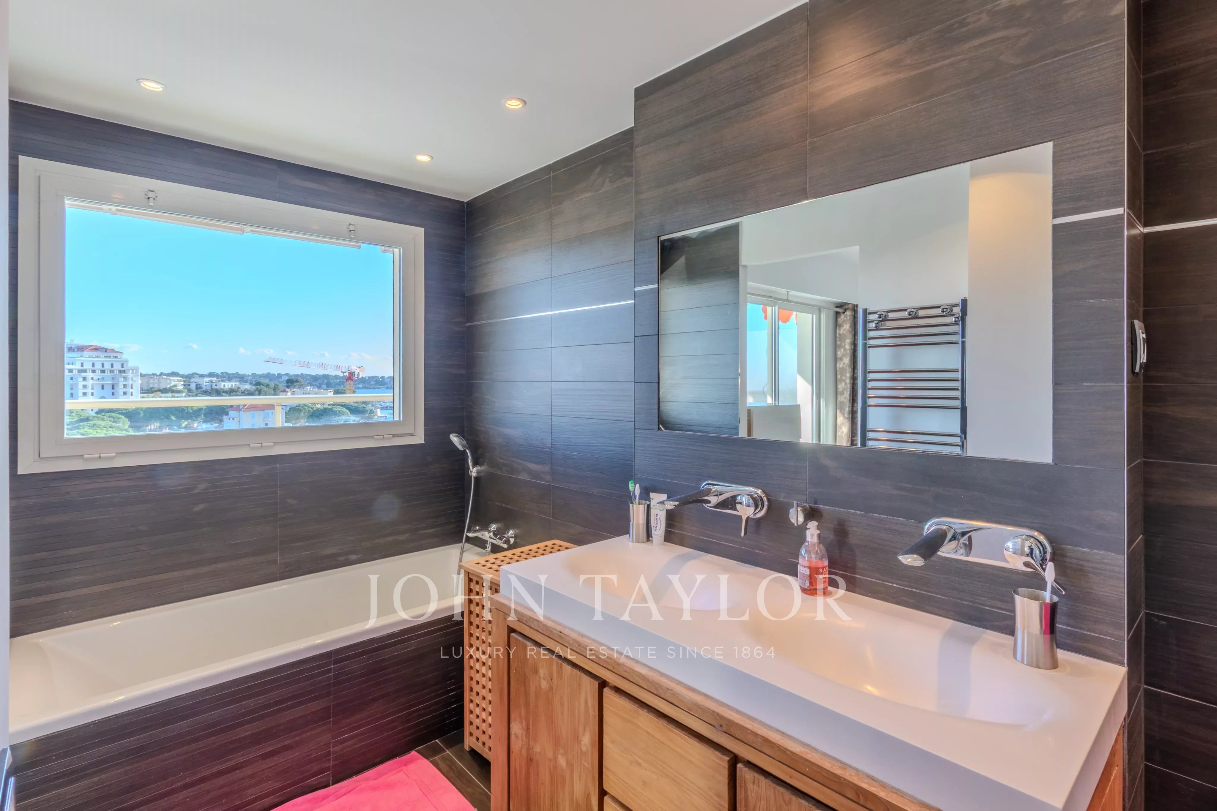 Ideally located in the heart of Juan-les-Pins, on the top floor of a luxury residence with security guard, this sumptuous rooftop apartment boasts a panoramic 360° sea view.