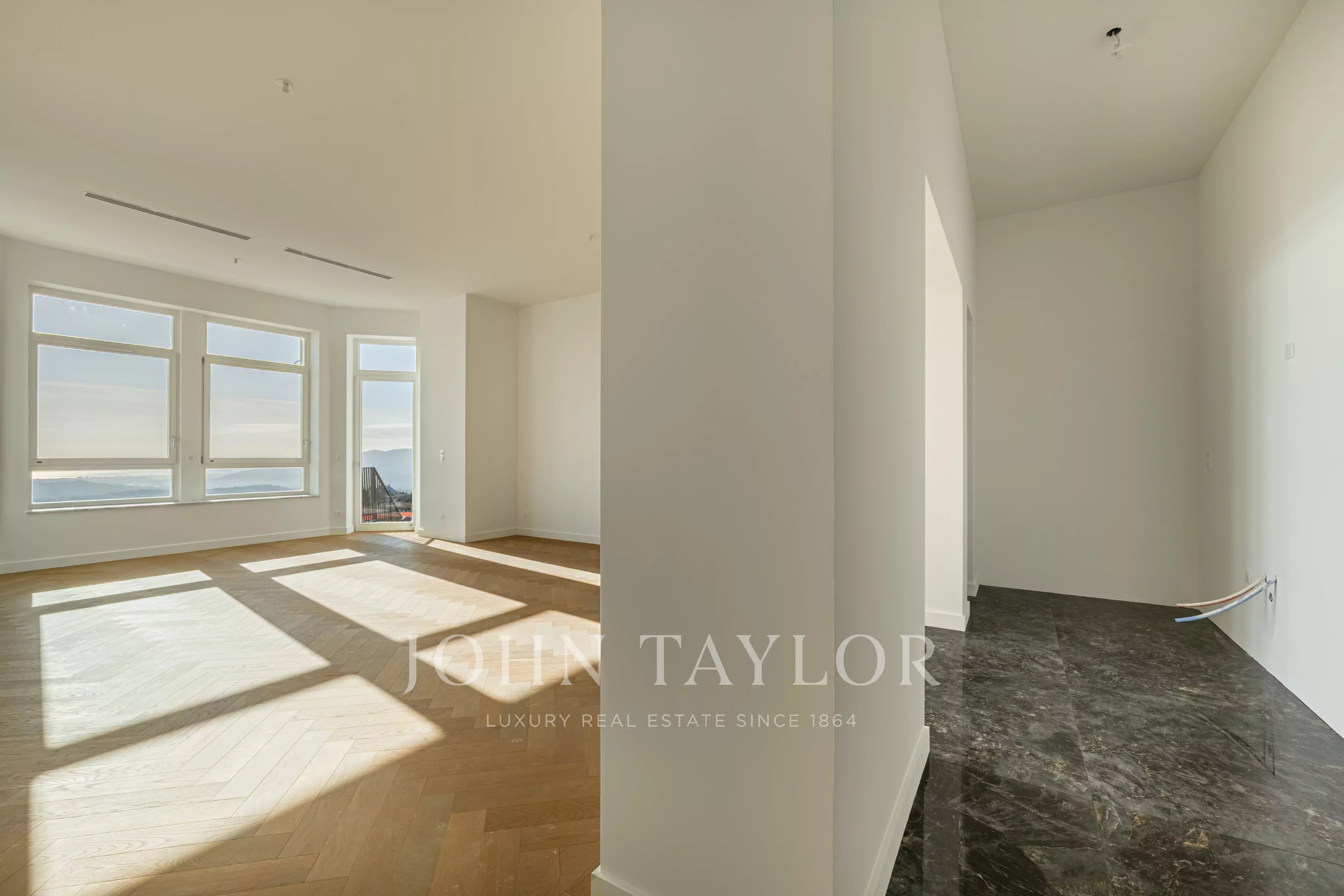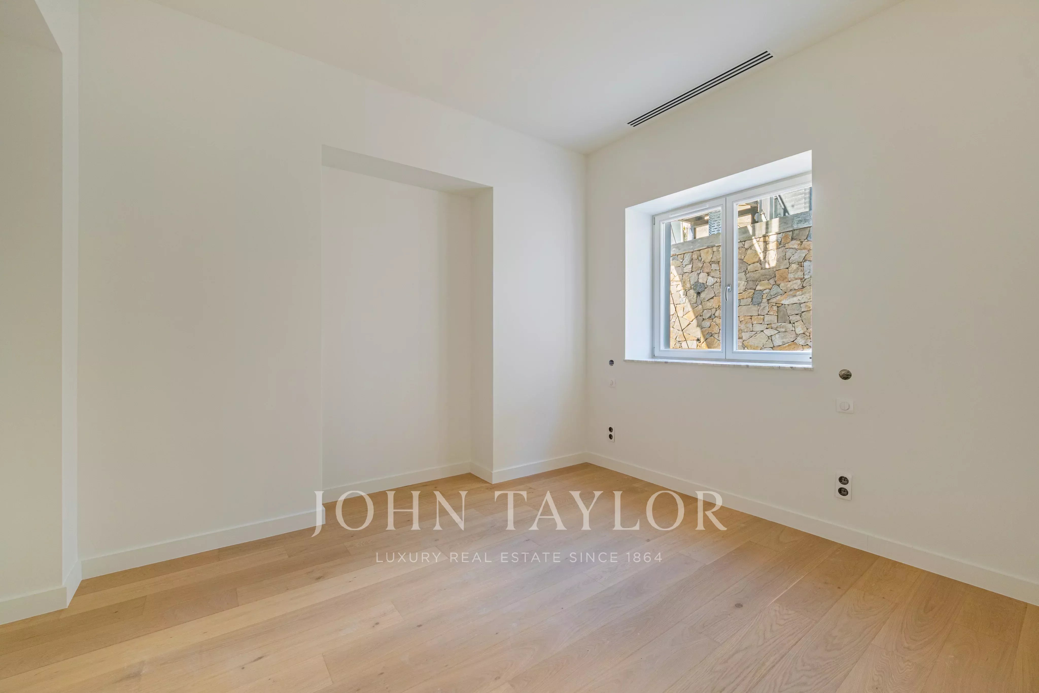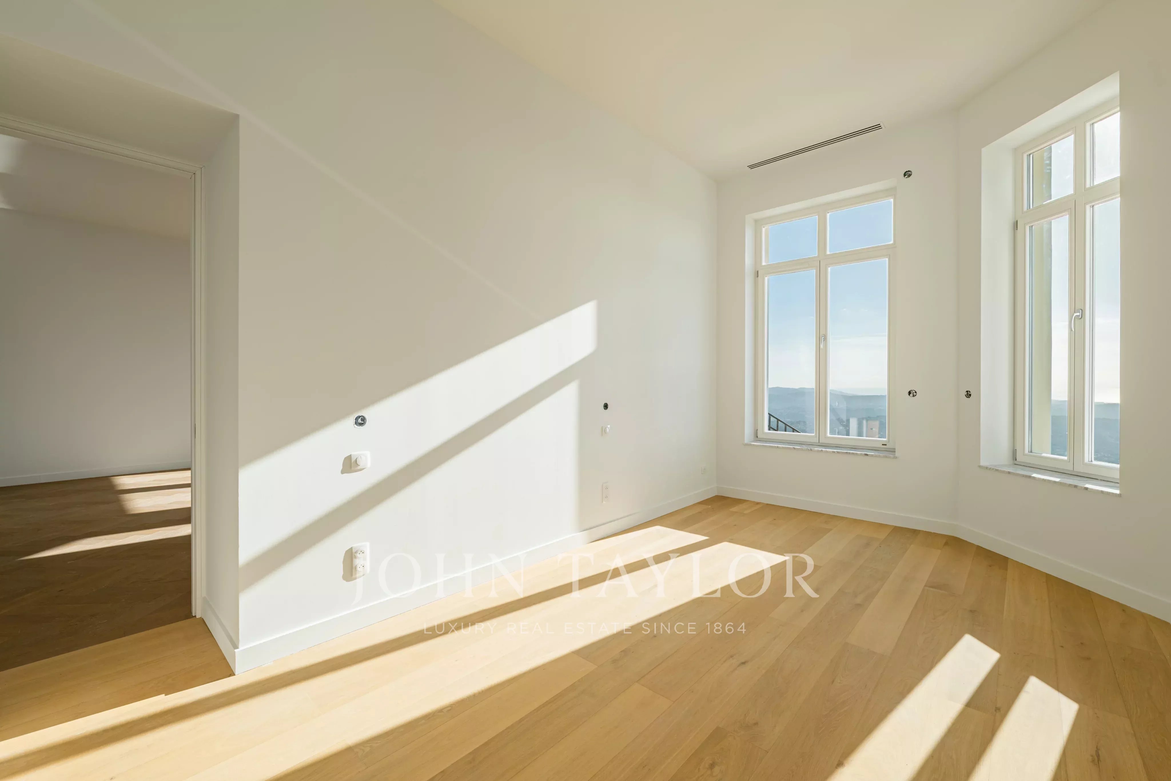 In an elegant residence of beautifully renovated apartments in a historic building in the hills of Grasse, offering unobstructed views of the town, hills and sea.