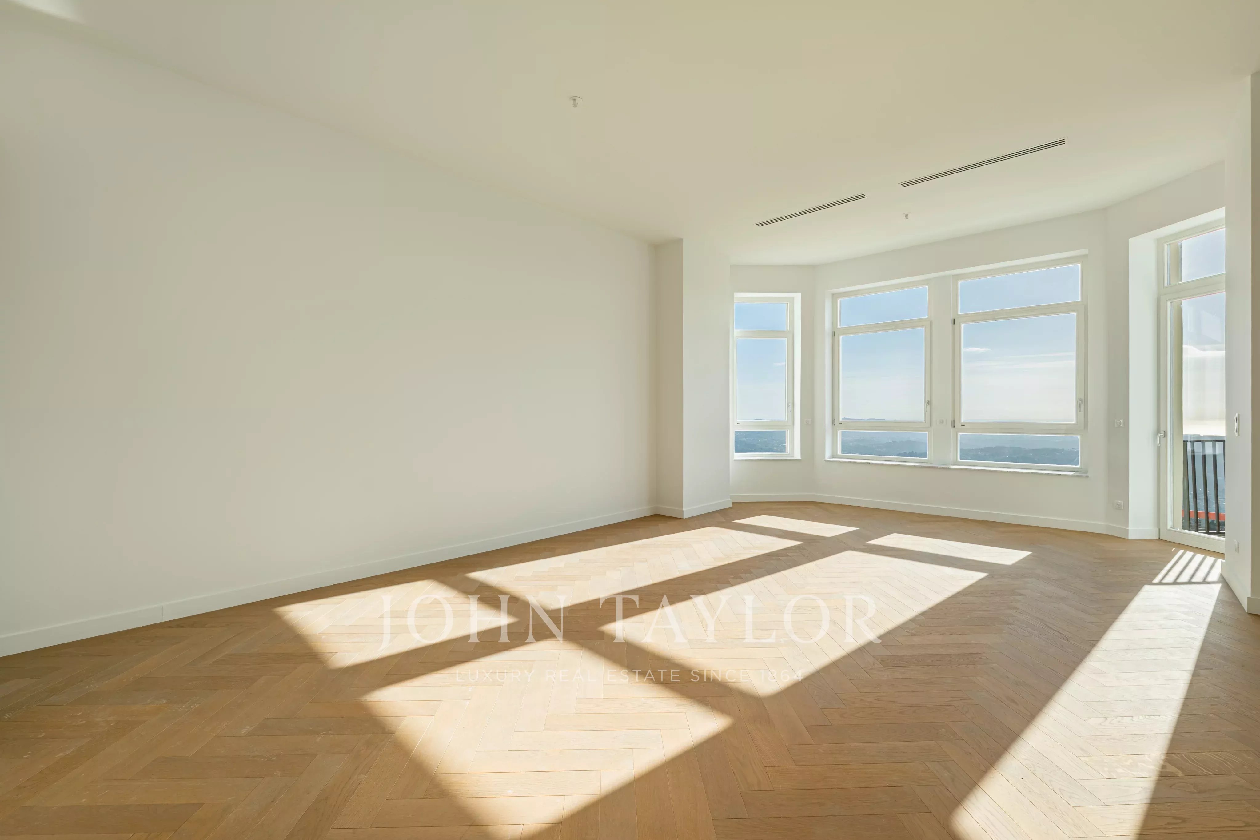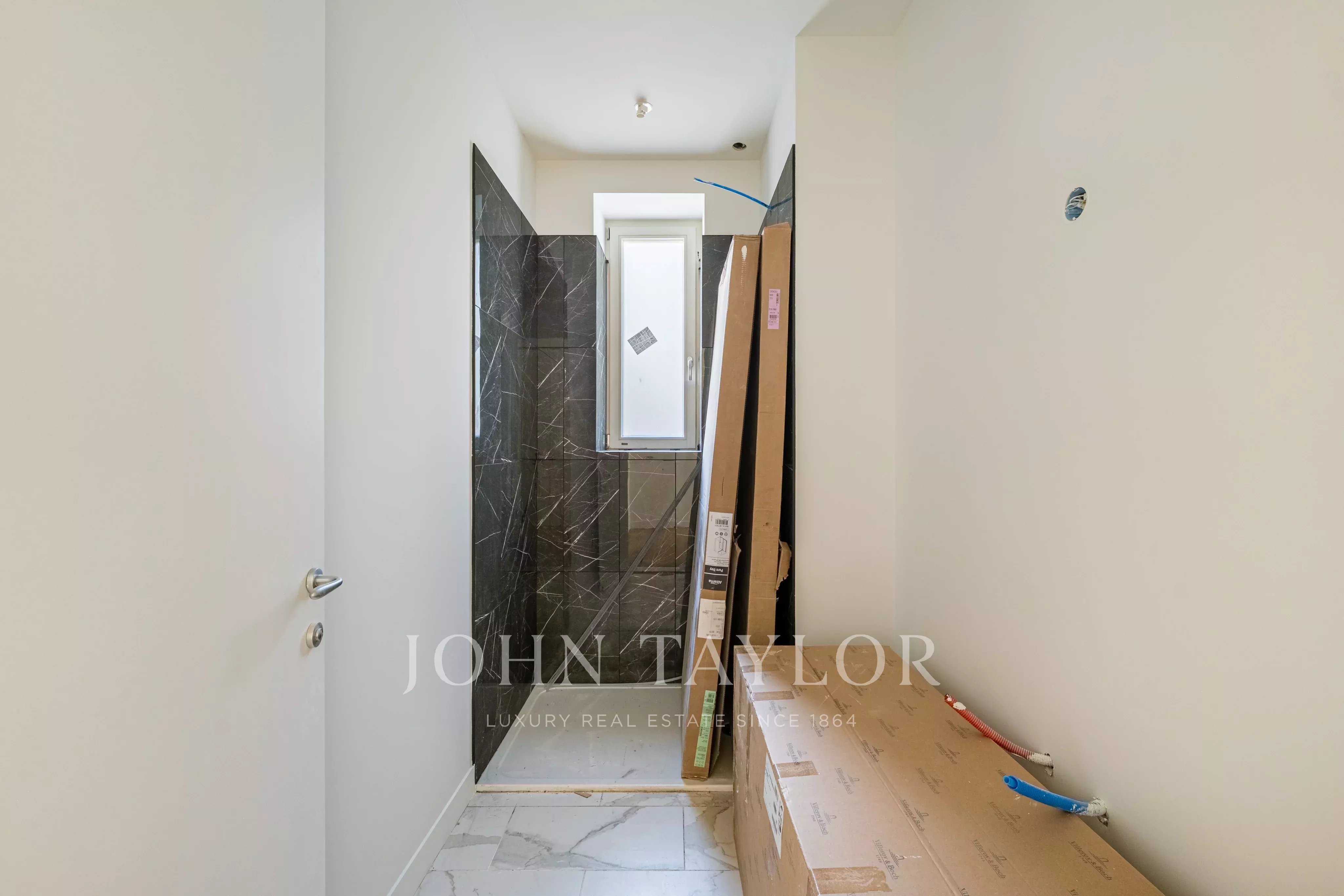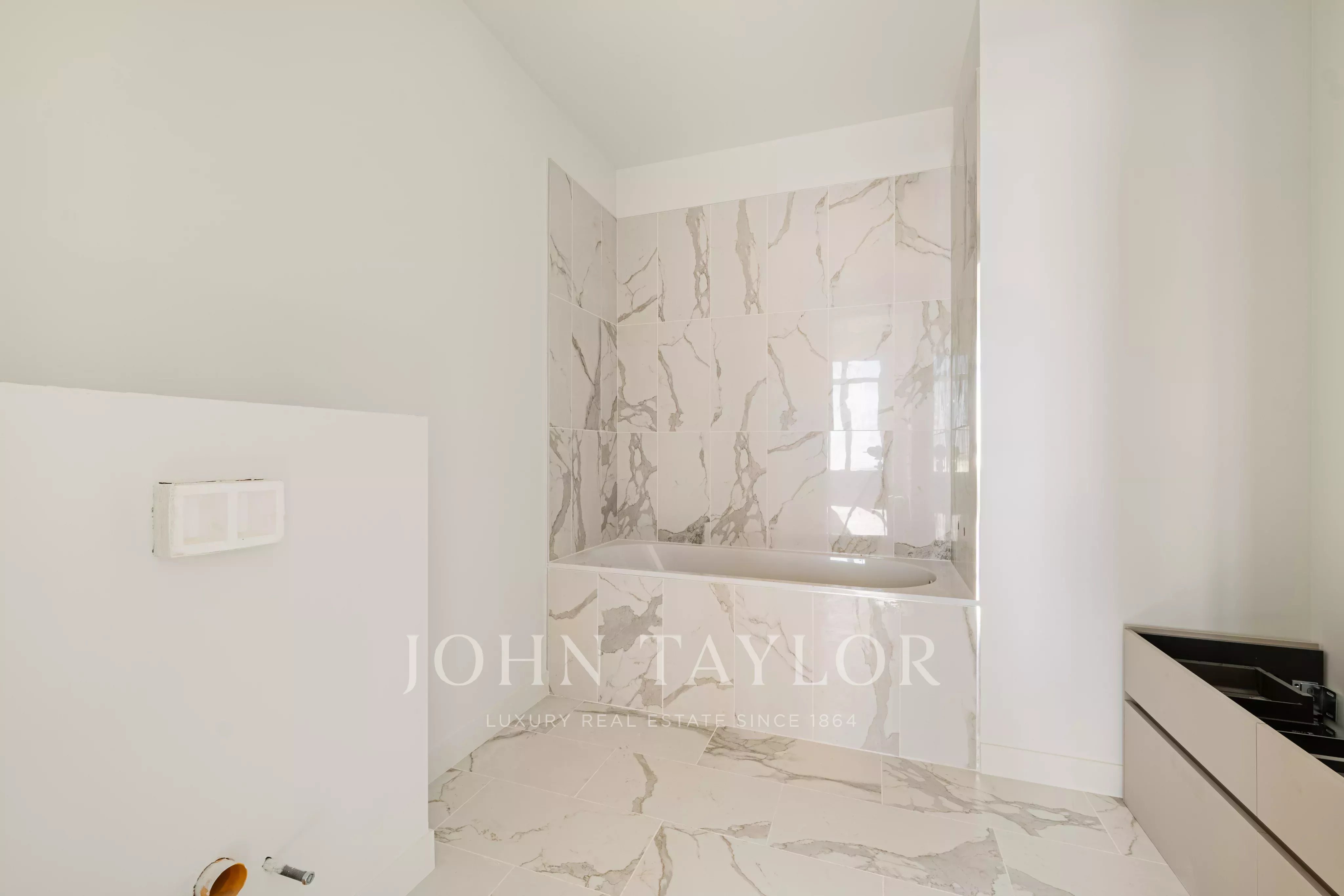This luxury residence with concierge service features landscaped grounds with a swimming pool, a fully equipped gym, a sauna and a hammam.